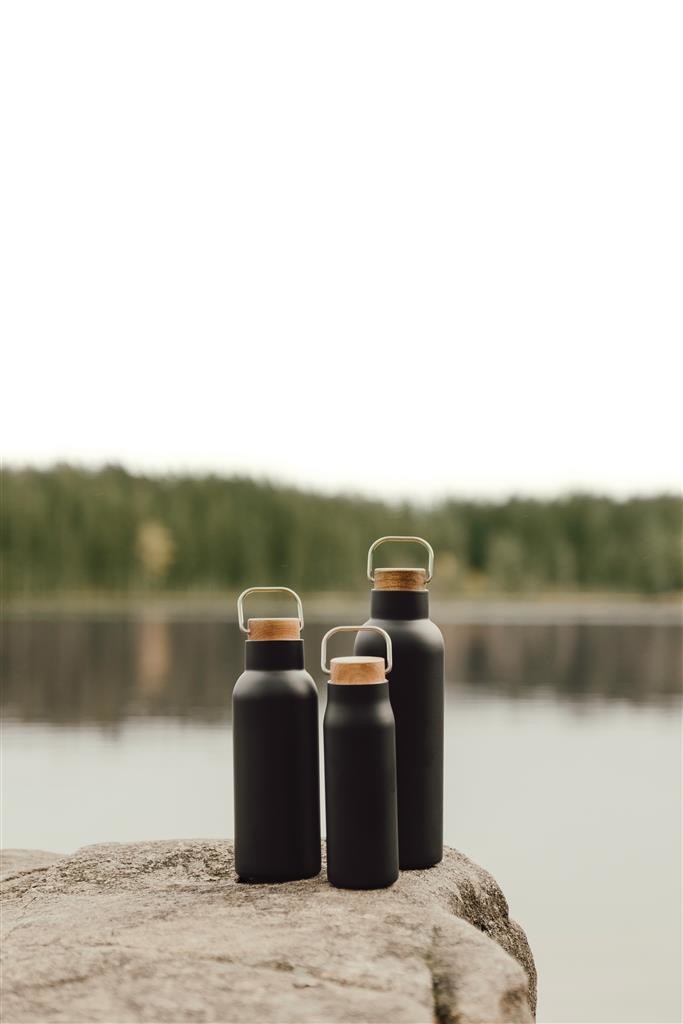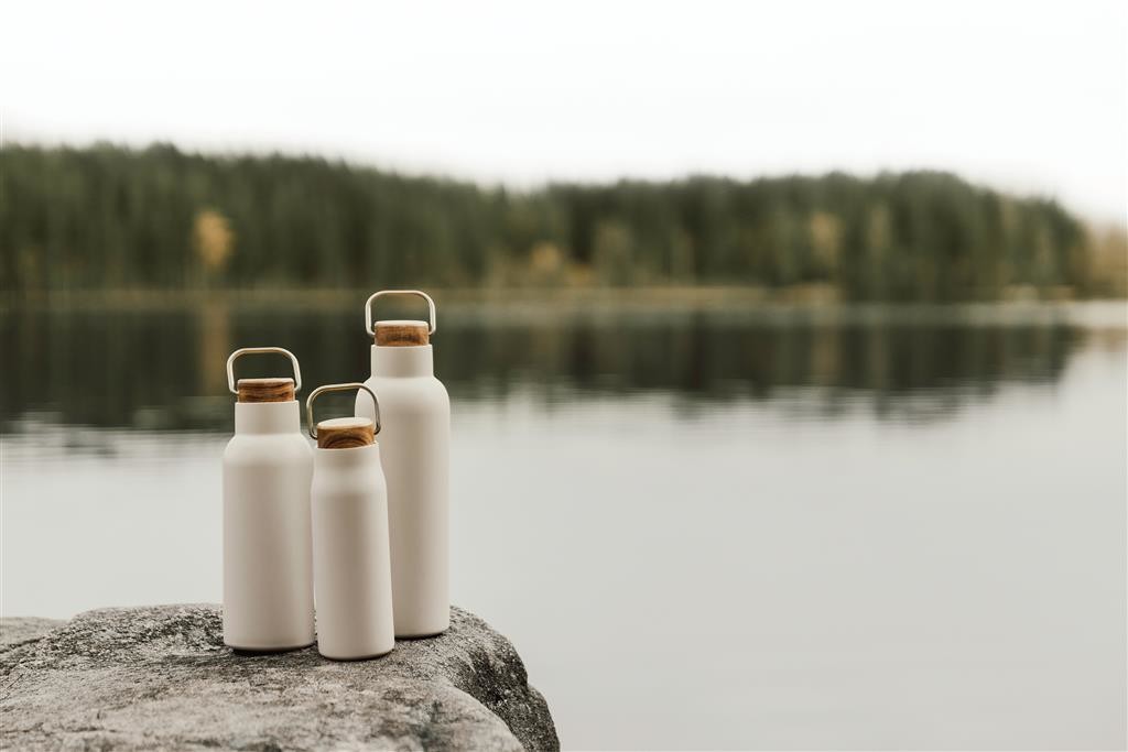 Elegantní termo lahev Ciro s uzávěrem z akáciového dřeva s kovovým poutkem pro snadný přenos. Dvojitá stěna z RCS certifikované recyklované oceli pro uchování nápoje horkého nebo studeného po dlouhou dobu. RCS (Recycled Claim Standard) je globální standard, který umožňuje ověřit použití recyklovaného materiálu v produktu napříč celým dodavatelským řetězcem. Celkový podíl recyklátu dle váhy produktu: 69 %. Lahev lze snadno čistit, pouze pro ruční mytí. Baleno v FSC® dárkové kraftové krabičce. Objem: 300 ml.