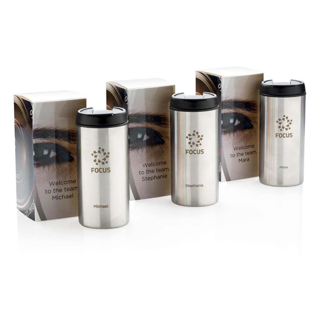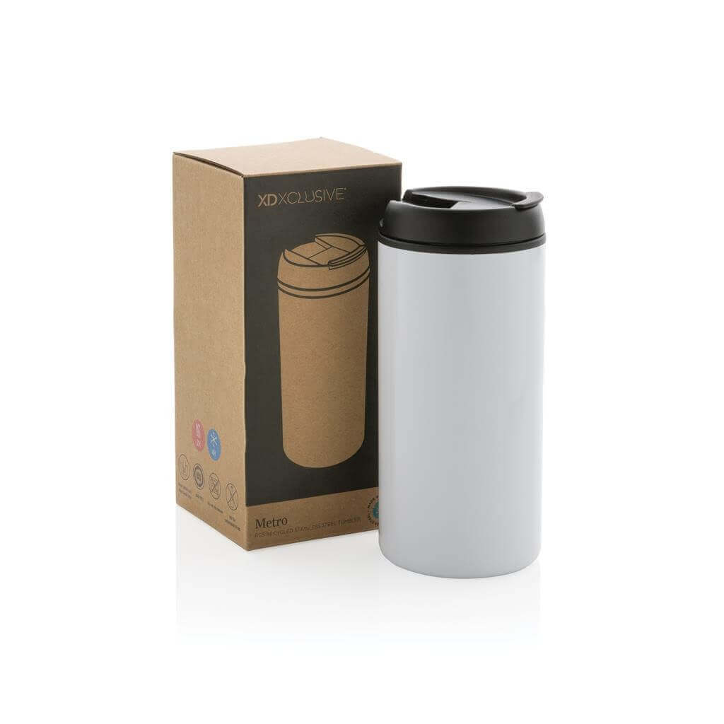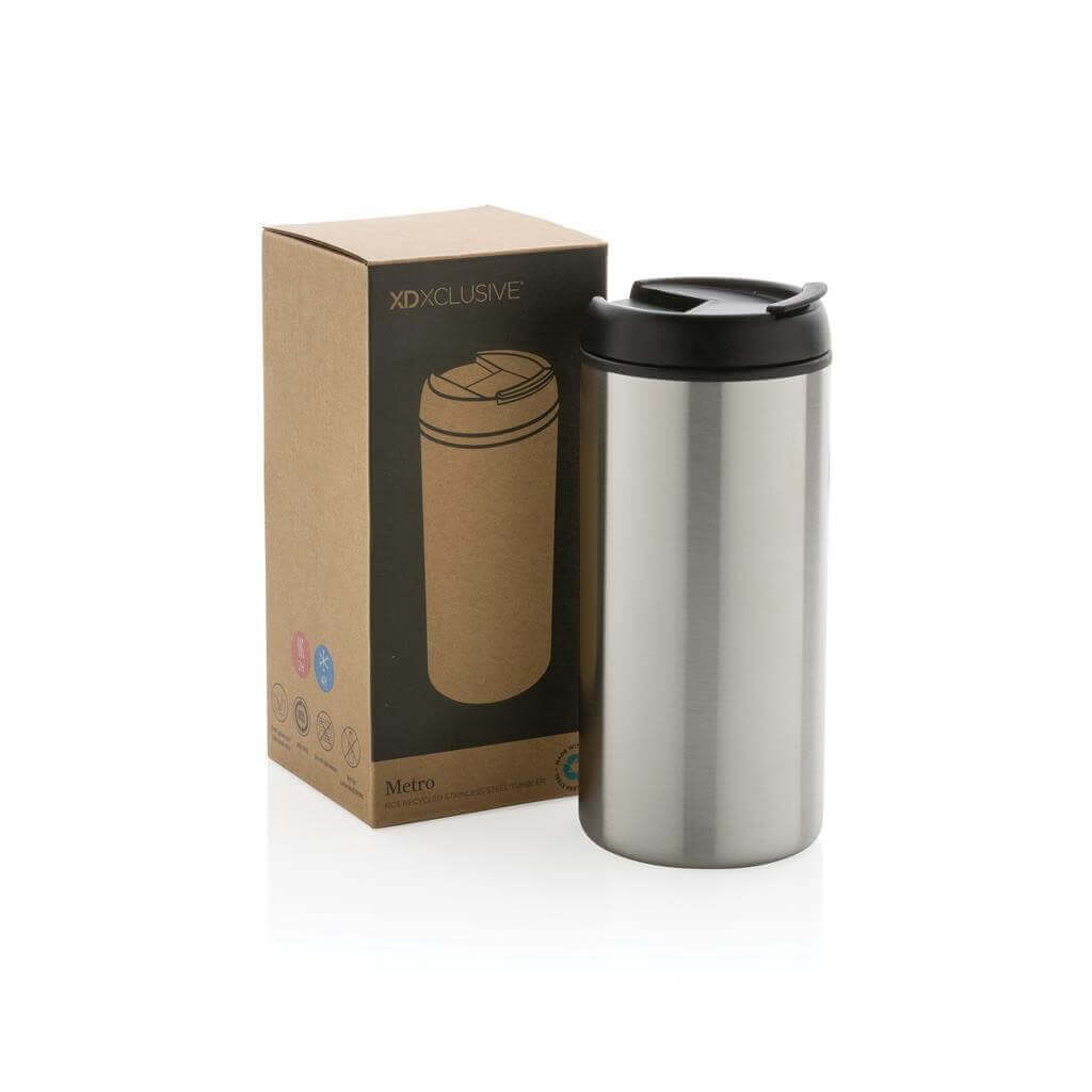 Minimalistický termohrnek Metro s odklápěcím víčkem a nestárnoucím designem. Vyrobeno z RCS reyklovaných materiálů. RCS (Recycled Claim Standard) je globální standard, který umožňuje ověřit použití recyklovaného materiálu v produktu napříč celým dodavatelským řetězcem. Celkový podíl recyklátu dle váhy produktu: 90 %. Objem: 300 ml. Baleno v FSC® kraftové dárkové krabičce. Bez BPA. Ochranný vzor®
