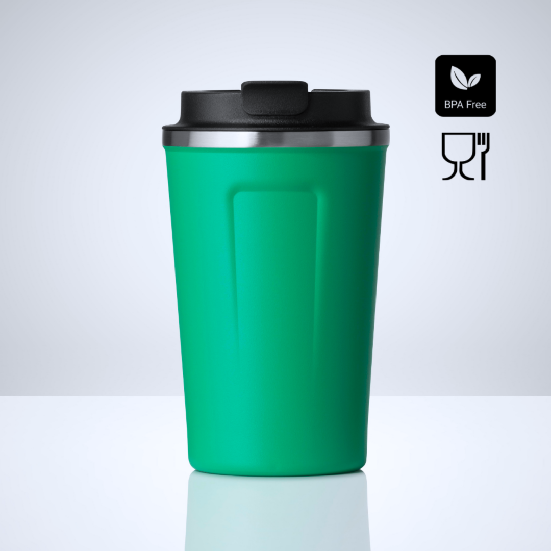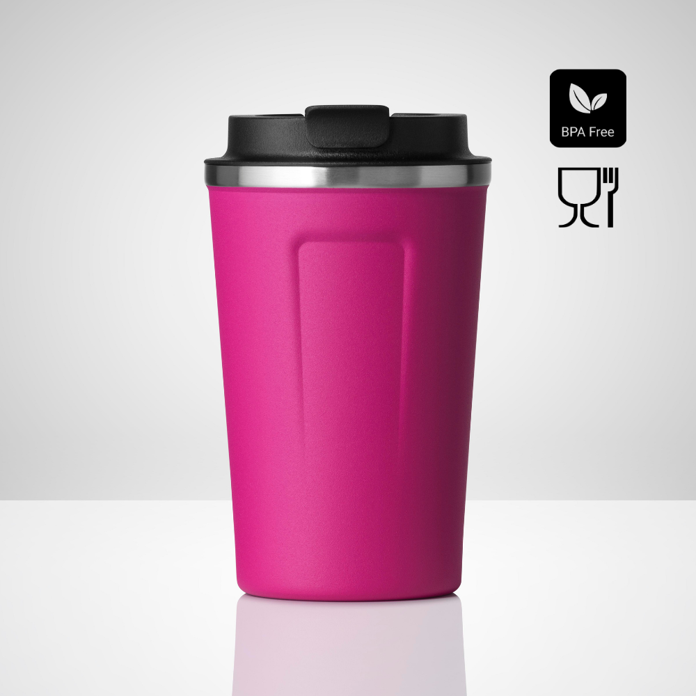 Termohrnek s vynikajícími tepelněizolačními schopnostmi (až 12 hodin při nízké teplotě, až 6 hodin při vysoké teplotě). Díky matnému práškovému lakování a ergonomickému designu pohodlně padne do ruky. Dvojitá stěna vyrobená z nejkvalitnější potravinářské nerezavějící oceli 18/8 s práškovým nástřikem pro bezpečné držení. Hrnek má 100% certifikát bez BPA, nepropustné víčko a silikonový základ. Hodí se do automatů na kávu v autě.