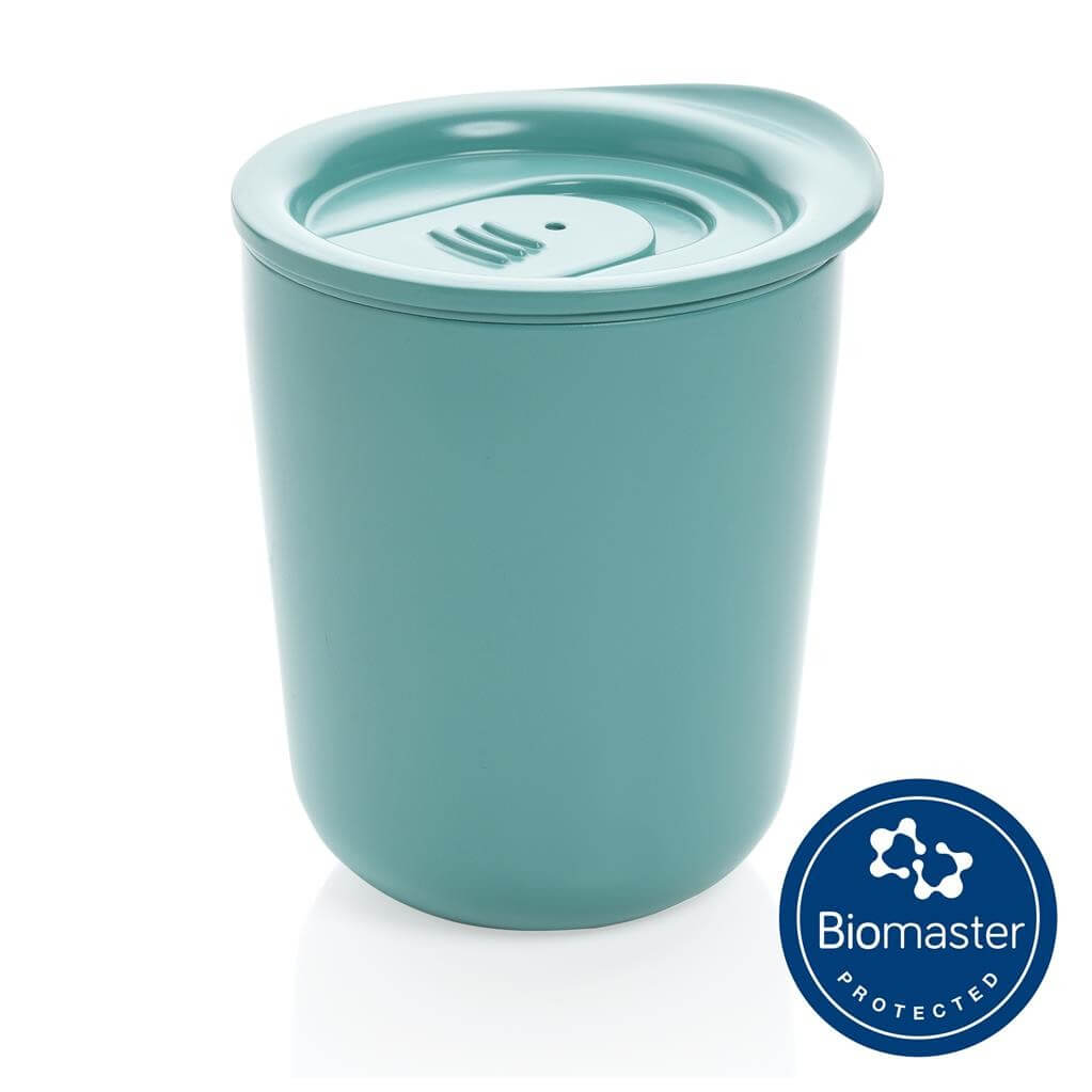 Jednoduchý termohrnek z nerezavějící oceli se speciální antimikrobiální ochranou Biomaster. Ta je oproti standardním ochranám obsažena přímo VE výrobku, místo NA výrobku a tím zajištuje trvalou ochranu. Výrobek byl testován v souladu 22197 (antimikrobiální efektivita), je 100 % bezpečný pro uživatele a nesnižuje možnost recyklace. Navíc obsahuje vystopovatelnou složku Verimaster, pomocí které Ize Biomaster ošetření garantovat. Uzavíratelné víčko. Uvnitř plast (PP), vně nerezavějící ocel. Objem: 250ml. Bez BPA.
