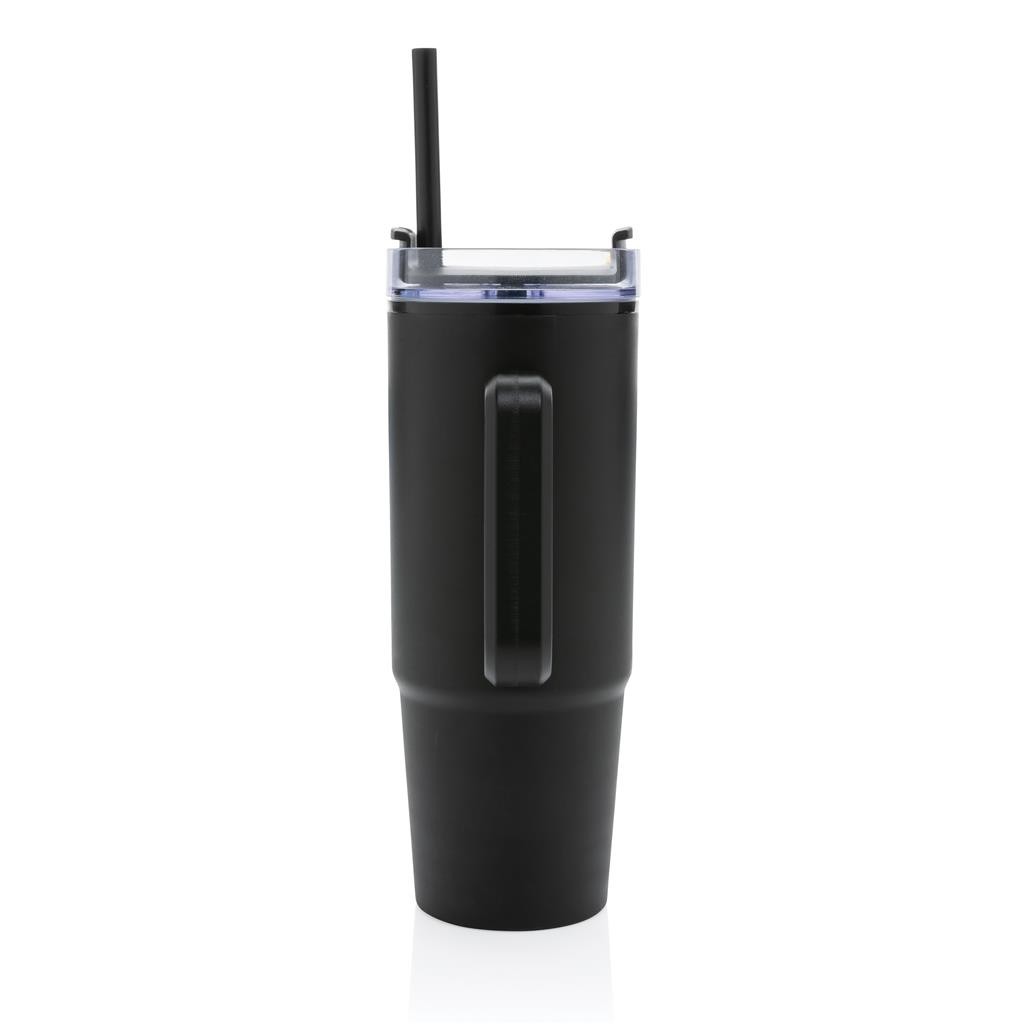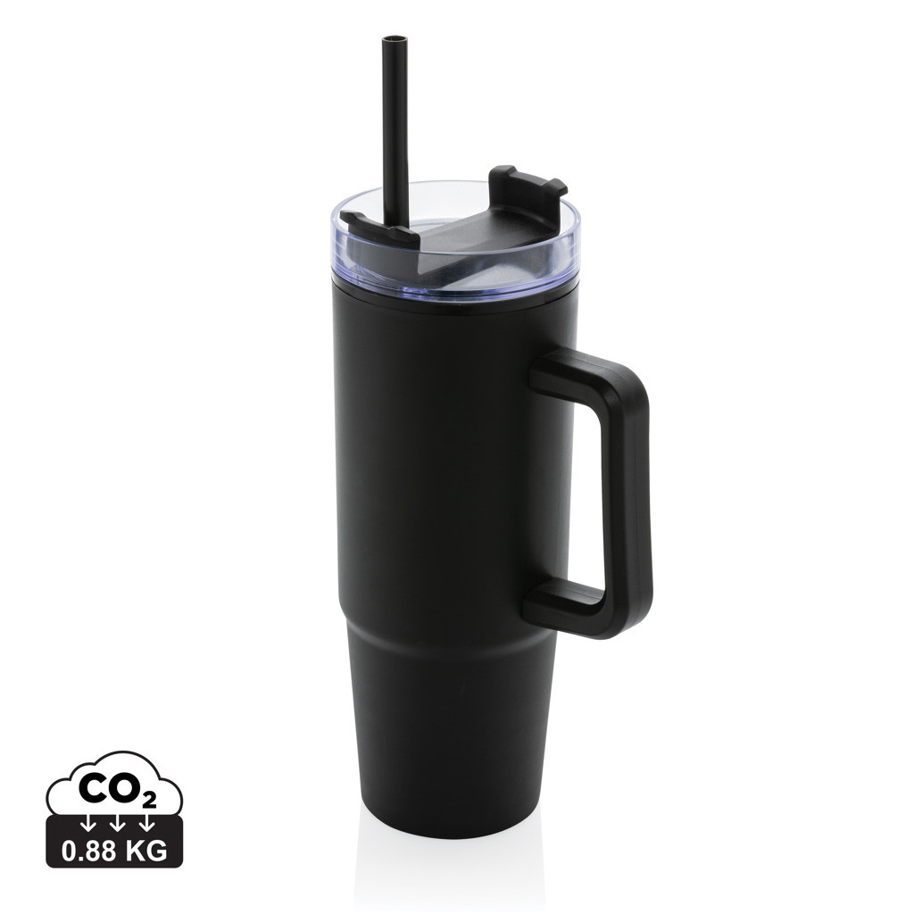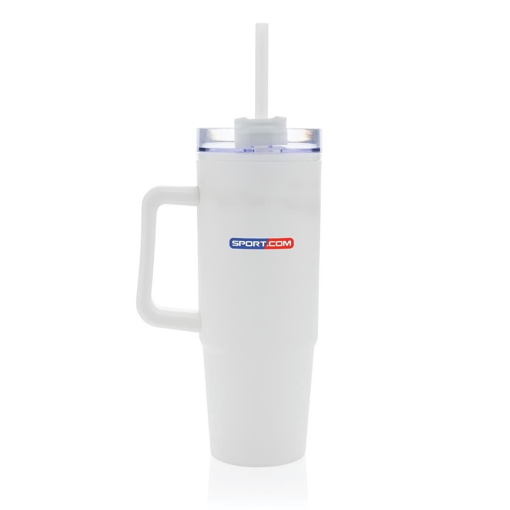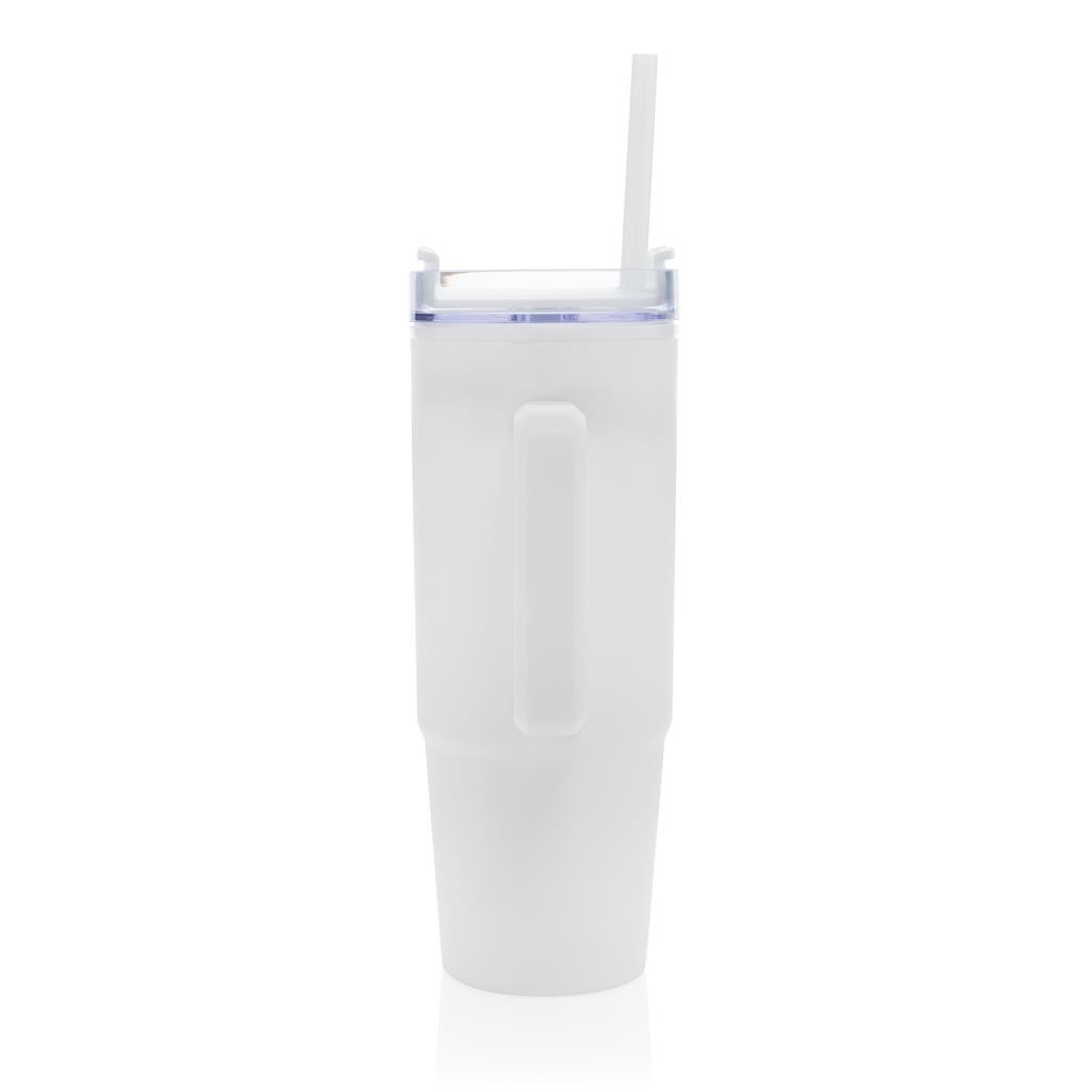 Termohrnek s otočným víčkem se třemi pozicemi: otevřená pozice, brčko, uzavřená pozice. Ergonomické madlo pro snadné nošení. Úzká spodní část pasující do většiny držáků na nápoje v autě. Dvojitá plastová stěna. Vyrobené z RCS recyklovaného PP plastu. RCS (Recycled Claim Standard) je globální standard, který umožňuje ověřit použití recyklovaného materiálu v produktu napříč celým dodavatelským řetězcem. Celkový podíl recyklátu dle váhy produktu: 80 %. Objem: 900 ml. Bez BPA. Pouze ruční mytí. Baleno v FSC® kraftové dárkové krabičce.
