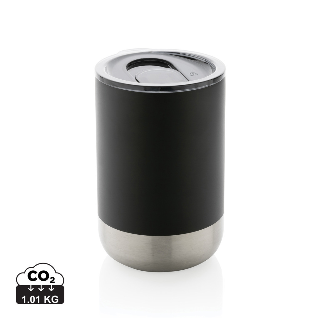 Moderní termohrnek s víčkem se zasunovacím systémem pro snadné pití. Ideální na cesty do práce nebo dopřávání si oblíbeného nápoje v práci. Dvoustěnná vakuová izolace uchová nápoj horký po dobu až 3h a studený až 6h. Vyrobeno z RCS recyklované nerezavějící oceli. RCS (Recycled Claim Standard) je globální standard, který umožňuje ověřit použití recyklovaného materiálu v produktu napříč celým dodavatelským řetězcem. Podíl použitého recyklovaného materiálu vzhledem k celkové váze produktu: 76 %. Bez BPA. Objem: 360 ml. Baleno v FSC kraftové krabičce.