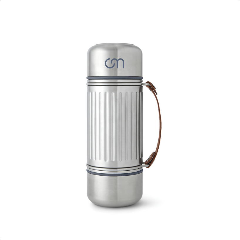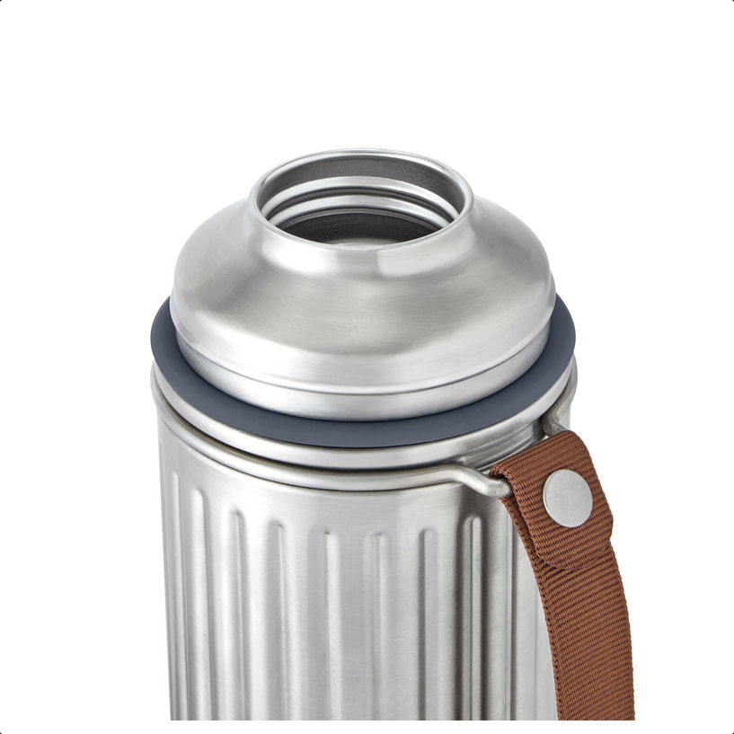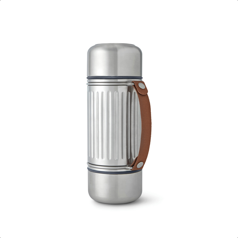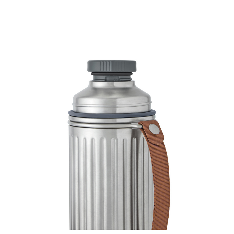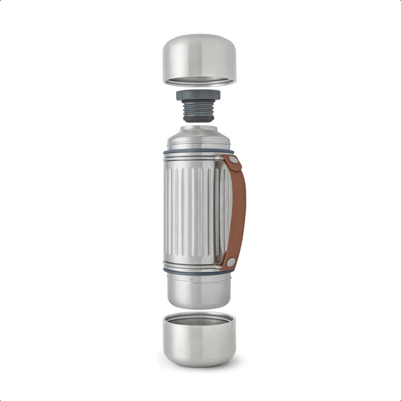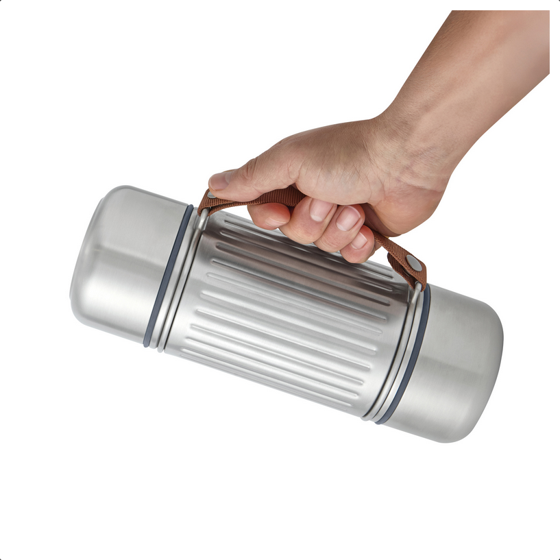 Tento 1l vakuově izolovaný nerezový termohrnek je vhodný pro túry, pláž i sjezdovky. Díky pevné konstrukci udrží nápoje teplé nebo studené až 24 hodin. Je nepropustný, má ocelové víčko s jednoduchým naléváním a dva dvojitě stěnové nerezové šálky. Šálky se širokým dnem jsou stabilní na nerovném povrchu, nylonový popruh usnadňuje přenášení. Silikonové těsnění zabraňuje kapání a po sejmutí popruhu lze termoláhev mýt v myčce.
