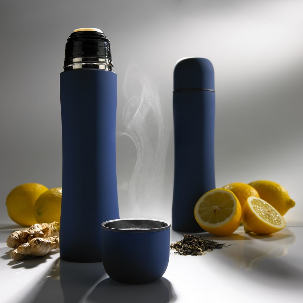 Nepropustná termoska s na dotyk měkkou povrchovou gumovou úpravou soft touch. Vyrobená z vysoce kvalitní nerezové oceli. Díky dvojité stěně dlouho udržuje teplo (6 hodin s uzavřeným uzávěrem). Vakuově izolovaná. Produkt má certifikát pro styk s potravinami a také certifikát BPA FREE. Produkt je zabalen do elegantní krabičky. Objem: 500 ml.