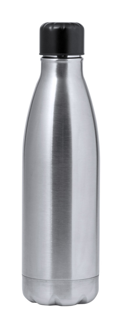 Nerezová dvoustěnná termoska ve tvaru láhve a dotykovým LED teploměrem na víčku. 500 ml. S vestavěnou dobíjecí baterií. Včetně USB nabíjecího kabelu.