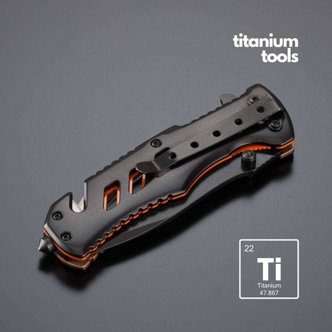 Masivní a odolný nouzový nůž Optima v novém provedení, vyrobený z vysoce kvalitní nerezavějící oceli s titanovým povrchem pro lepší tvrdost a extra odolnost proti korozi. Profilovaná rukojeť končí robustním rozbíječem oken a řezačkou automobilových pásů. Otevírá se oboustranným špendlíkem, ideální pro praváky i leváky. Obsahuje pojistku proti náhodnému uzavření během používání. Kovová spona umožňuje připnutí nože na opasek nebo do kapsy kalhot. Tento nůž najde využití jako každodenní nůž i jako nouzový nůž. Ideální pro zdravotníky, řidiče, extrémní sporty.