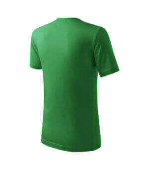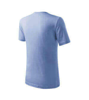 Kvalitní dětské tričko nízké gramáže s bočními švy. Úzký lem průkrčníku z žebrového úpletu. Vnitřní část zadního průkrčníku začištěna tkanou páskou. Zpevňující ramenní šev. Vhodné na potisk.