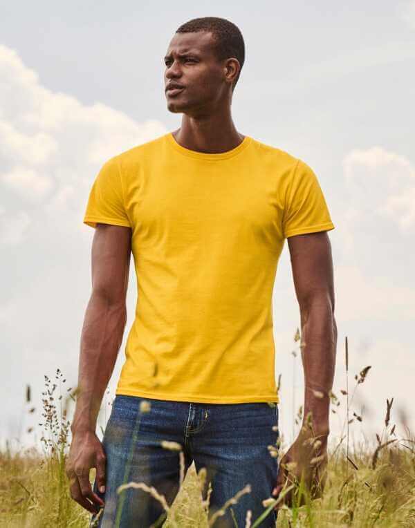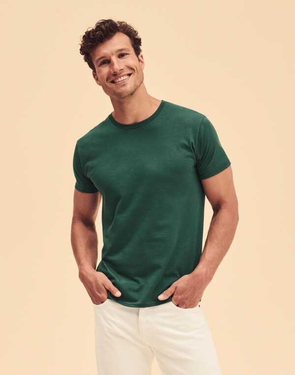 · Měkký pocit na dotek · kulatý výstřih s žebrováním · zpevňující pásek na krku · odtržitelný štítek · všité rukávy · bez bočních švů · slim fit