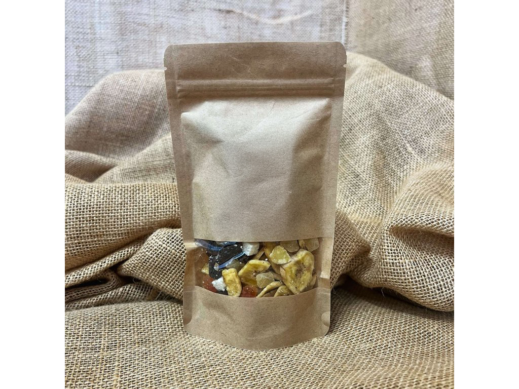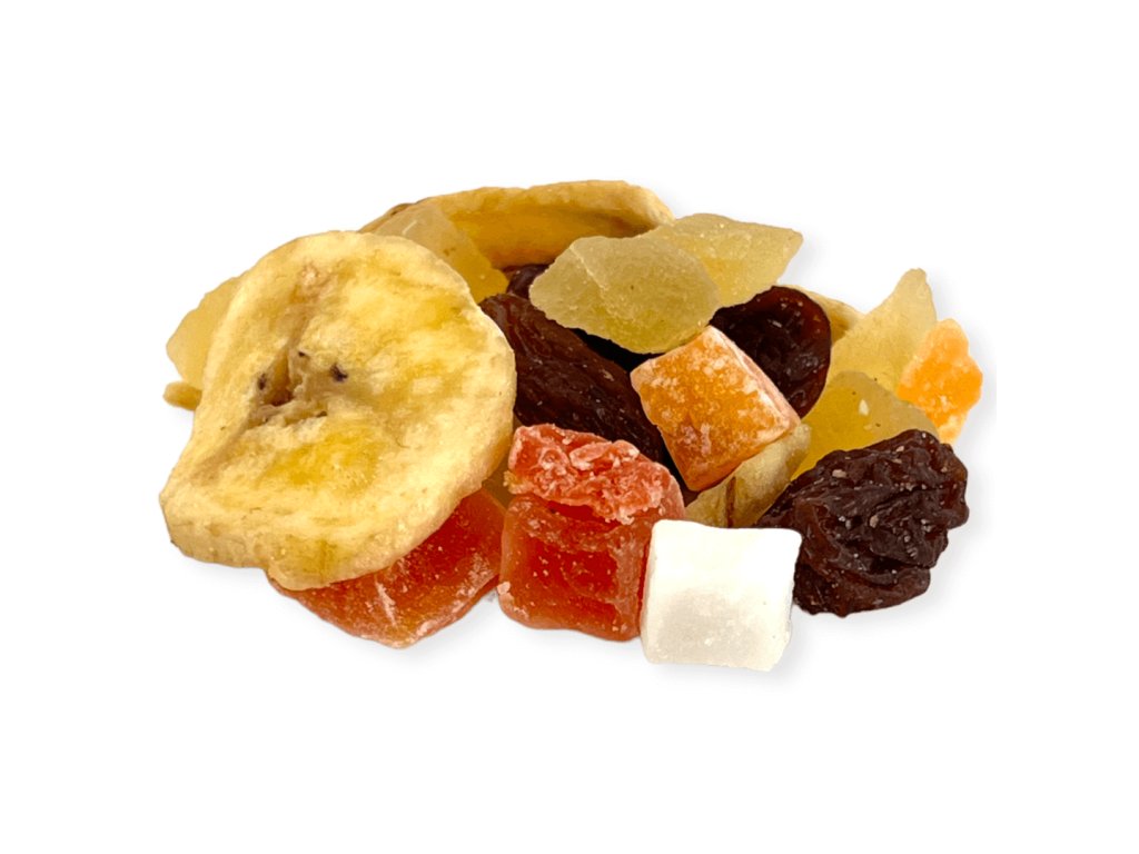 Vynikající tropická směs pro milovníky sušeného ovoce. Kombinace banánu, rozinek, ananasu, papaya a kokosu.
