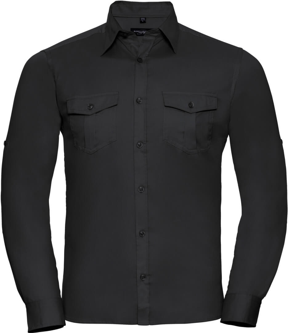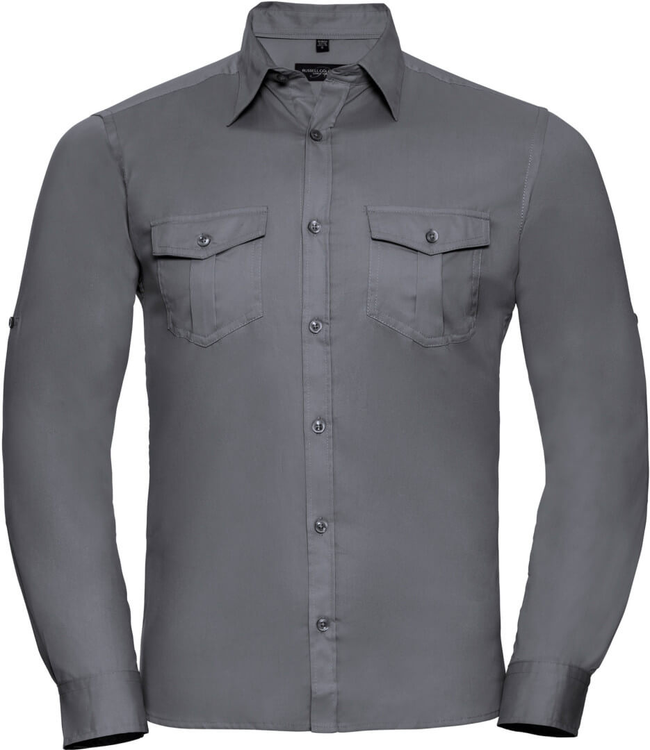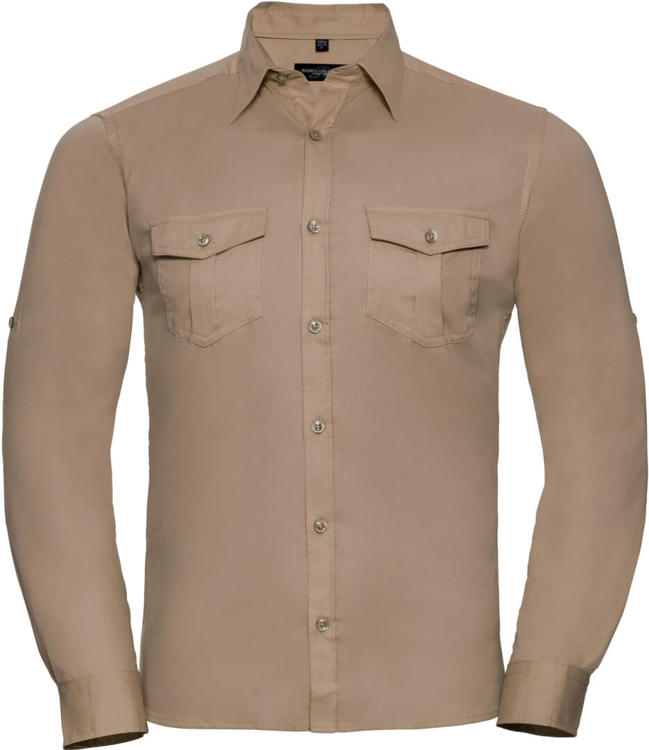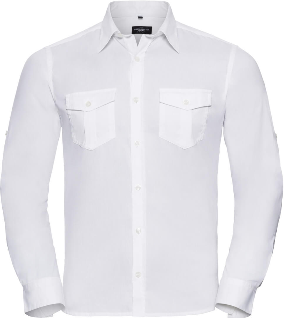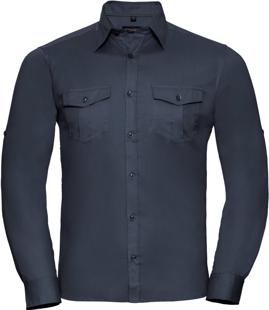 130g/m², 100% bavlna Twill Střih zdůrazňující postavu, s rukávy, které lze ohrnout, polorozšířený velkoryse střižený límec, barevně ladící pásek kolem krku se vzorem rybí kost, nakládaná náprsní kapsa s patkou...