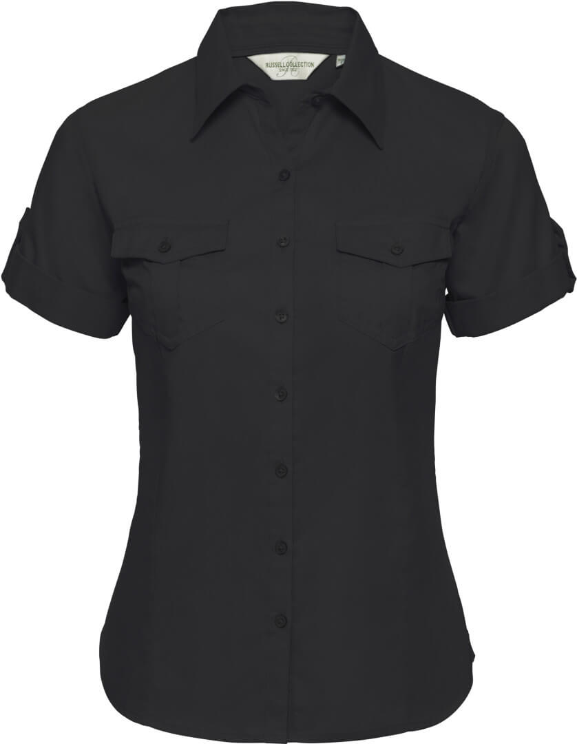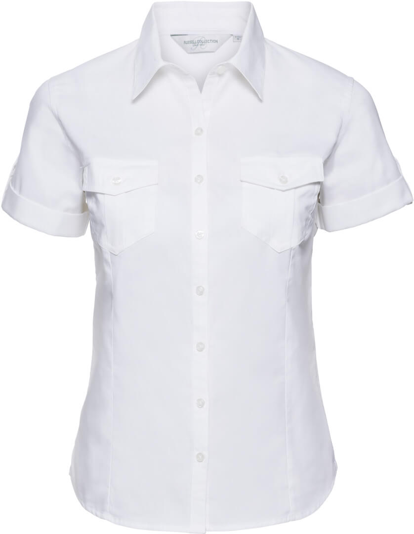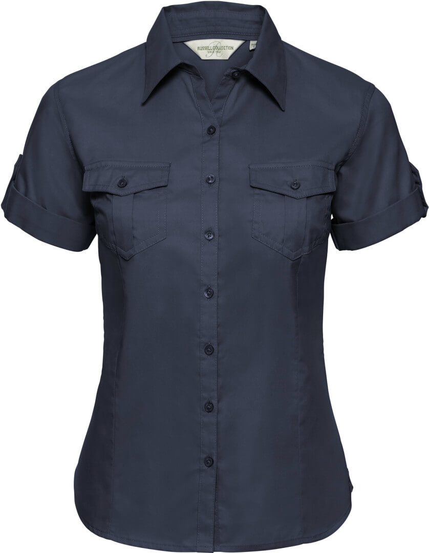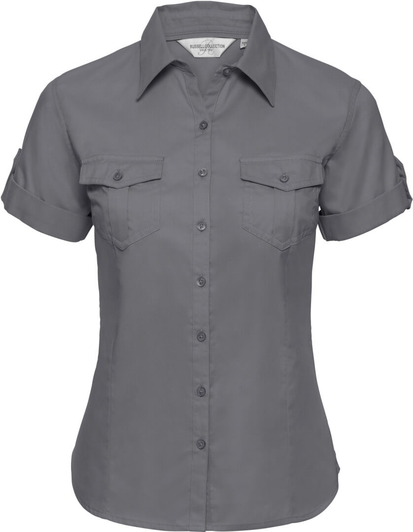 130g/m², 100% bavlna Twill Střih zdůrazňující postavu, s rukávy, které lze ohrnout, velkoryse střižený límec, barevně ladící pásek kolem krku se vzorem rybí kost, nakládaná náprsní kapsa s patkou a zapínáním na knoflík, nastavitelná hranatá manžeta se 2 knoflíky, náhradní knoflíky