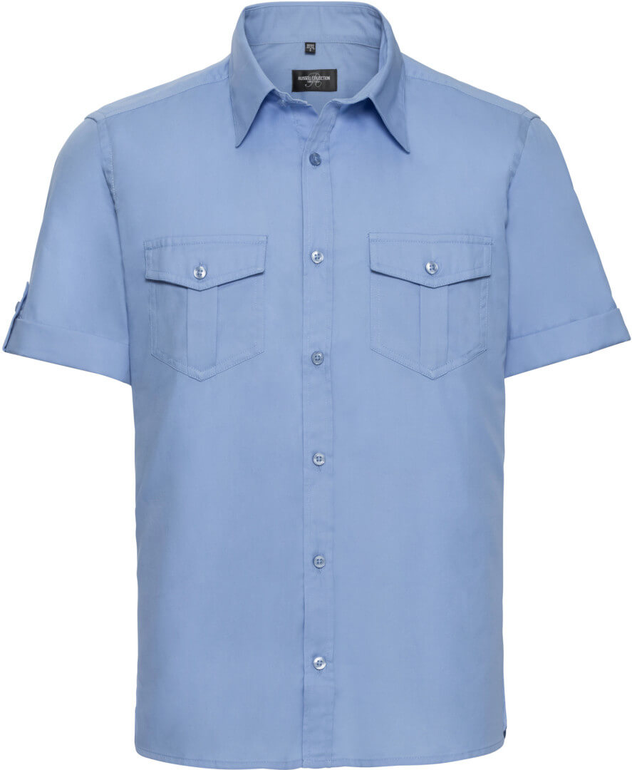 130g/m², 100% bavlna Twill Střih zdůrazňující postavu, s rukávy, které lze ohrnout, velkoryse střižený límec, barevně ladící pásek kolem krku se vzorem rybí kost, nakládaná náprsní kapsa s patkou a zapínáním na knoflík, nastavitelná hranatá manžeta se 2 knoflíky, náhradní knoflík
