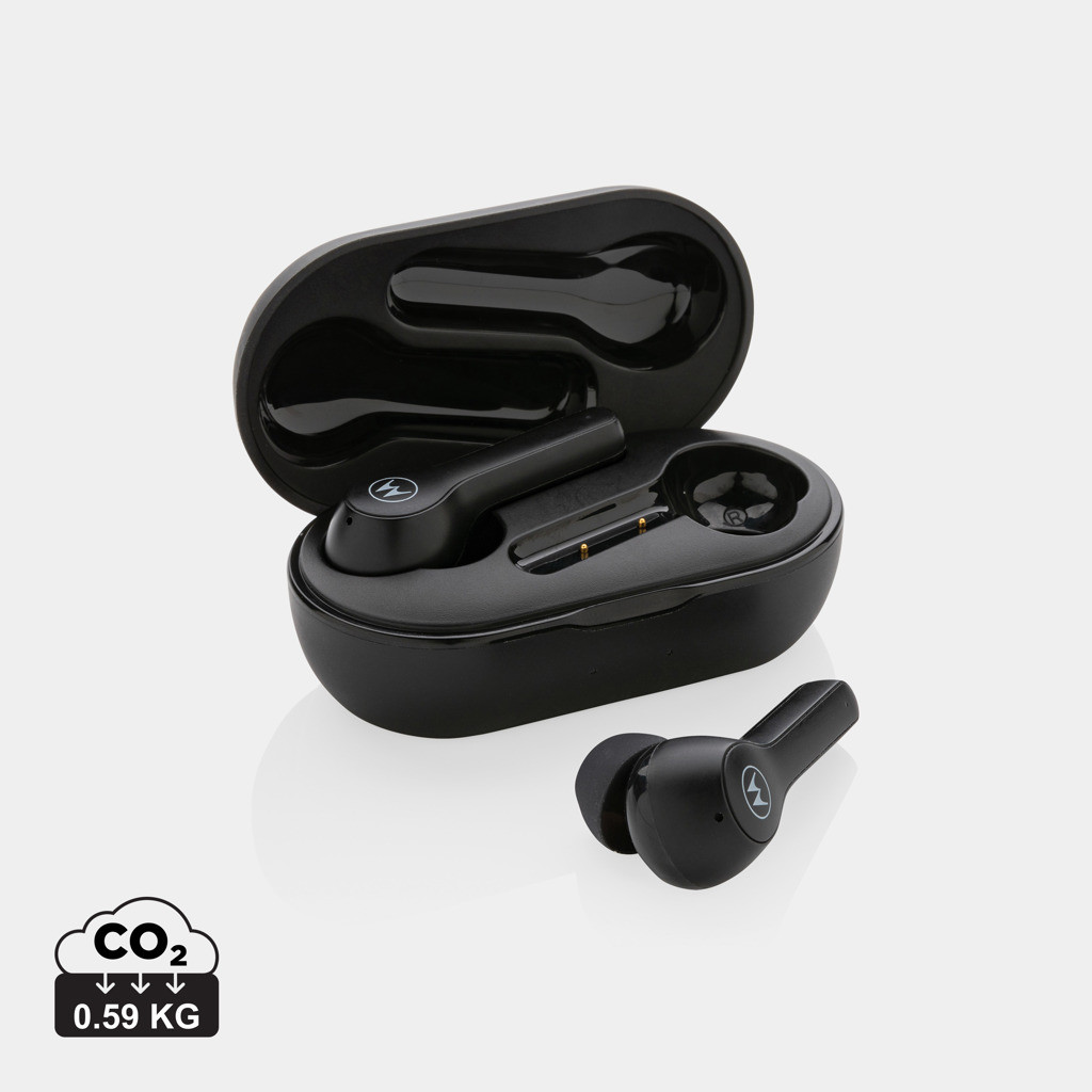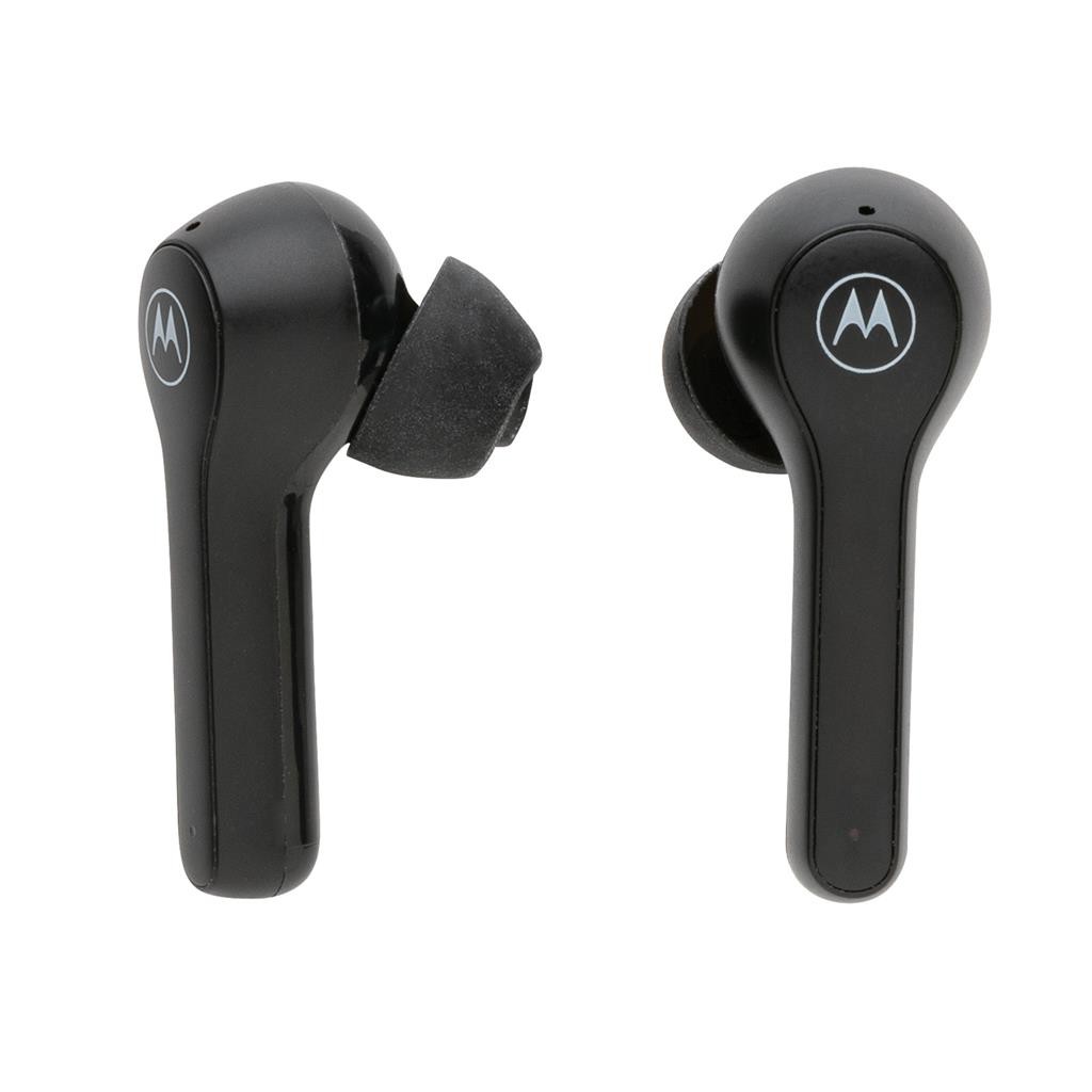 Skutečně bezdrátová sluchátka Motorola s ergonomickým tvarem pro maximální komfort při poslechu. Dotykové ovládání, BT 2.0, mikrofon pro telefonování. Výdrž sluchátek 6h s možností dobití v krabičce pro dalších 15h poslechu. Voděodolnost IPX5. Chytrý hlasový asistent (Siri® a Google Assistant™). 1 baterií typu Li-poly v balení.