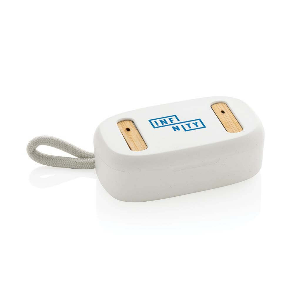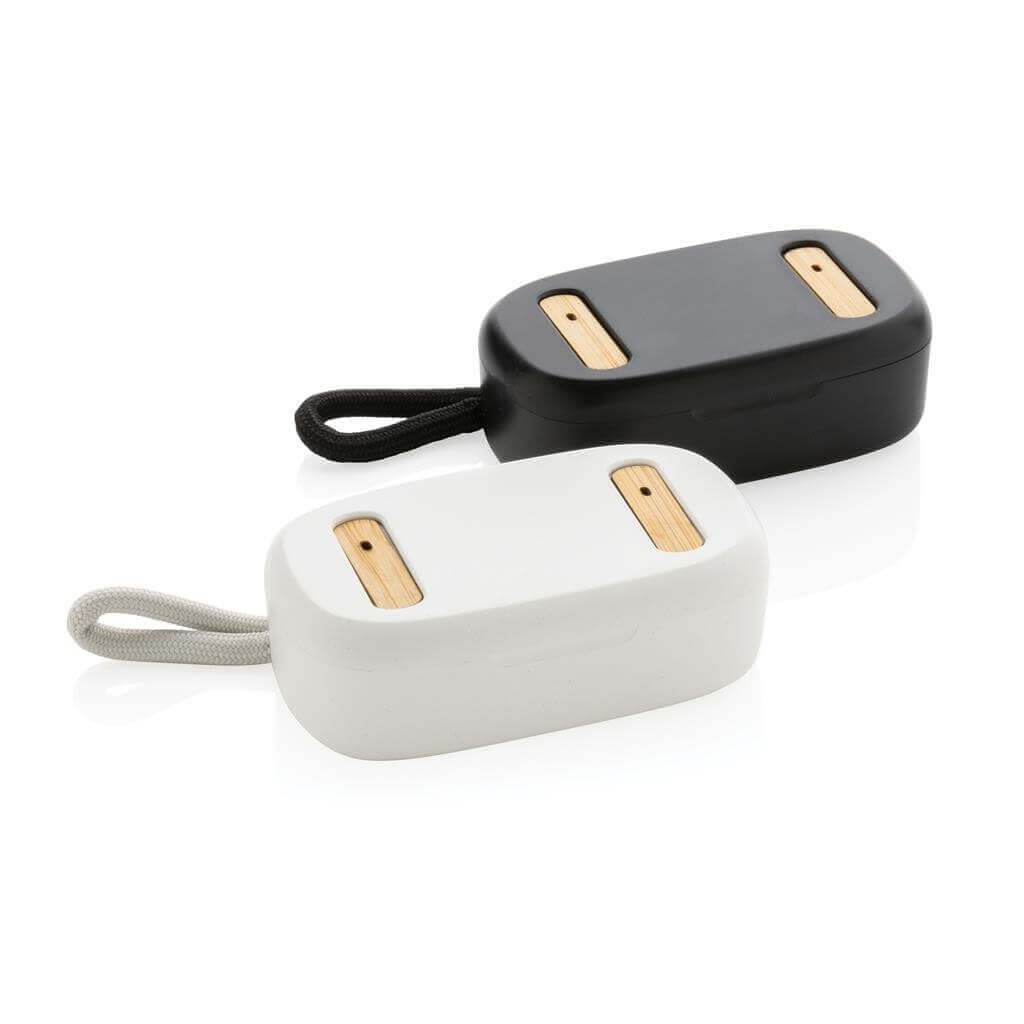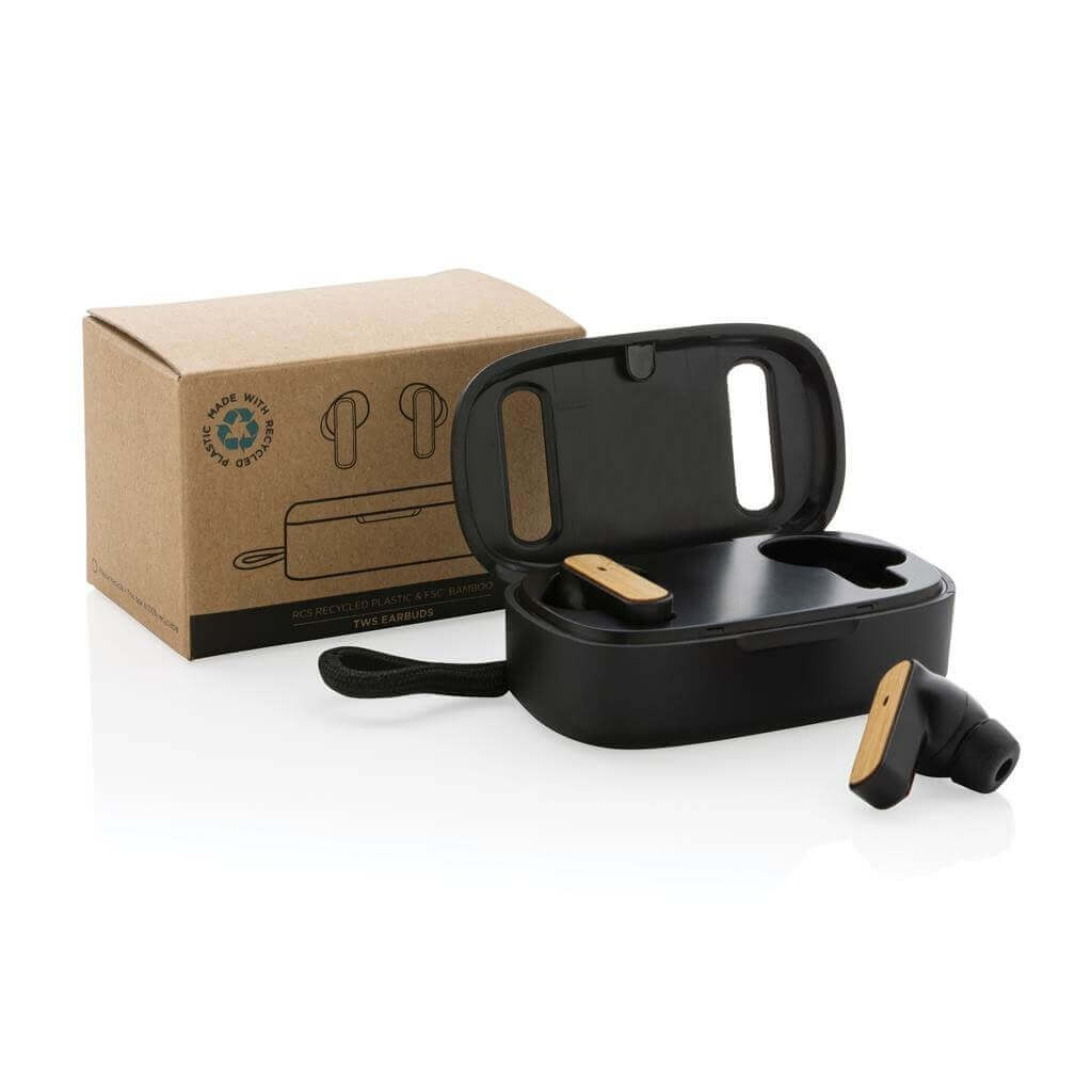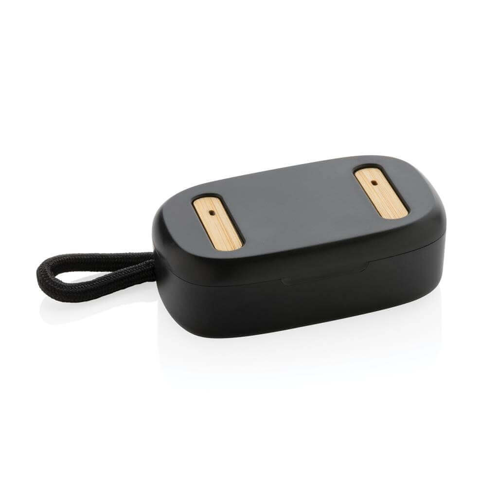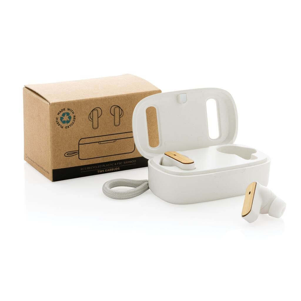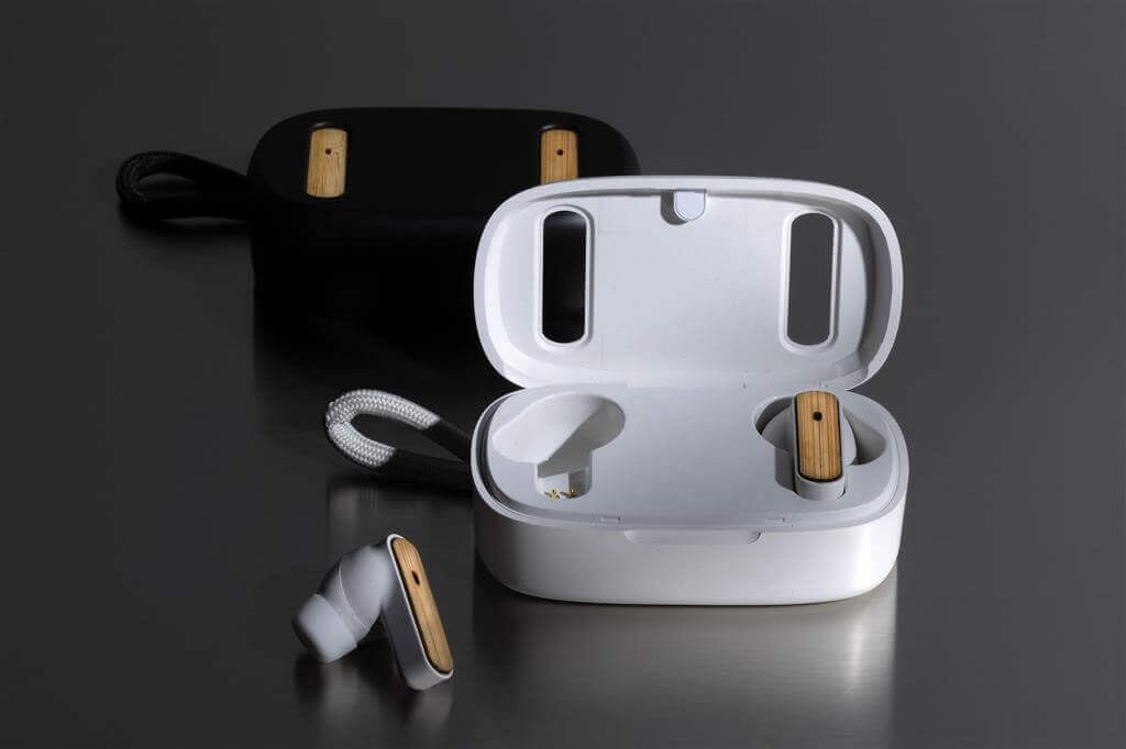 Další generace skutečně bezdrátových sluchátek v nabíjecí krabičce. Vyrobené z RCS recyklovaného ABS plastu. RCS (Recycled Claim Standard) je globální standard, který umožňuje ověřit použití recyklovaného materiálu v produktu napříč celým dodavatelským řetězcem. Celkový podíl recyklátu dle váhy produktu: 58 %. Detaily vyrobené z FSC® bambusu. Kapacita 40 mAh pro poslech po dobu až 5h na střední hlasitost. Nabíjecí krabička s kapacitou 400 mAh sluchátka plně dobije již za 1h. BT 5.3 zajišťuje snadné automatické párování a stabilní bezdrátové spojení na vzdálenost až 10m. Mikrofon pro možnost telefonování. Včetně 3 extra párů nástavců do uší v různých velikostech a nabíjecího kabelu z GRS TPE. Baleno v FSC® kraftové dárkové krabičce. Produkt i příslušenství bez PVC. 3 baterie typu Li-poly súčasťou balenia.