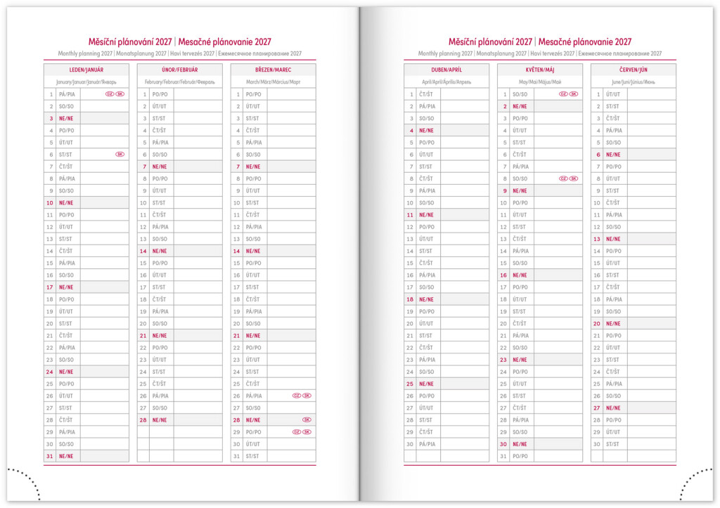 • měsíční plánovací kalendář 2027