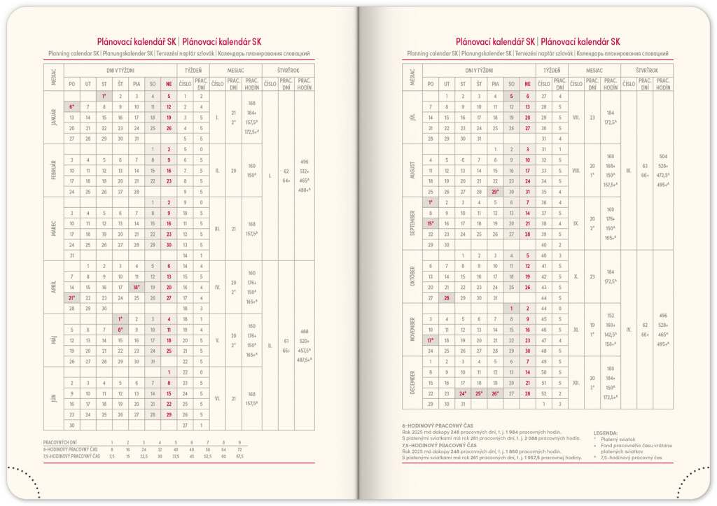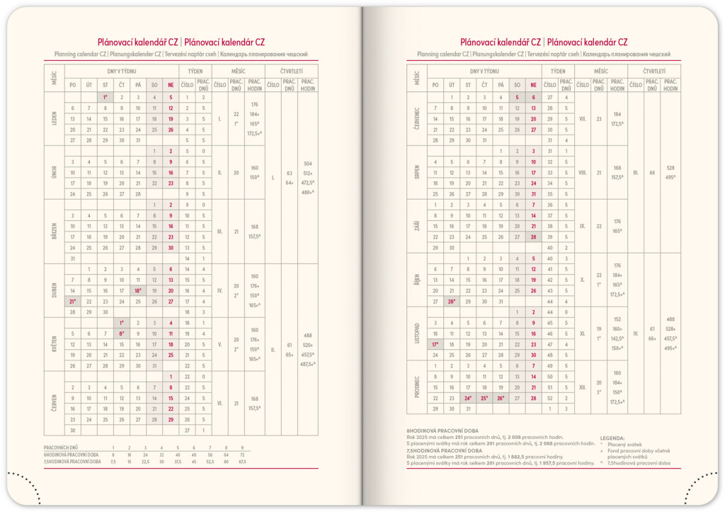 • pracovní plánovací kalendář
