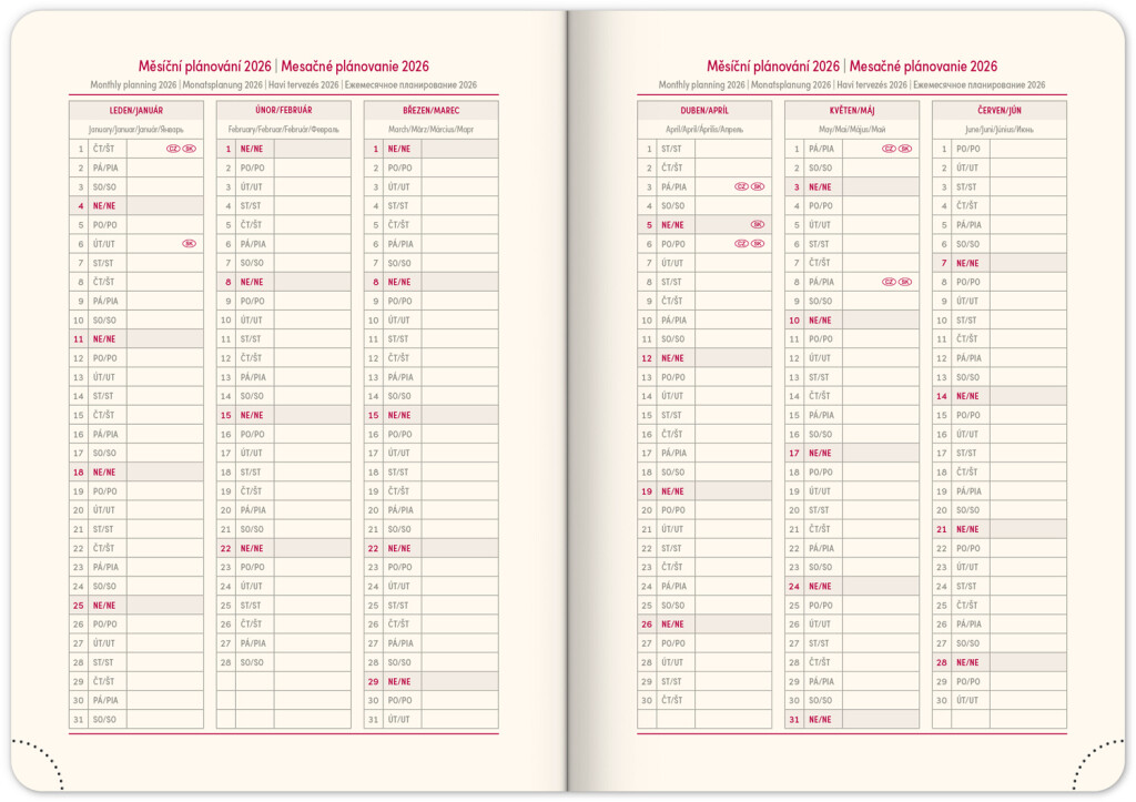 • roční plánovací kalendář 2026–2027
