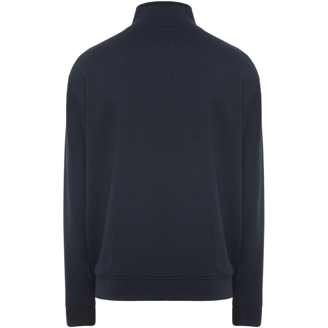 Svetr s vysokým límcem a odpovídajícím zipem. Odpovídající vnitřní límec se zesílenými krytými švy. Žebrovaná tkanina 1x1 v manžetách a v pase. Odnímatelný štítek. Model měří 185 cm a má na sobě velikost L, modelka měří 168 cm a má na sobě velikost S.