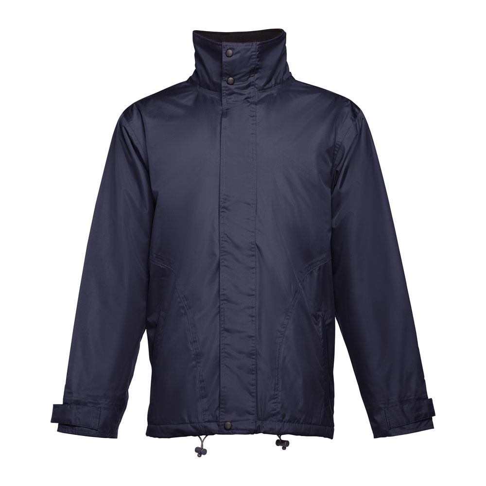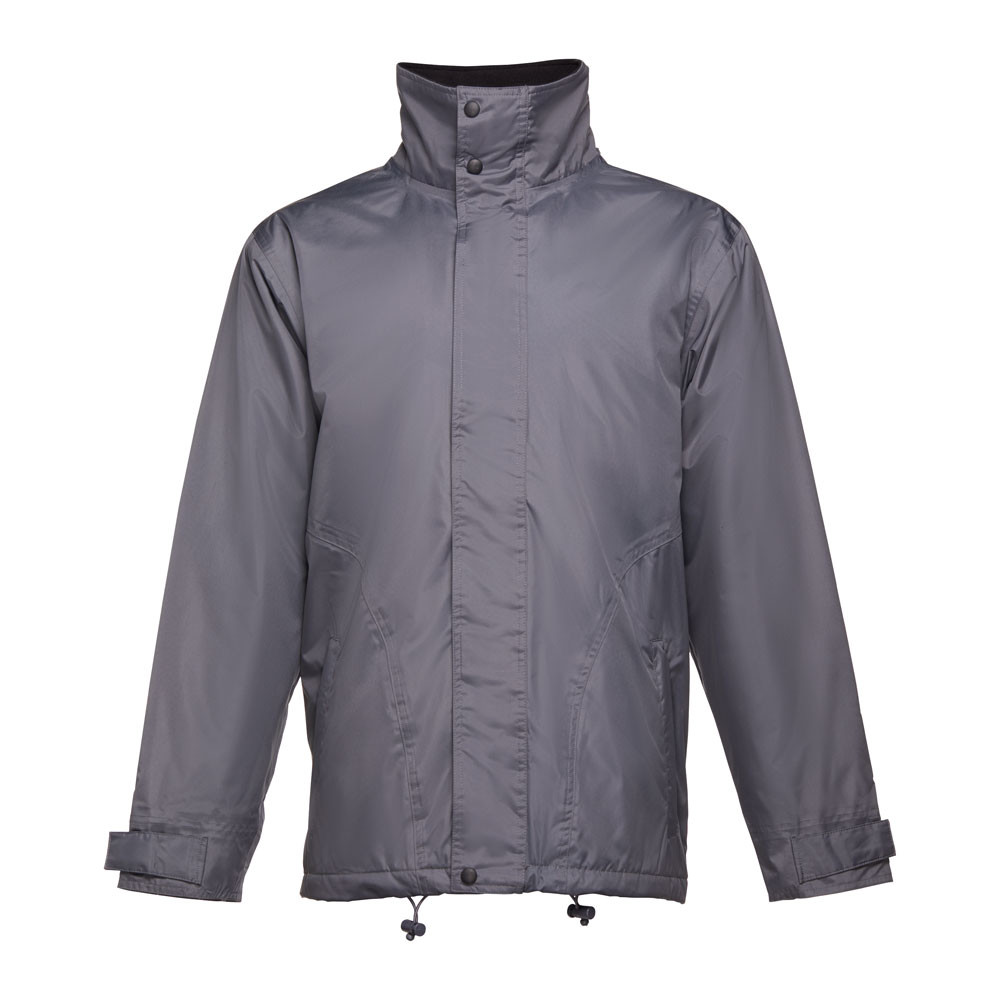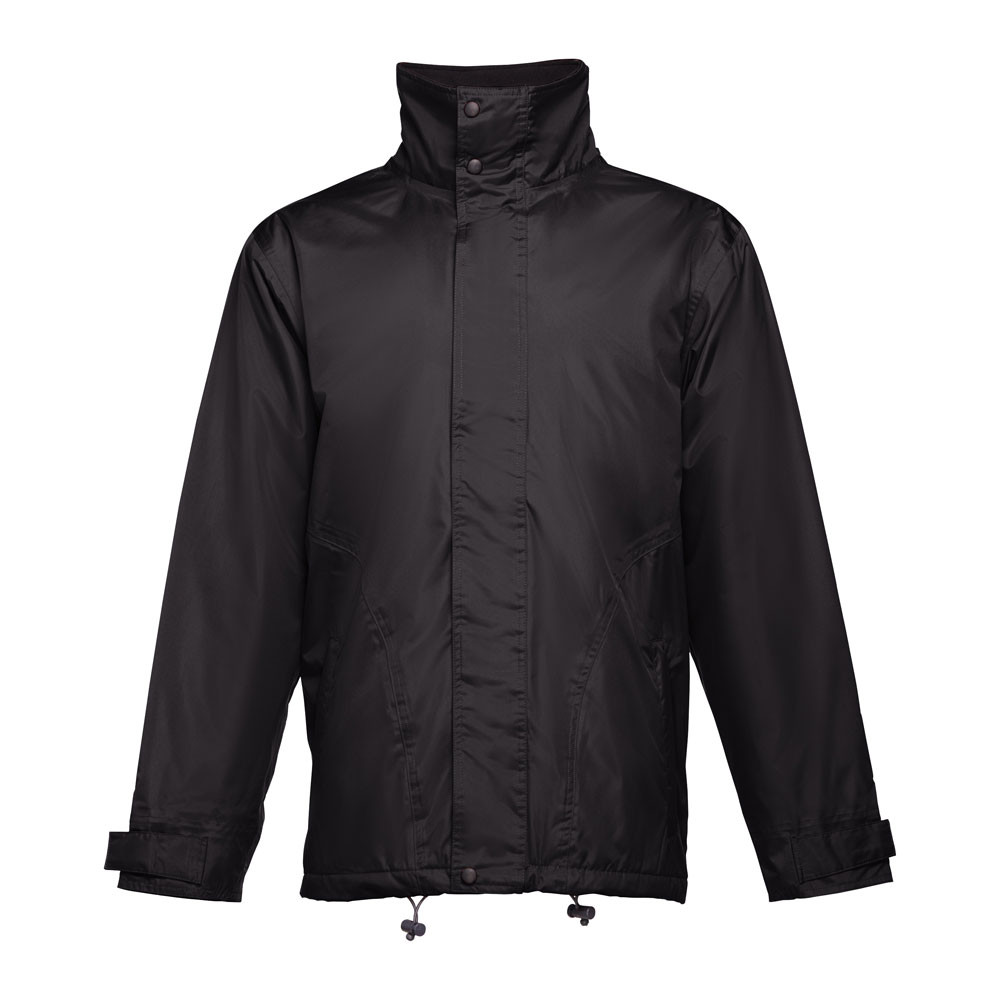 Zateplená unisexová parka. Vnější část ze 100% polyesterové ponžé 240 s potahem z voděodolného PVC. Vnitřní část ze 100% polyesterového taftu. Výplň: polyester (80 g/m²). Límec je podšit černou síťovinou z materiálu polar (zapíná se páskem se suchým zipem). Skládací kapuce na límci, nastavitelná pomocí černých brzdiček. Klopa, barevný zip, suchý zip a černé knoflíky. 2 vnější kapsy s klopou a 2 vnitřní kapsy (1 na mobilní telefon) se zapínáním na suchý zip. Vnitřní manžety s žebrováním 2x2. Nastavitelné vnější manžety s pásky na suchý zip. Tepelně utěsněné švy. Zip v dolní části zadního dílu pro potisk.