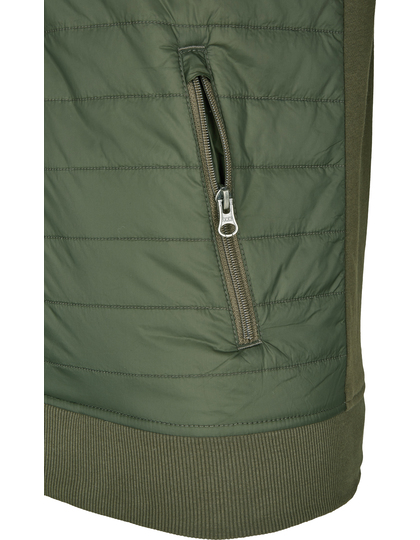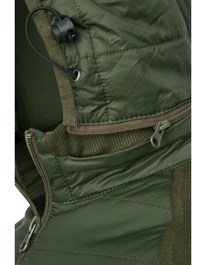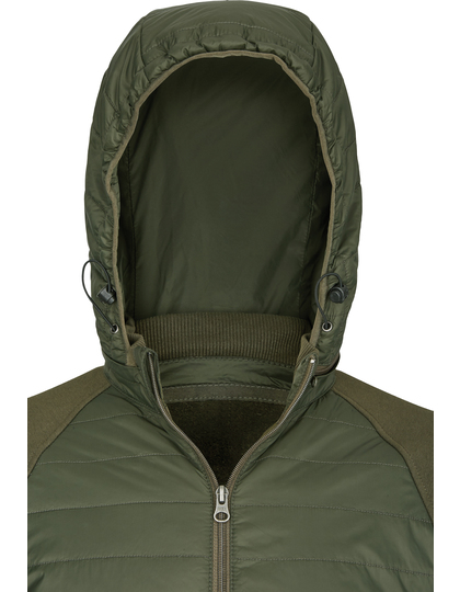 Prošívaná bunda ze směsi | Odnímatelná kapuce ze tří dílů, dvouvrstvá a prošívaná | Stahovací šňůra a zarážka | Žebrovaný stojáček | Přední část vyrobená z polyesteru | Nylonový zip YKK s kovovým jezdcem uprostřed v přední části a kryt brady | Boční kapsy s nylonovým zipem YKK | Žebrované manžety na rukávech a lemu | Zadní část a raglánové rukávy jsou vyrobeny ze směsi bavlny/teplákoviny/žerzeje s měkkou žerzejovou tkaninou uvnitř | Středně velký štítek na jedné straně | Vyjímatelný štítek horníků | Předem zmenšený | Enzymatické a silikonové mytí.