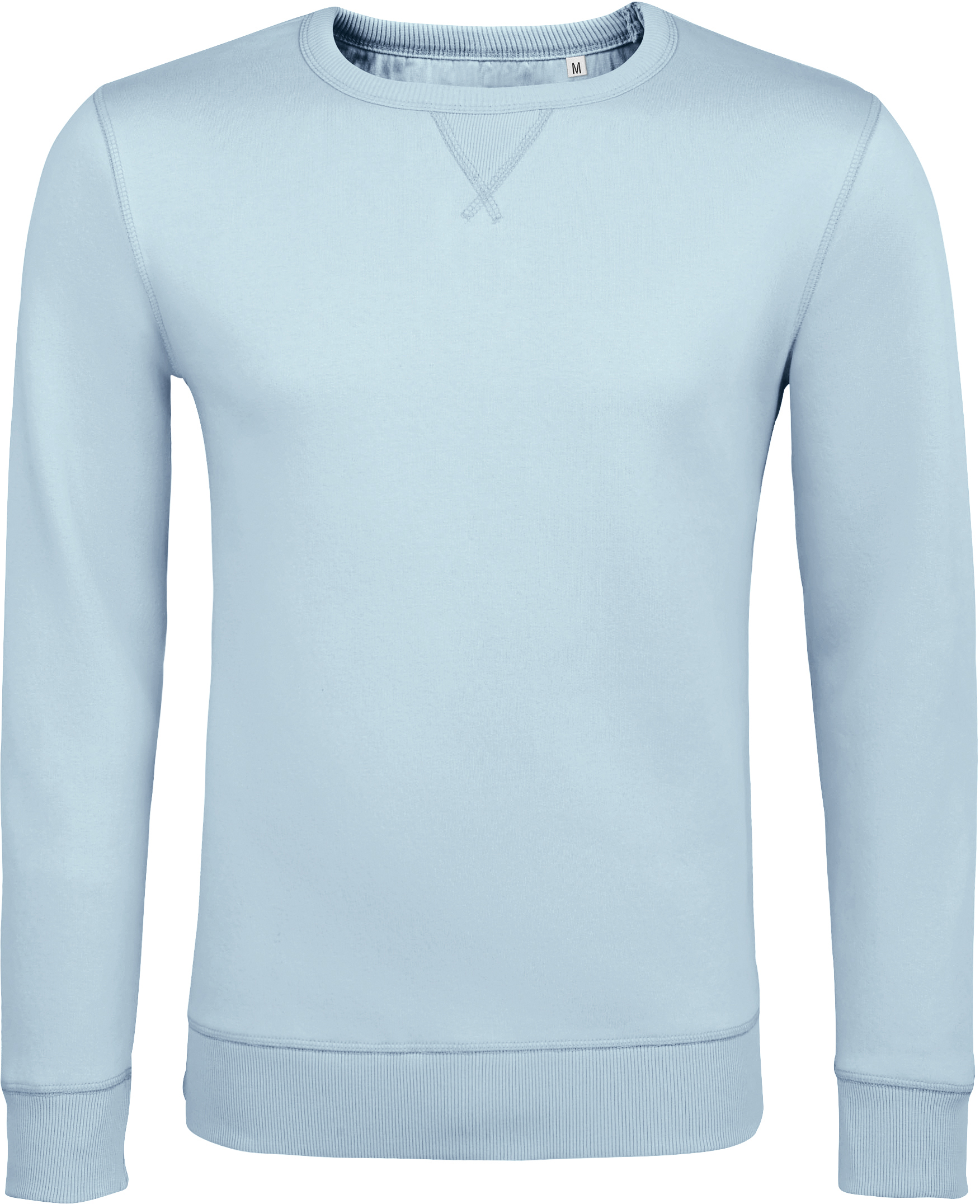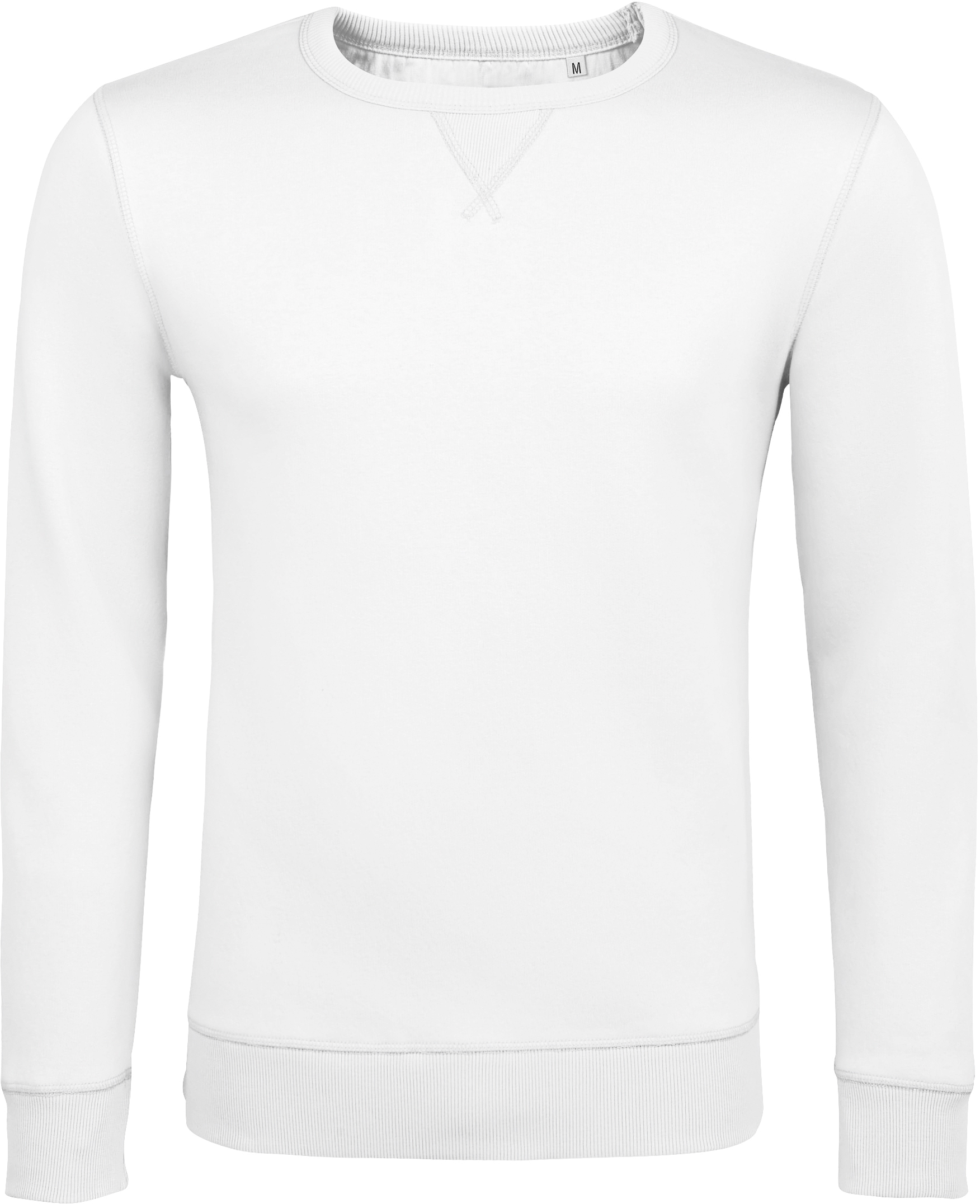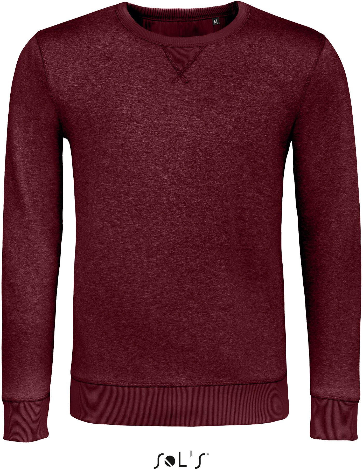 280g/m², 80% česaná bavlna, 20% polyester, grey melange: 75% bavlna, 20% polyester, 5% viskóza, heather oxblood/heather denim: 60% bavlna, 40% polyester 2x2 žebrované manžety a lem, vsazené rukávy, lemovka u krku, vsadka ve tvaru půlměsíce na krku, malá V vsadka vpředu, uvnitř zdrsněno, bez štítku