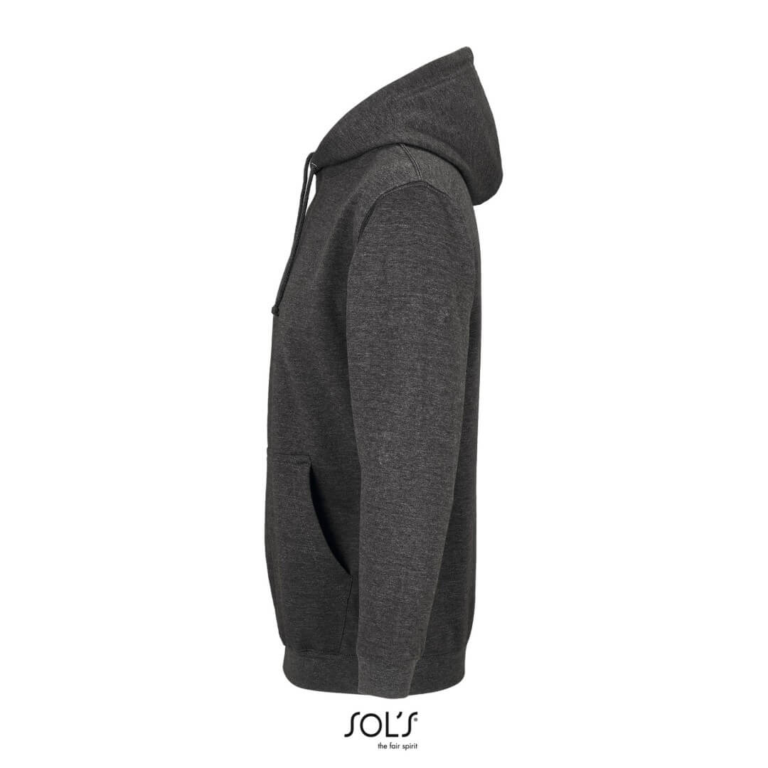 Unisex | Bavlna / recyklovaný polyester | Vsazené rukávy | Žebrovaný límec, manžeta a lem | Kapsa klokanka | Podšitá kapuce s krajkou ve stejné barvě a kovovými očky | Česaný flís | Odtrhávací štítek
