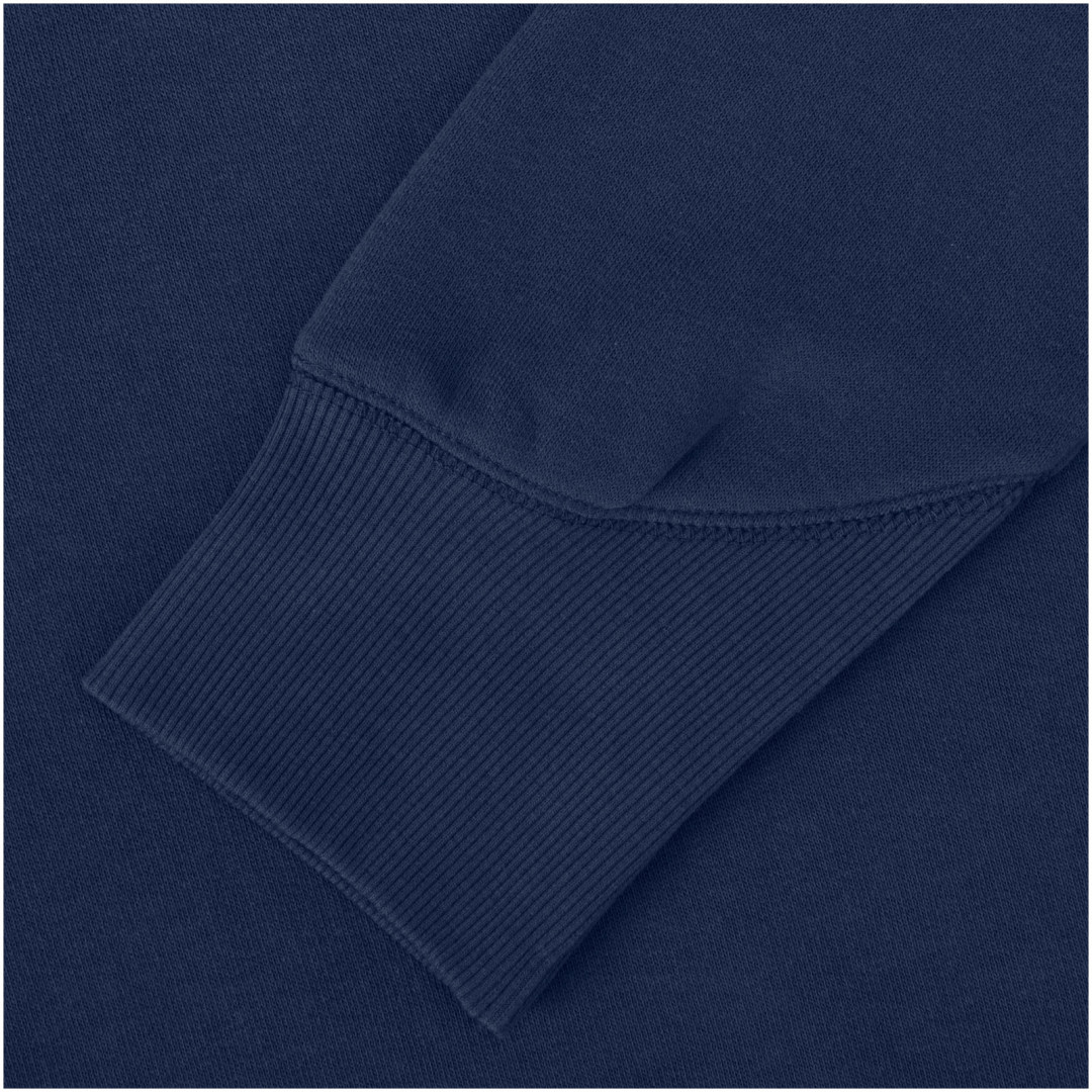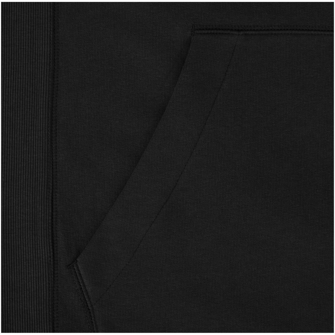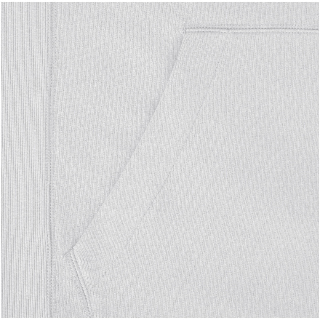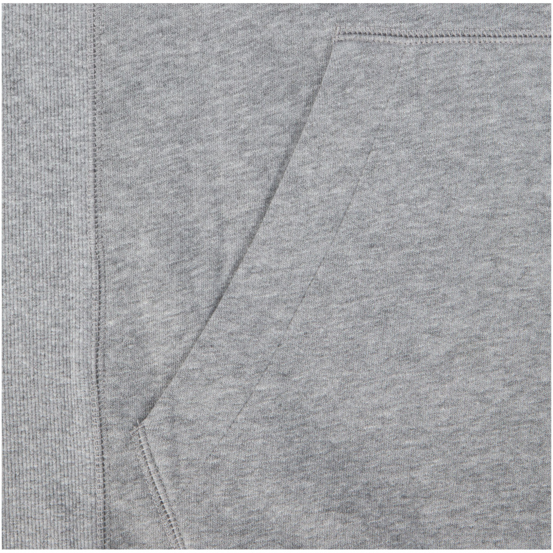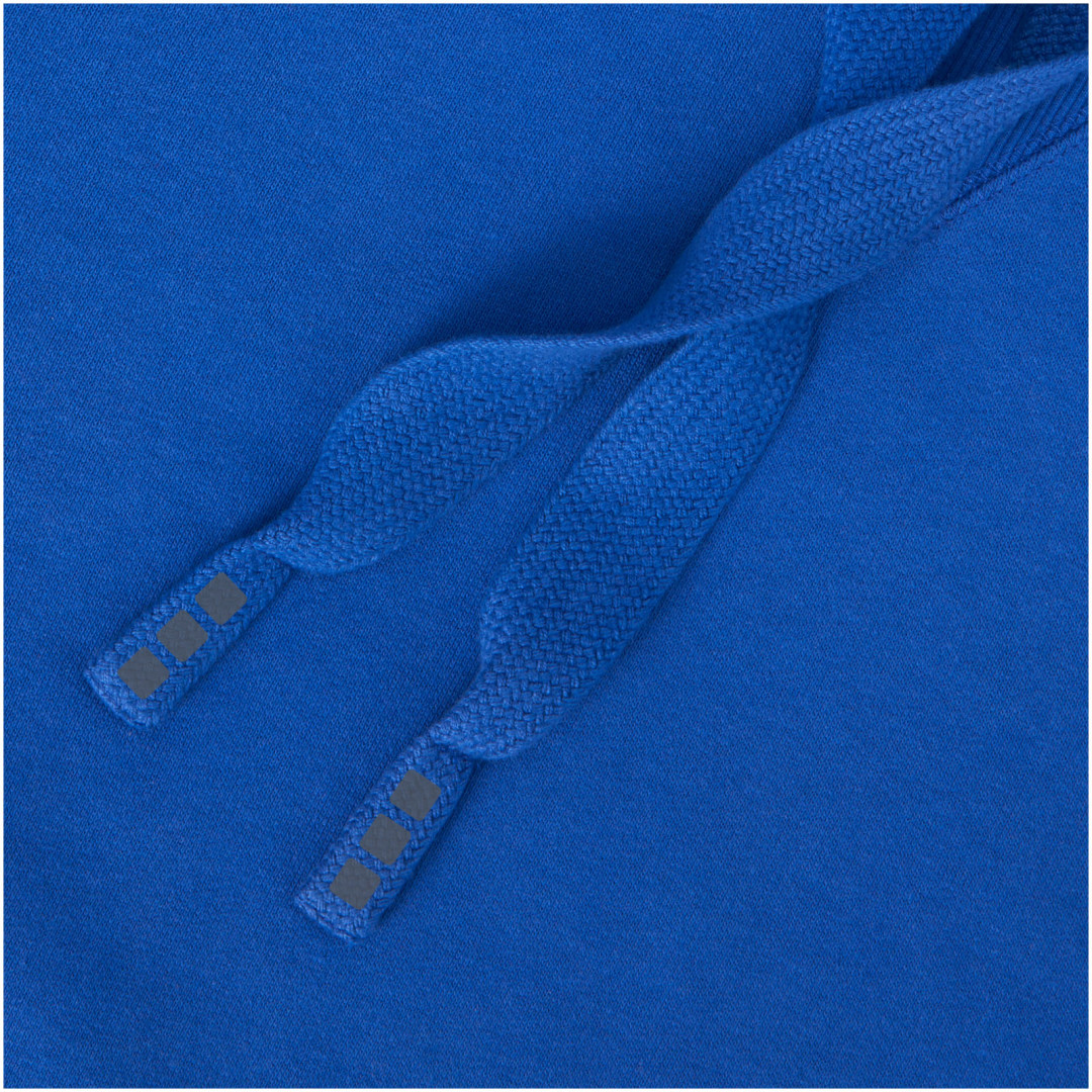 Žebrový úplet bočních panelů Žebrový úplet v-vkládek vpředu na středu. Ploché žebrované manžety ve tvaru V. Žebrový úplet spodního lemu. Stahovací šňůrka v kapuci. Klokaní kapsa. Sedlo. Podšívka z jednolícní pleteniny (žerzej) uvnitř kapuce. Gravírovaná postříbřená očka. Saténová lemovka výstřihu. Páska ve tvaru rybí kosti v kontrastní barvě. Vnitřní kartáčovaná strana zajišťuje měkký, hřejivý a pohodlný pocit.