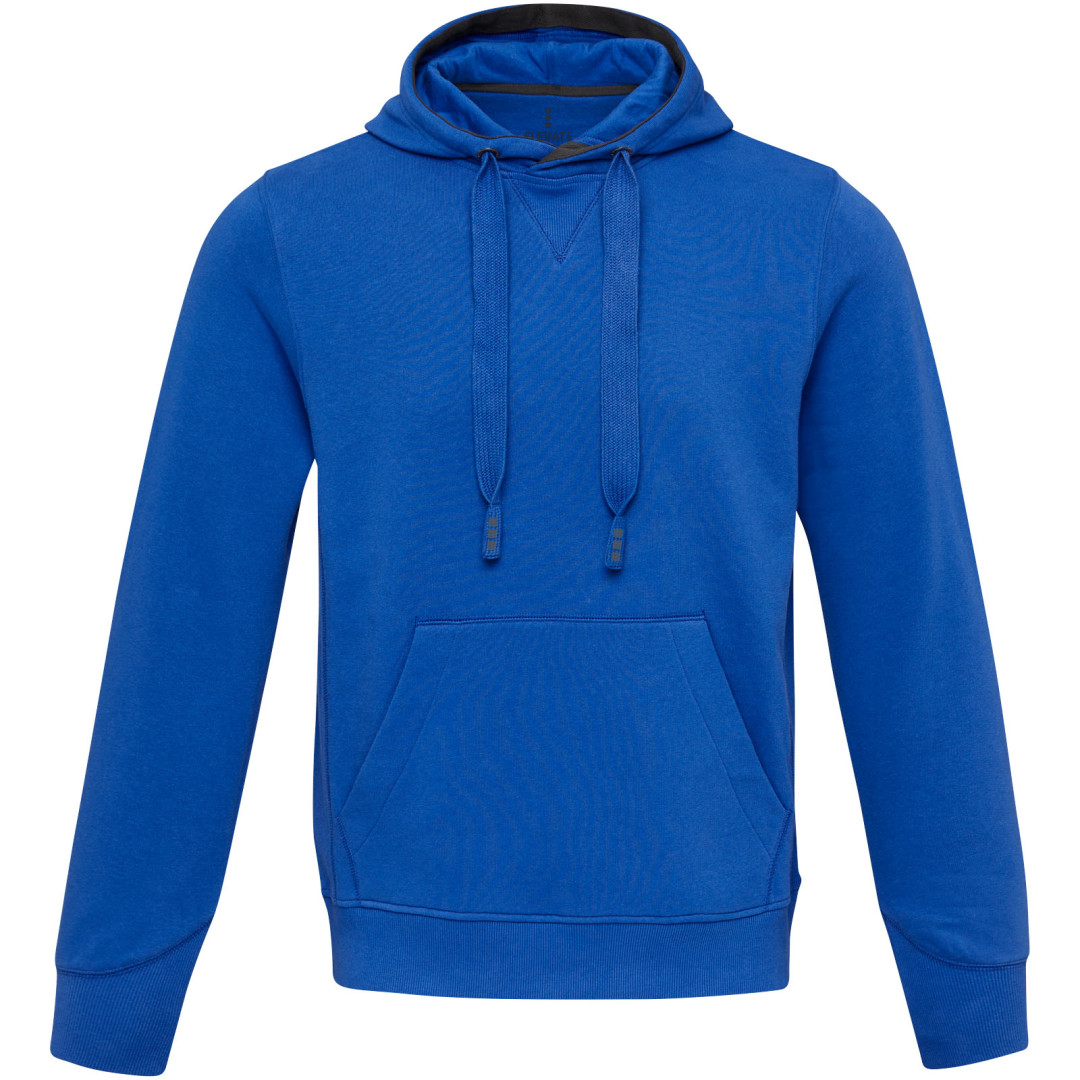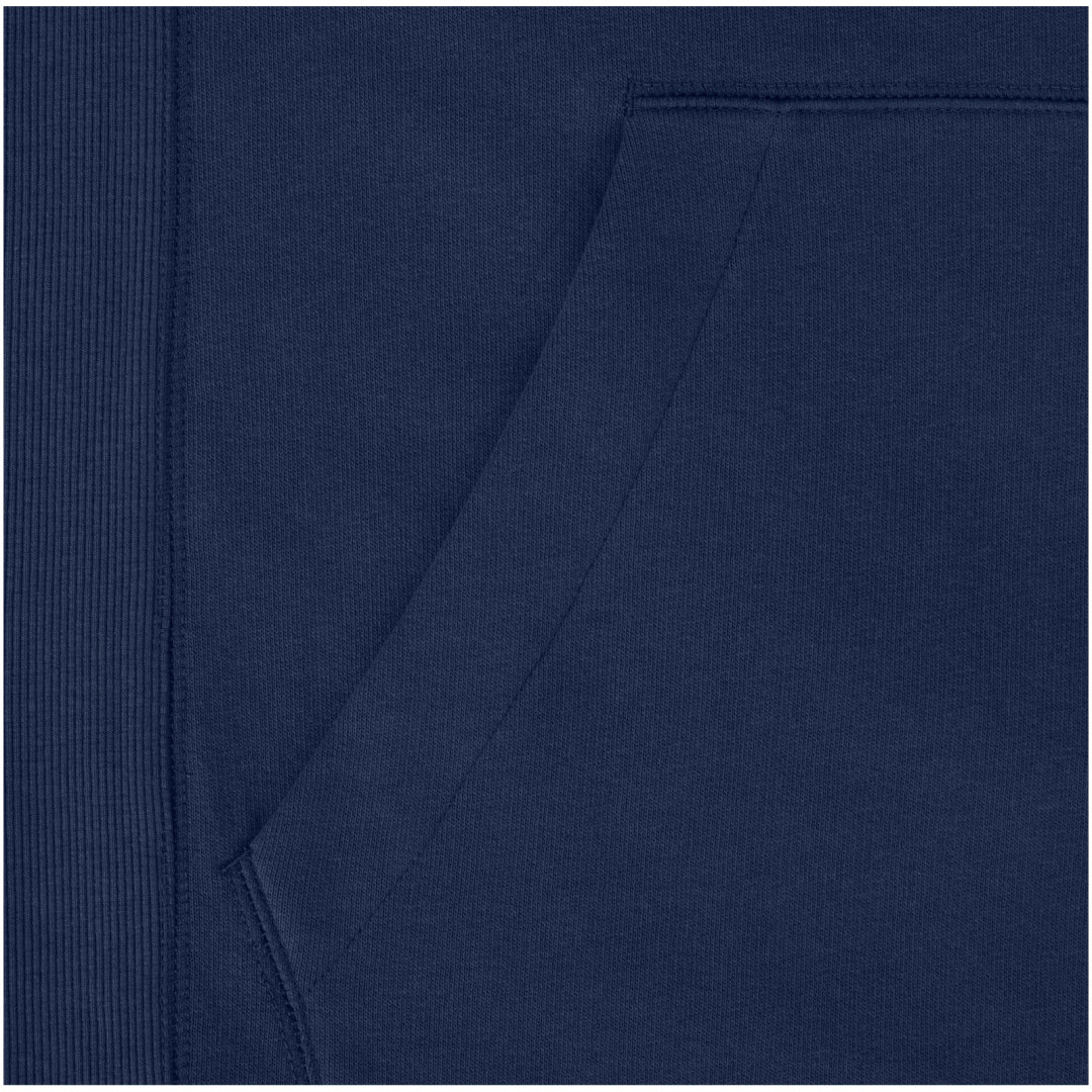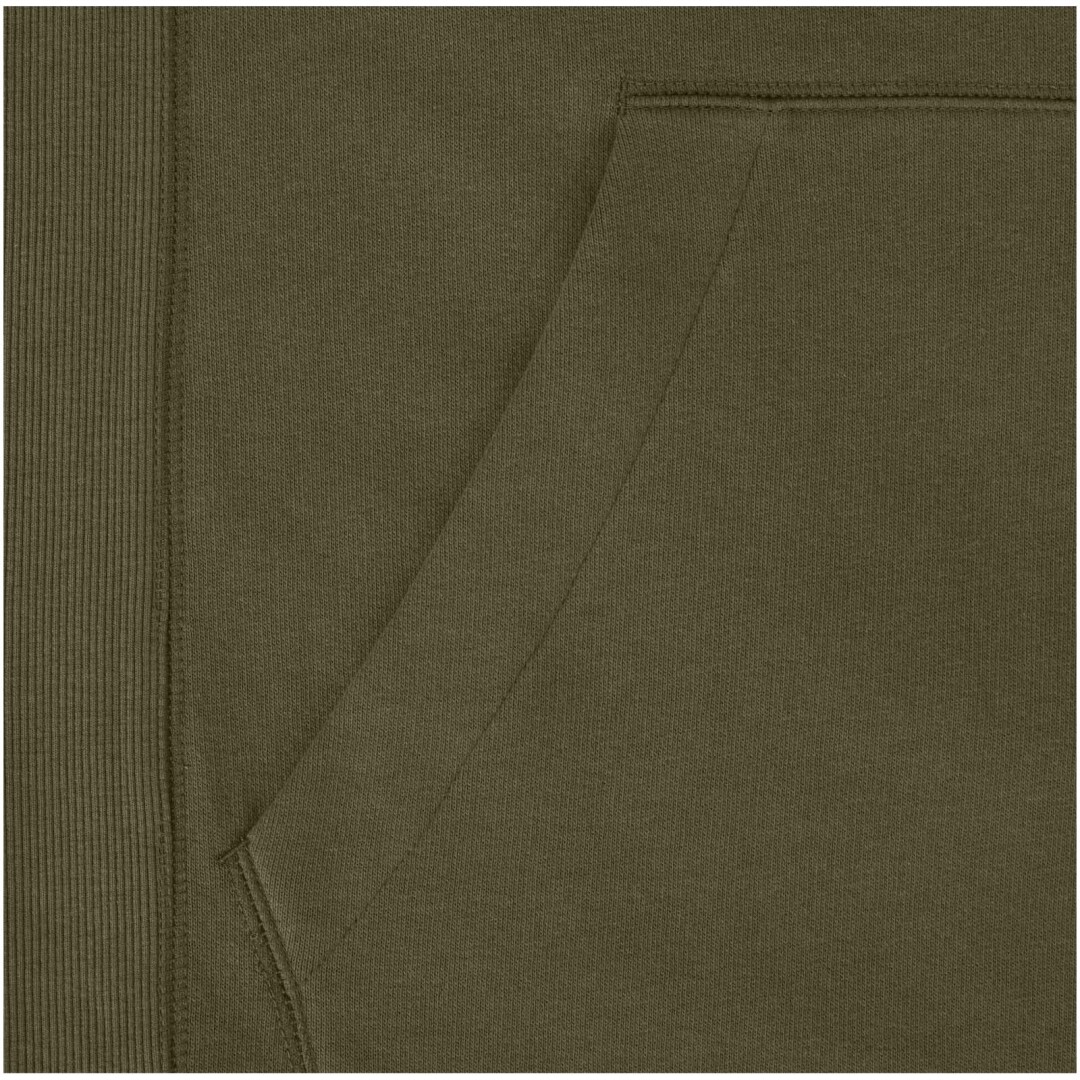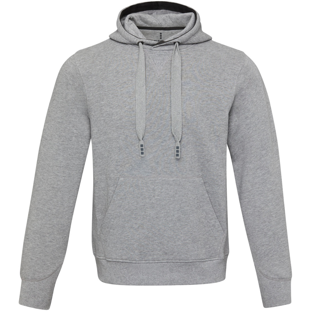 Žebrový úplet bočních panelů Žebrový úplet v-vkládek vpředu na středu. Ploché žebrované manžety ve tvaru V. Žebrový úplet spodního lemu. Stahovací šňůrka v kapuci. Klokaní kapsa. Sedlo. Podšívka z jednolícní pleteniny (žerzej) uvnitř kapuce. Gravírovaná postříbřená očka. Saténová lemovka výstřihu. Páska ve tvaru rybí kosti v kontrastní barvě. Vnitřní kartáčovaná strana zajišťuje měkký, hřejivý a pohodlný pocit.