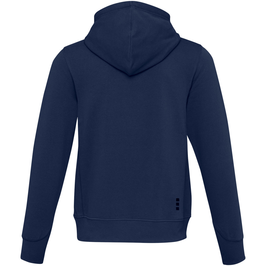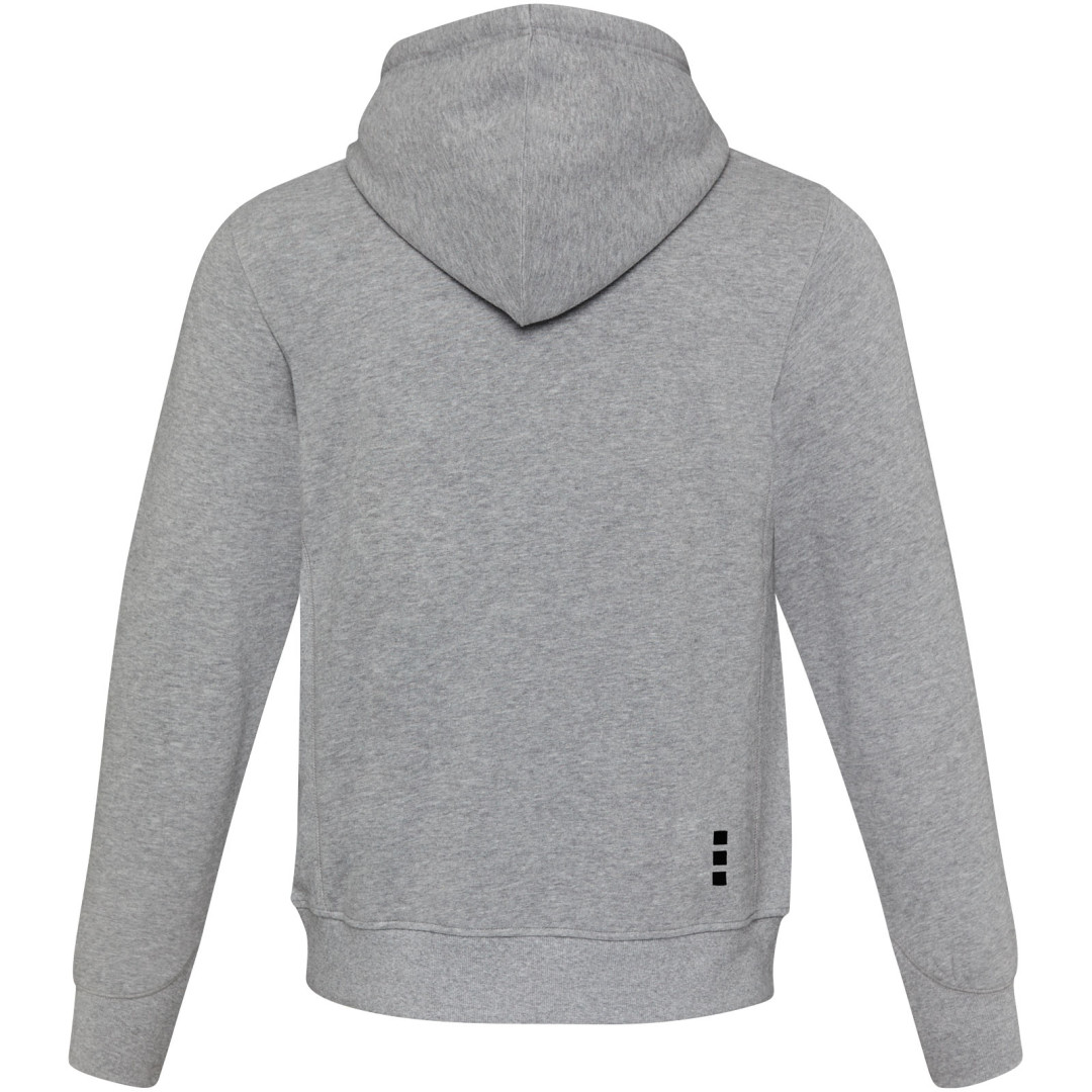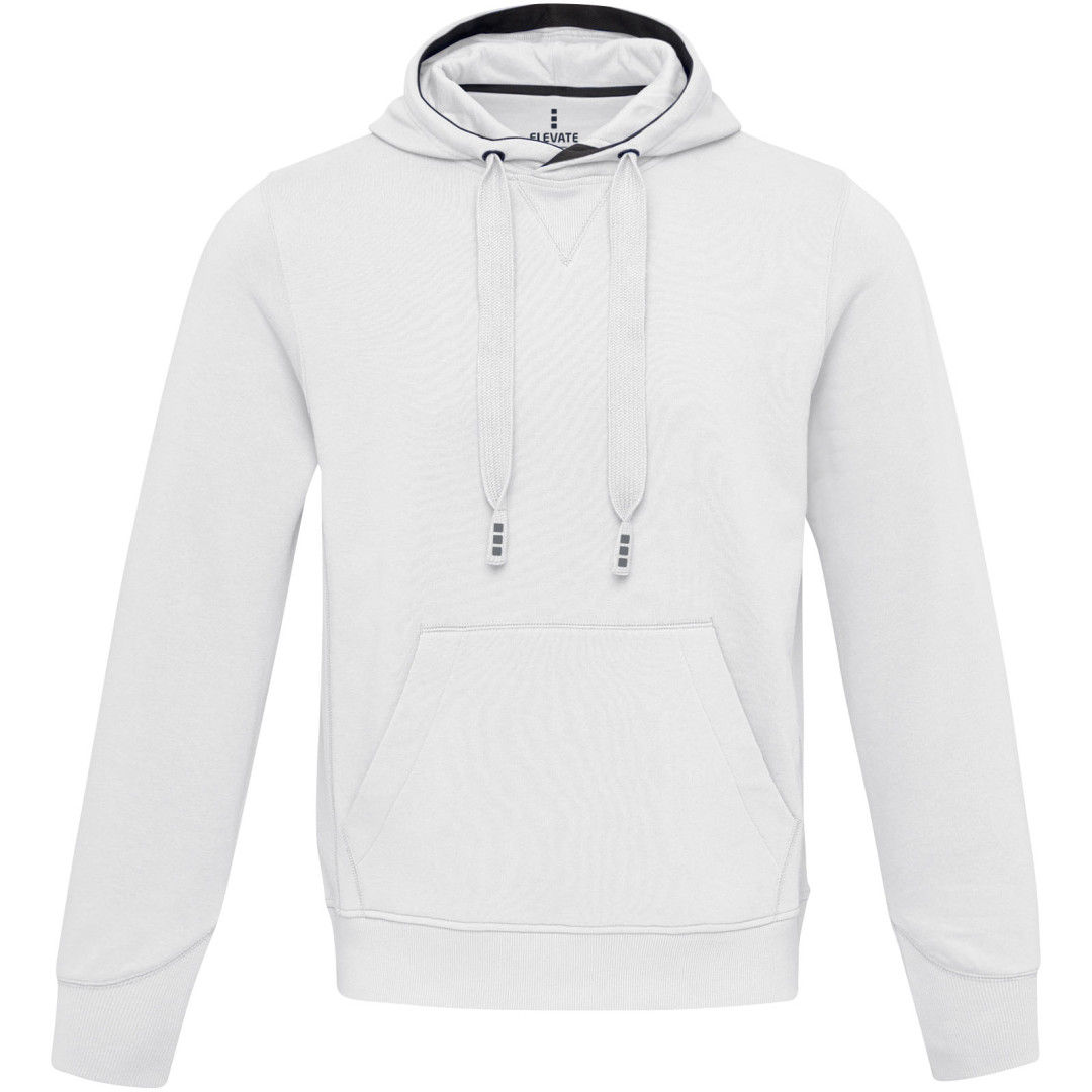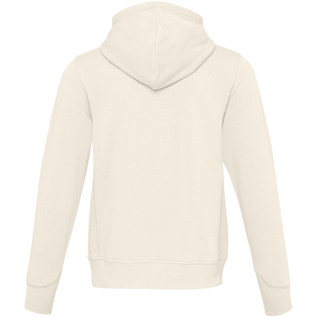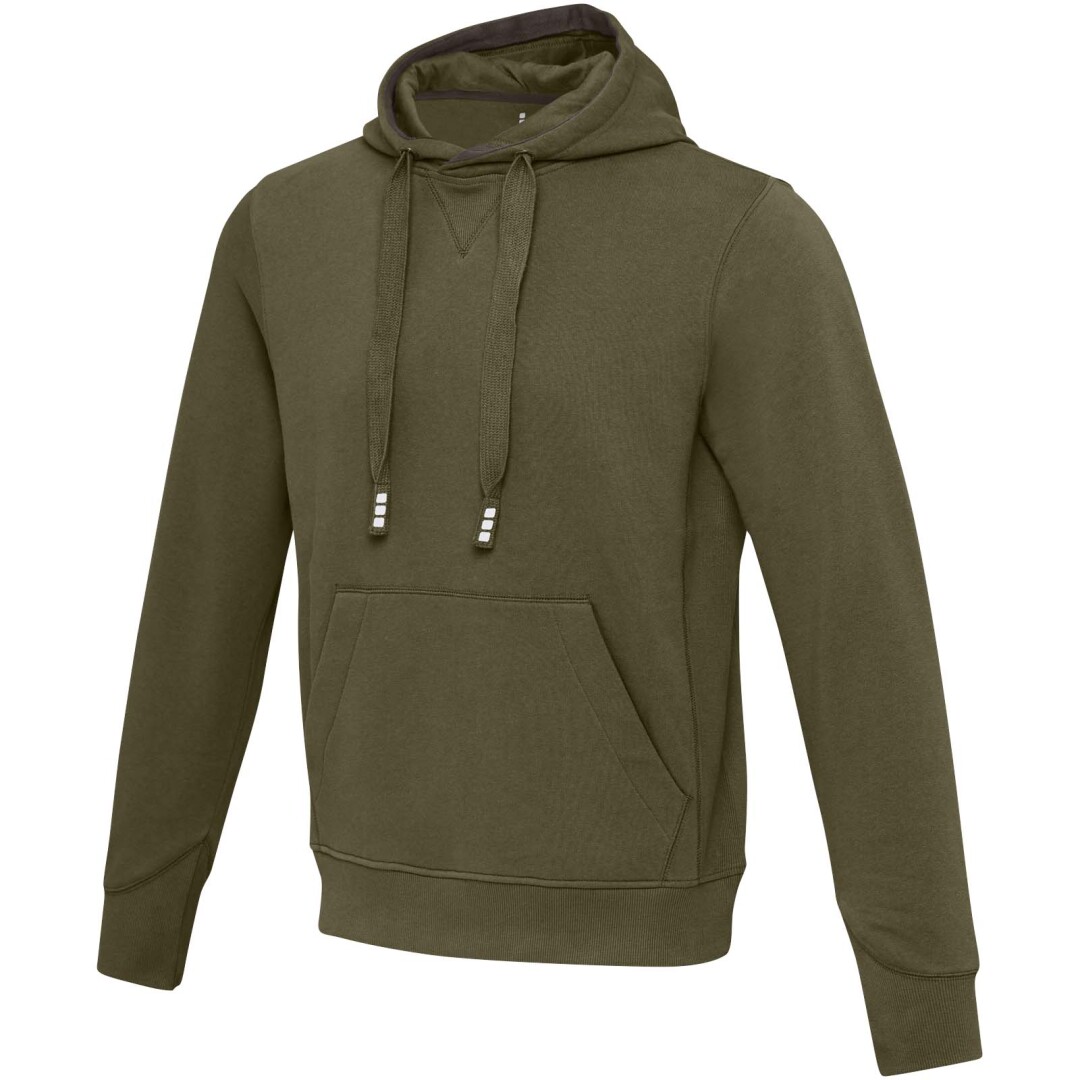 Žebrový úplet bočních panelů Žebrový úplet v-vkládek vpředu na středu. Ploché žebrované manžety ve tvaru V. Žebrový úplet spodního lemu. Stahovací šňůrka v kapuci. Klokaní kapsa. Sedlo. Podšívka z jednolícní pleteniny (žerzej) uvnitř kapuce. Gravírovaná postříbřená očka. Saténová lemovka výstřihu. Páska ve tvaru rybí kosti v kontrastní barvě. Vnitřní kartáčovaná strana zajišťuje měkký, hřejivý a pohodlný pocit.