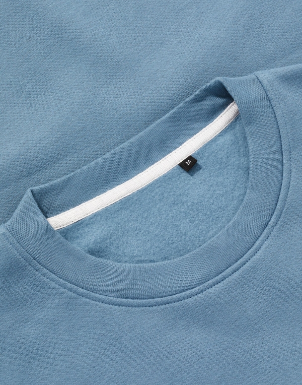 300 g/m², 80% bavlna, prstencová a česaná, 20% polyester (recyklovaný), Light Oxford: 73% bavlna, 20% polyester (recyklovaný), 7% viskóza, vnitřní strana ze 100% bavlny pro lepší potisk a měkčí na dotek, nízkosrážlivá tkanina jemná na dotek, uvnitř česaná s protižmolkovou povrchovou úpravou, na krku kontrastní, zpevňující páska se vzorem rybí kostru (světla Oxford pro Snowwhite, Ash Grey pro ostatní barvy), žebrovaný lem kolem krku, spodní lem a manžety, ploché prošívání na ramenou a spodním lemu pro trendy vzhled, boční švy, vzadu u krku všitý půlměsíc pro účely změny značky, bez štítku (štítek velikosti mimo střed u krku pro změnu značky)