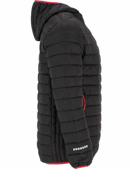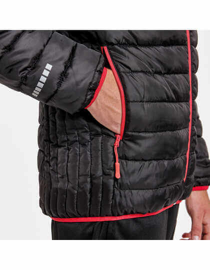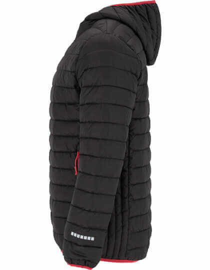 Vnější strana: 100 % polyester, 600 T, vnitřní strana: 100 % polyester, podšívka: 100 % polyester, lehký, 290 g / m² | Zip po celé délce s ochranou brady a stahovákem v kontrastní barvě | Připojená kapuce | Boční kapsy se zipem a stahovákem v kontrastní barvě | Reflexní prvky na rukávech a na zádech | Zboží o 4 cm delší než u modelu NORWAY | Okraj z elastického materiálu na manžetách, lemu a kapuci v kontrastní barvě | Vak na uložení bundy | Odolné vůči větru | Odolné proti dešti