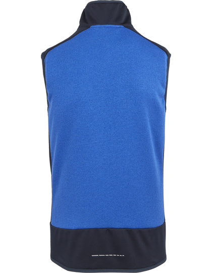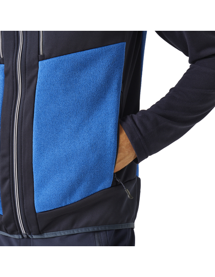 Polyesterová strečová flísová tkanina (235 g/m²) s žíhaným pleteným efektem (250 g/m²). Strečový úplet Extol se zateplenou zadní stranou. Pružné lemování na průramcích, lemu a límci. 2 spodní kapsy na zip a 2 náprsní kapsy na zip s vnitřním chráničem zipu. Reflexní natištěný detail. Na hrudi místo na dekoraci. Vyrobeno z recyklovaných materiálů.