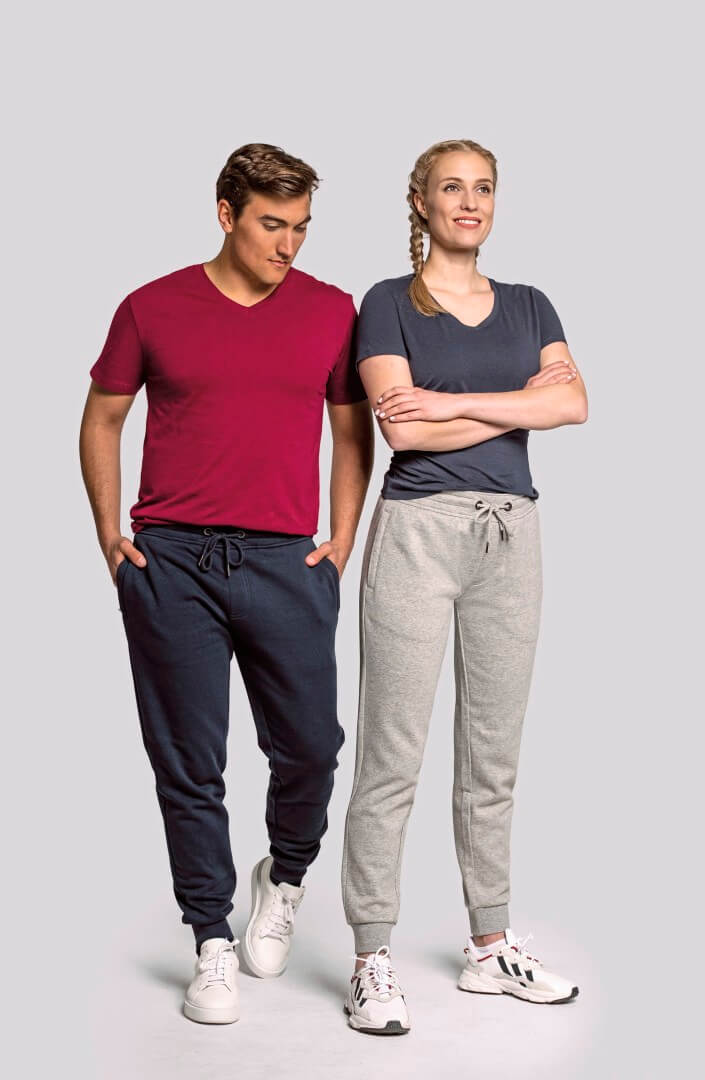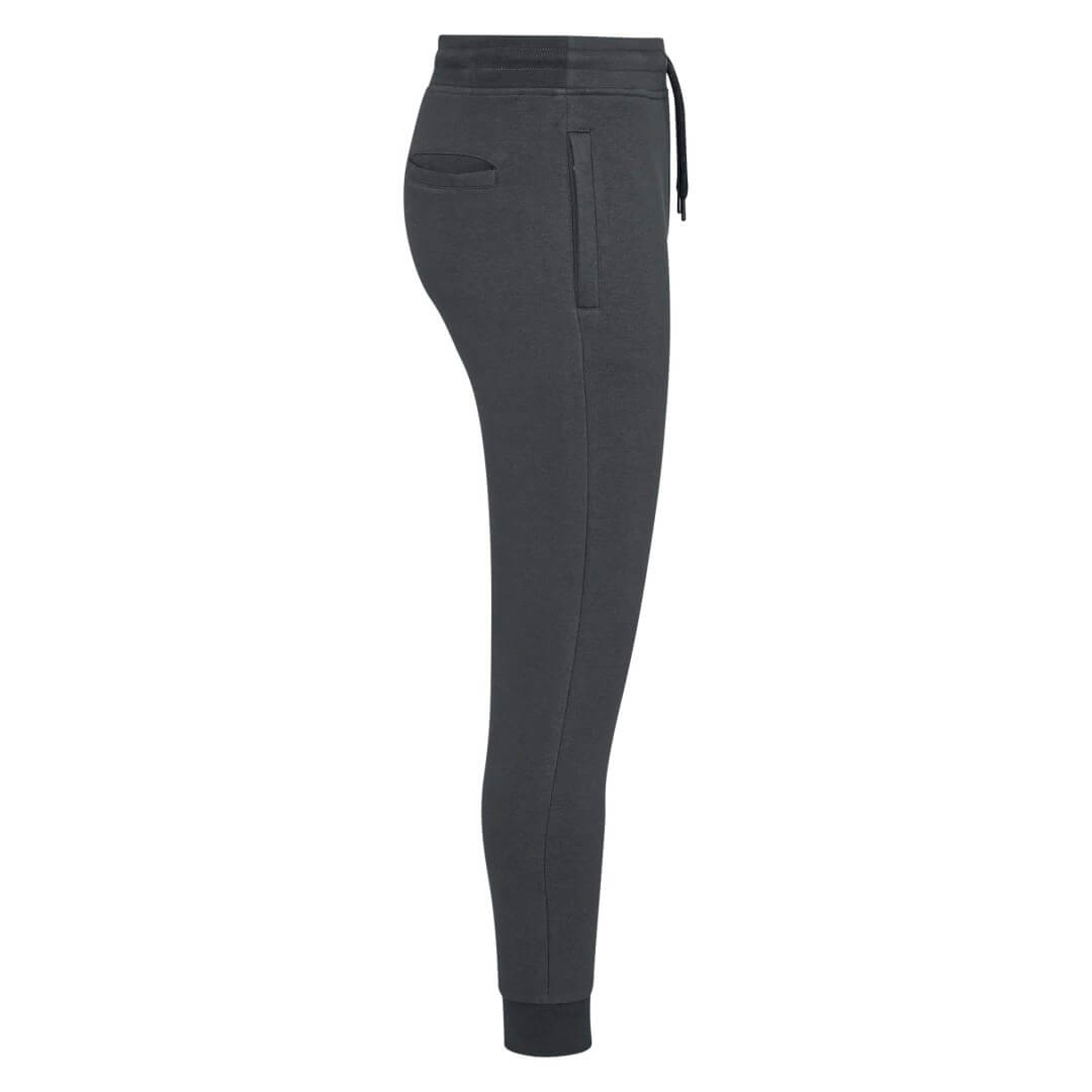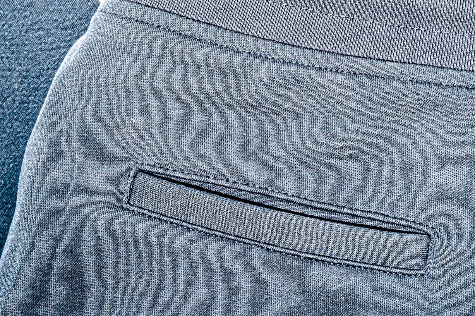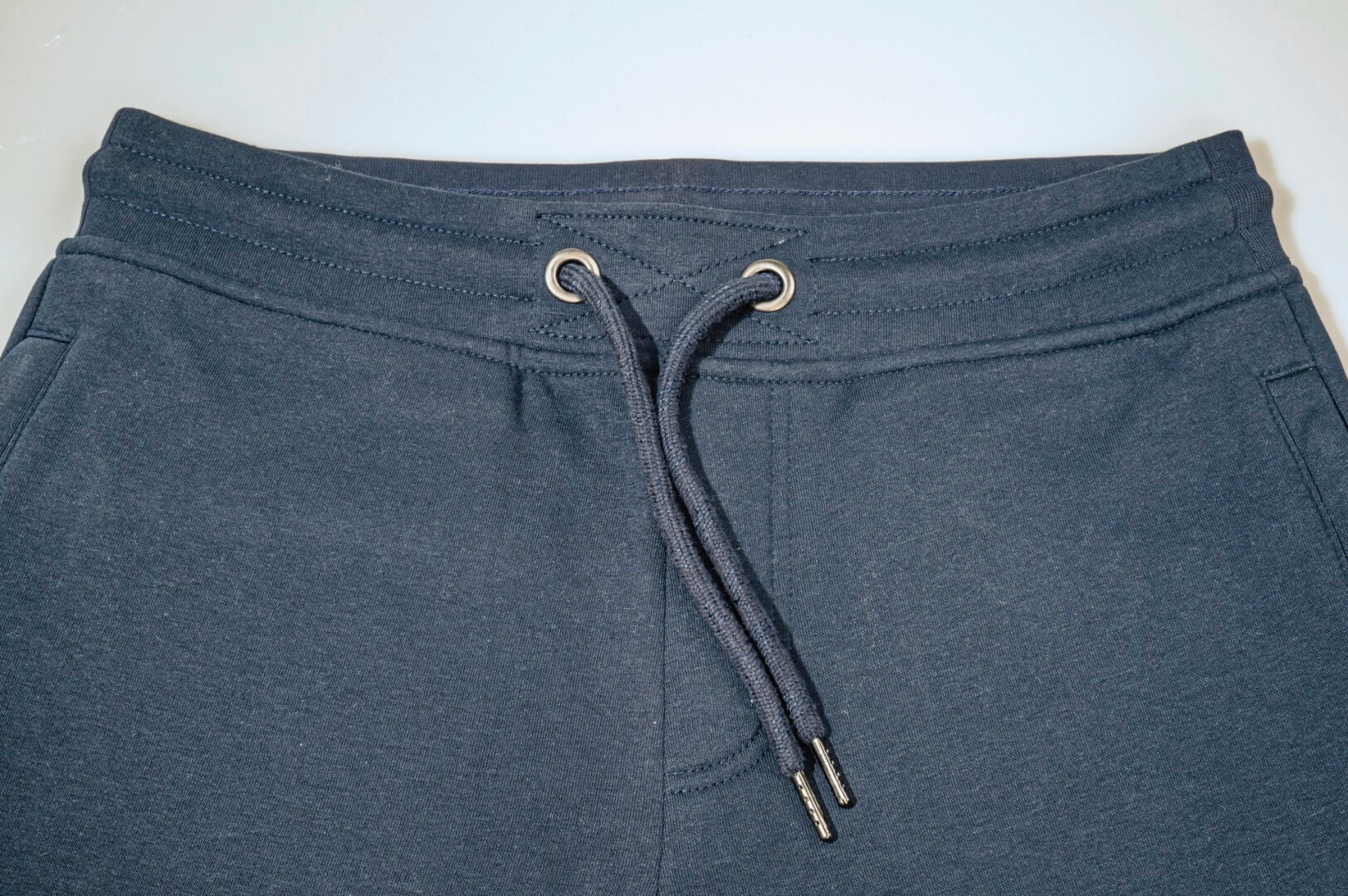 Česaná kruhově dopřádaná bavlna / recyklovaný polyester (česaná vnitřní strana) | Měkká směsová tkanina | Ochrana proti žmolkování a sražení, stálobarevné | Moderní střih | S vysoce kvalitními lemy, okraji kapes a okraji kotníků z 1x1 žebrovaného úpletu | Dvě boční kapsy na zip a jedna zadní kapsa vpravo | Vysoce kvalitní pas s plochým švem, falešný zip vepředu | Dvě velká kovová očka v retro stylu | Splétané kulaté šňůrky | Bez štítků