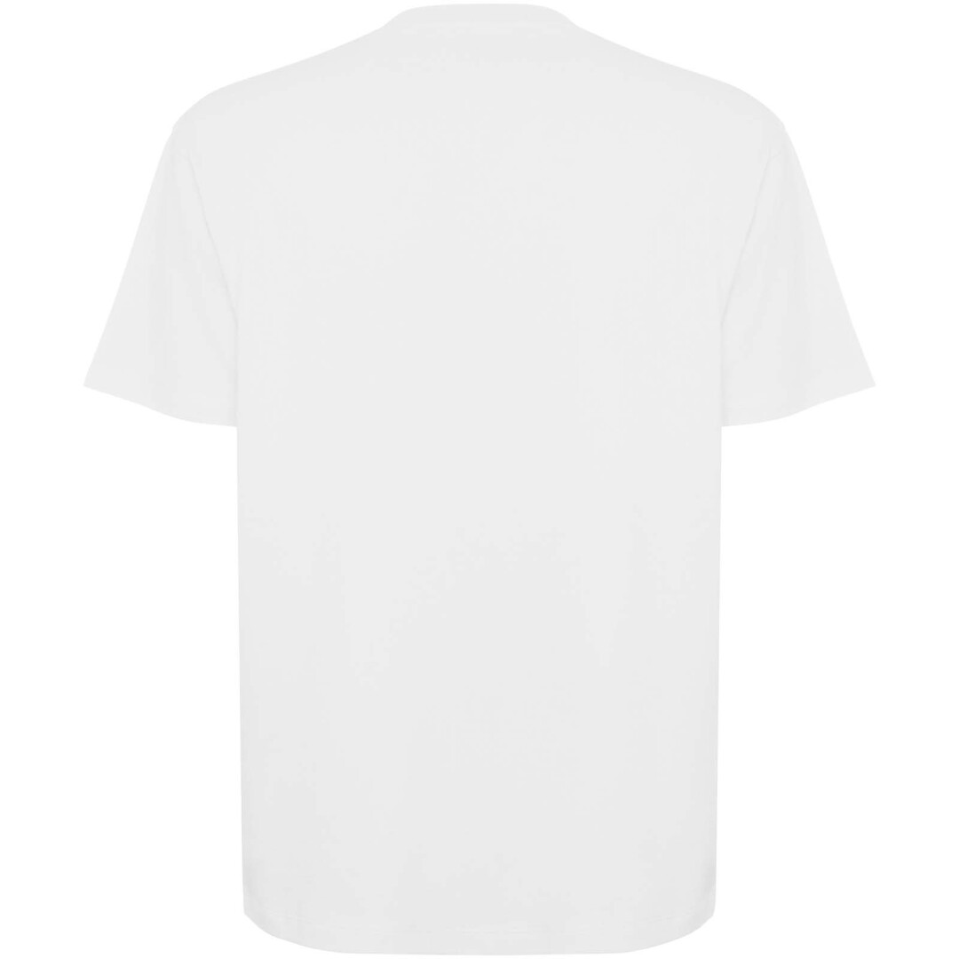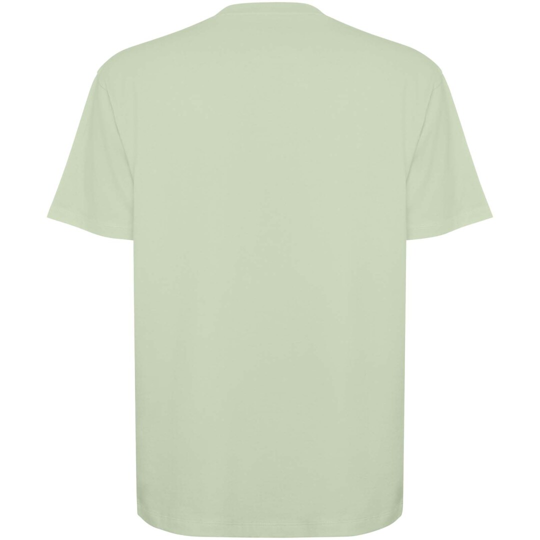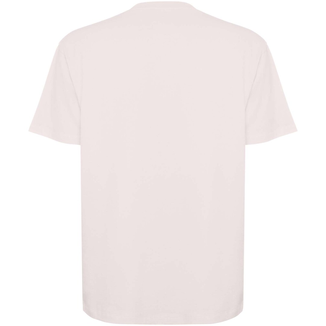 Tričko s krátkým rukávem v nadměrné velikosti. Kulatý límec zdobený 2×1 žebrovým úpletem se sladěnými kryty švů. Boční švy. Široké dvojité prošívání na rukávech a lemu. Odnímatelný štítek.