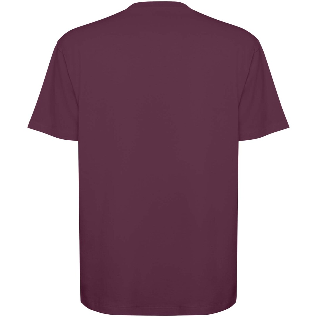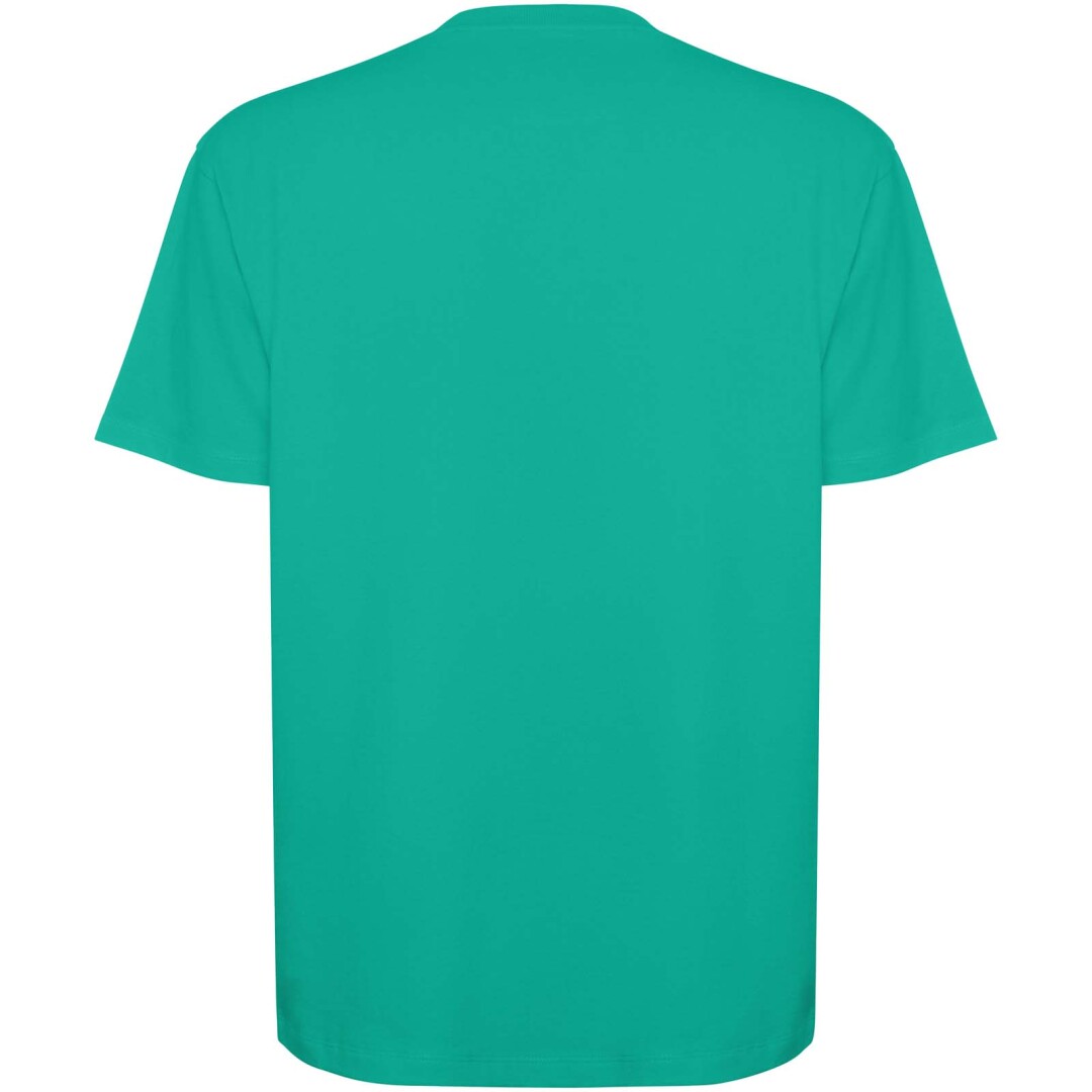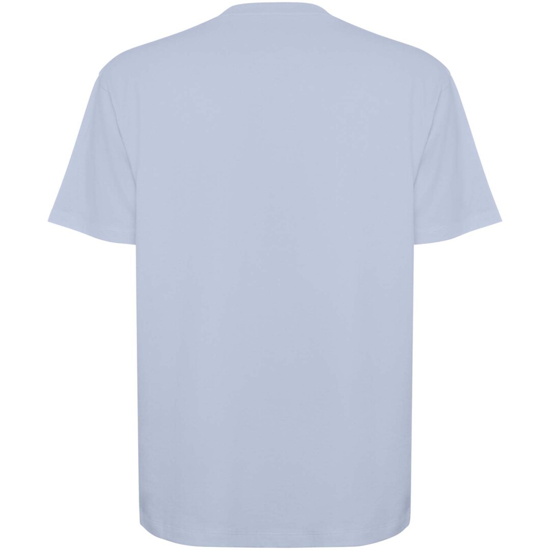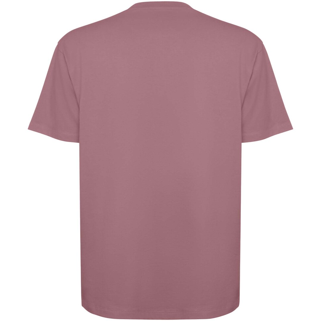 Tričko s krátkým rukávem v nadměrné velikosti. Kulatý límec zdobený 2×1 žebrovým úpletem se sladěnými kryty švů. Boční švy. Široké dvojité prošívání na rukávech a lemu. Odnímatelný štítek.