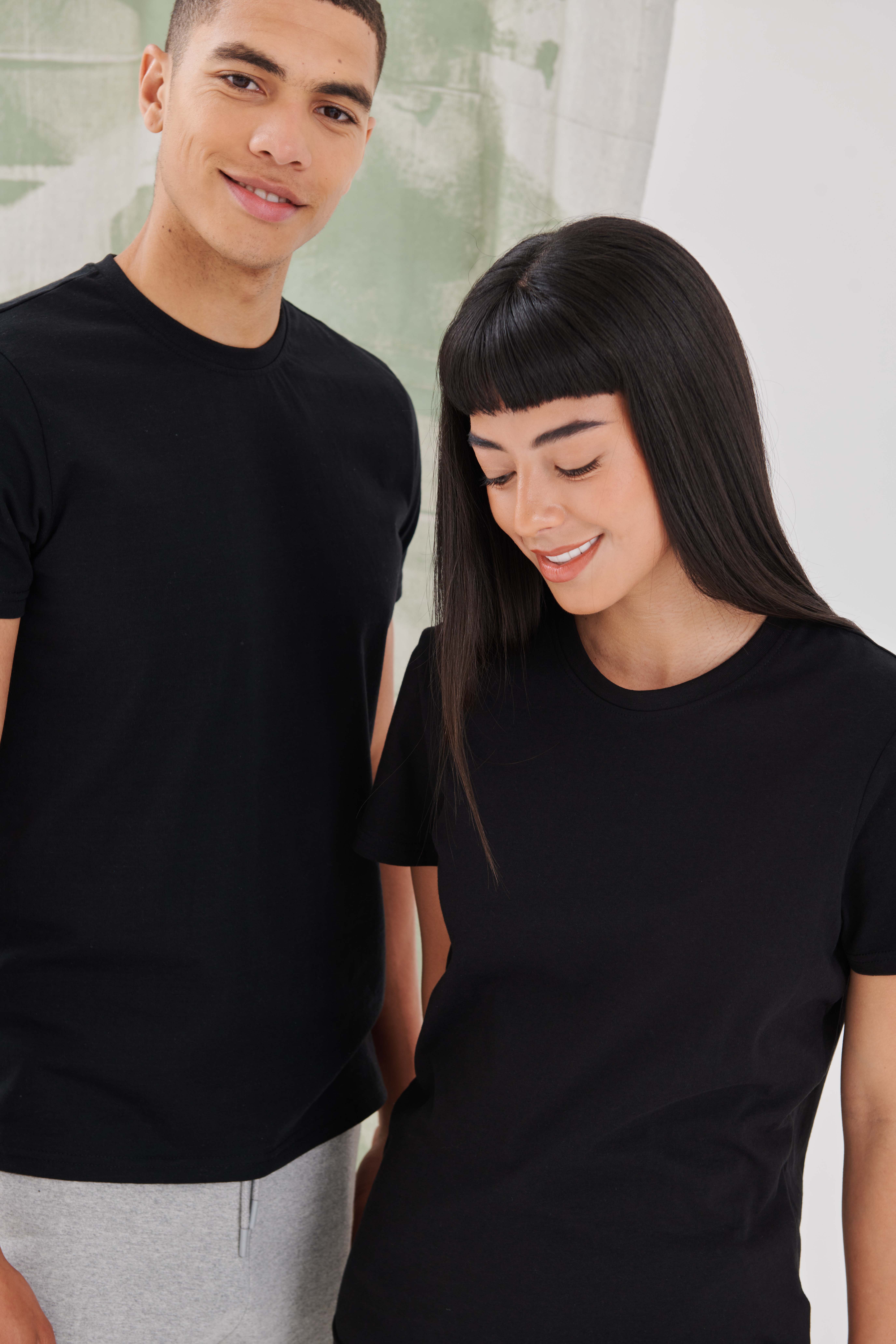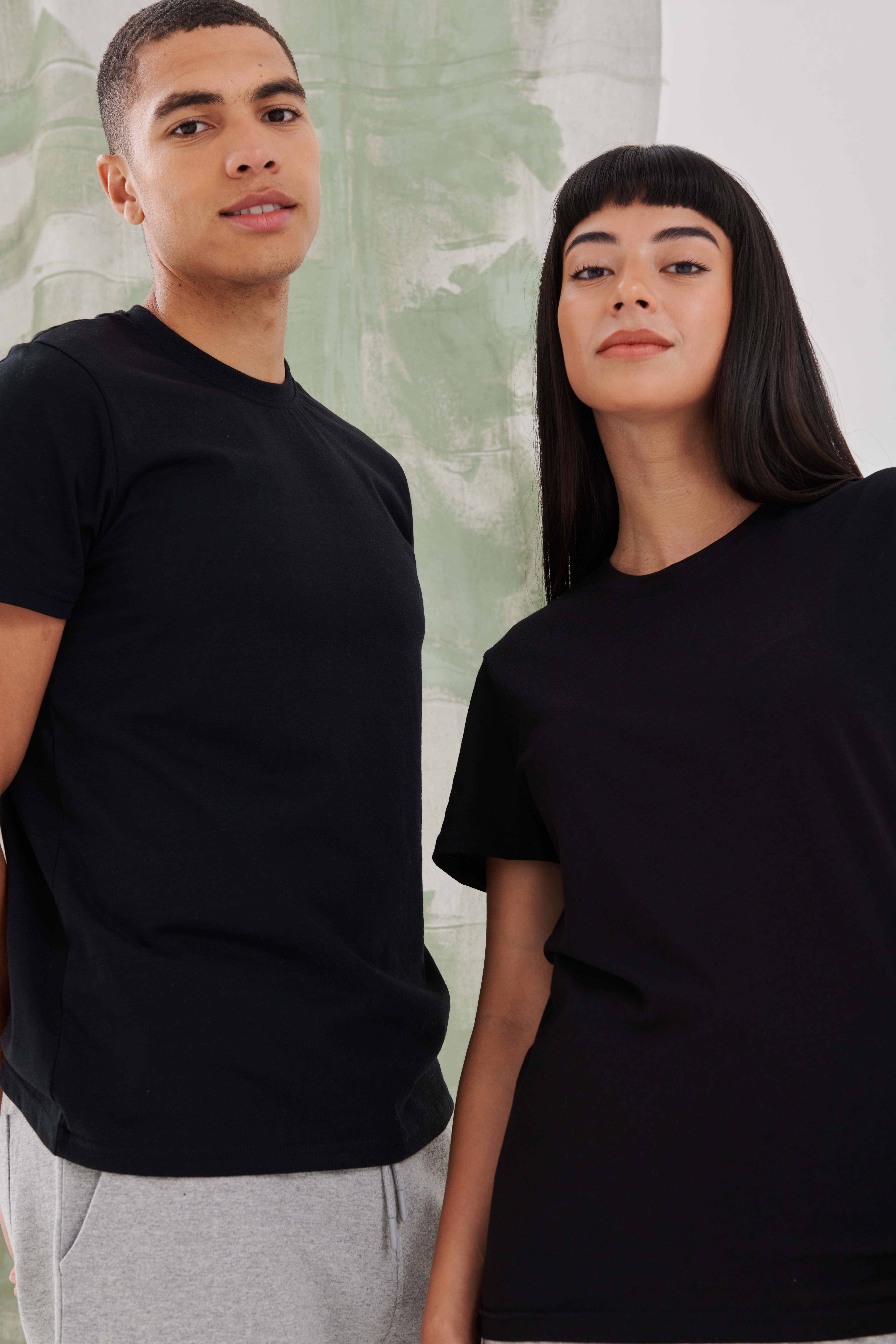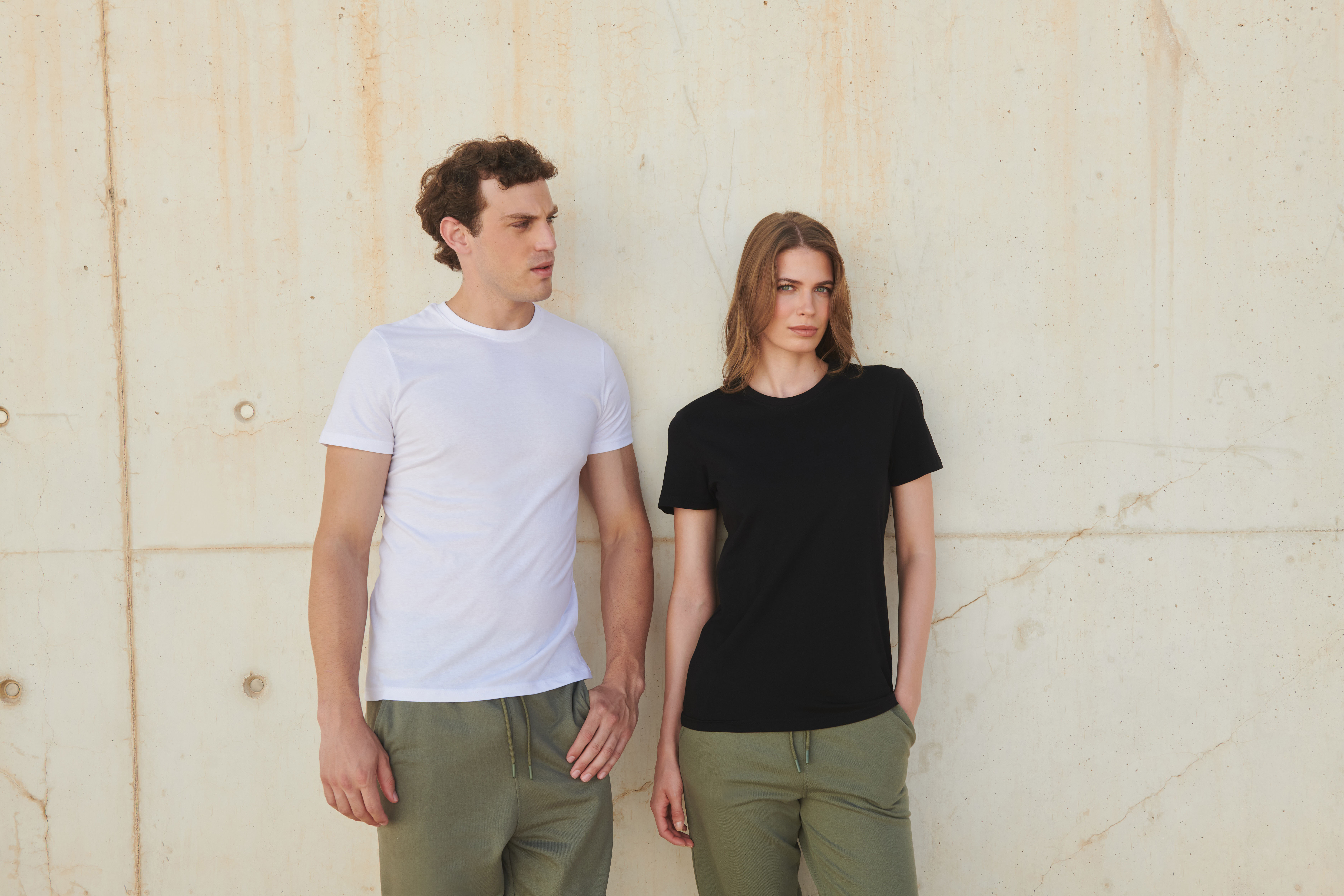 Unisex tričko volného střihu | Organická bavlna | Jednoduchý žerzej | Vsazené rukávy | Žebrovaný výstřih ke krku | Dvojité prošití na lemu a rukávech | Bez štítku | Recyklovatelné tašky s možností opětovného uzavření – vyrobeno ze 100 % recyklovaného plastu