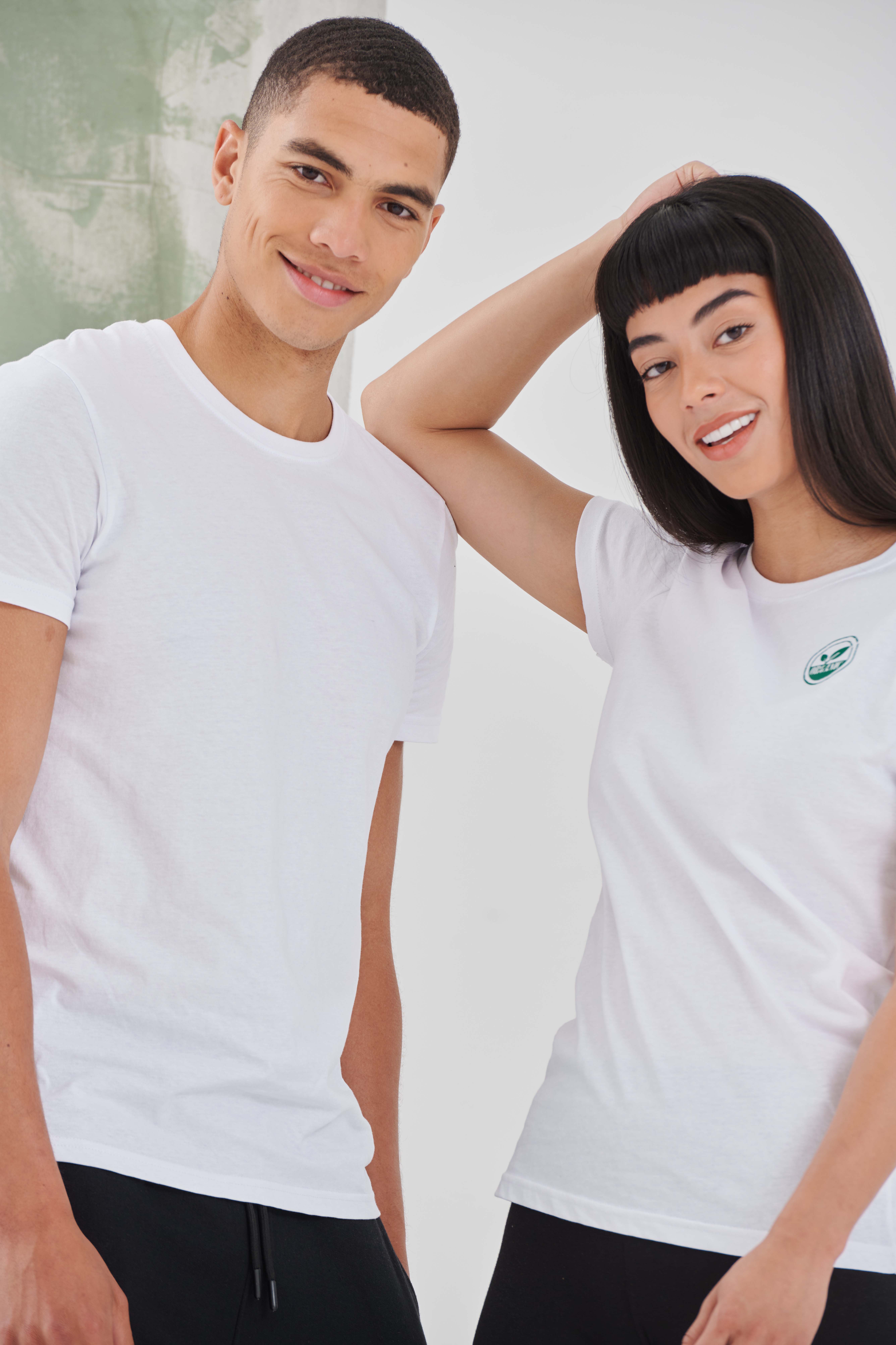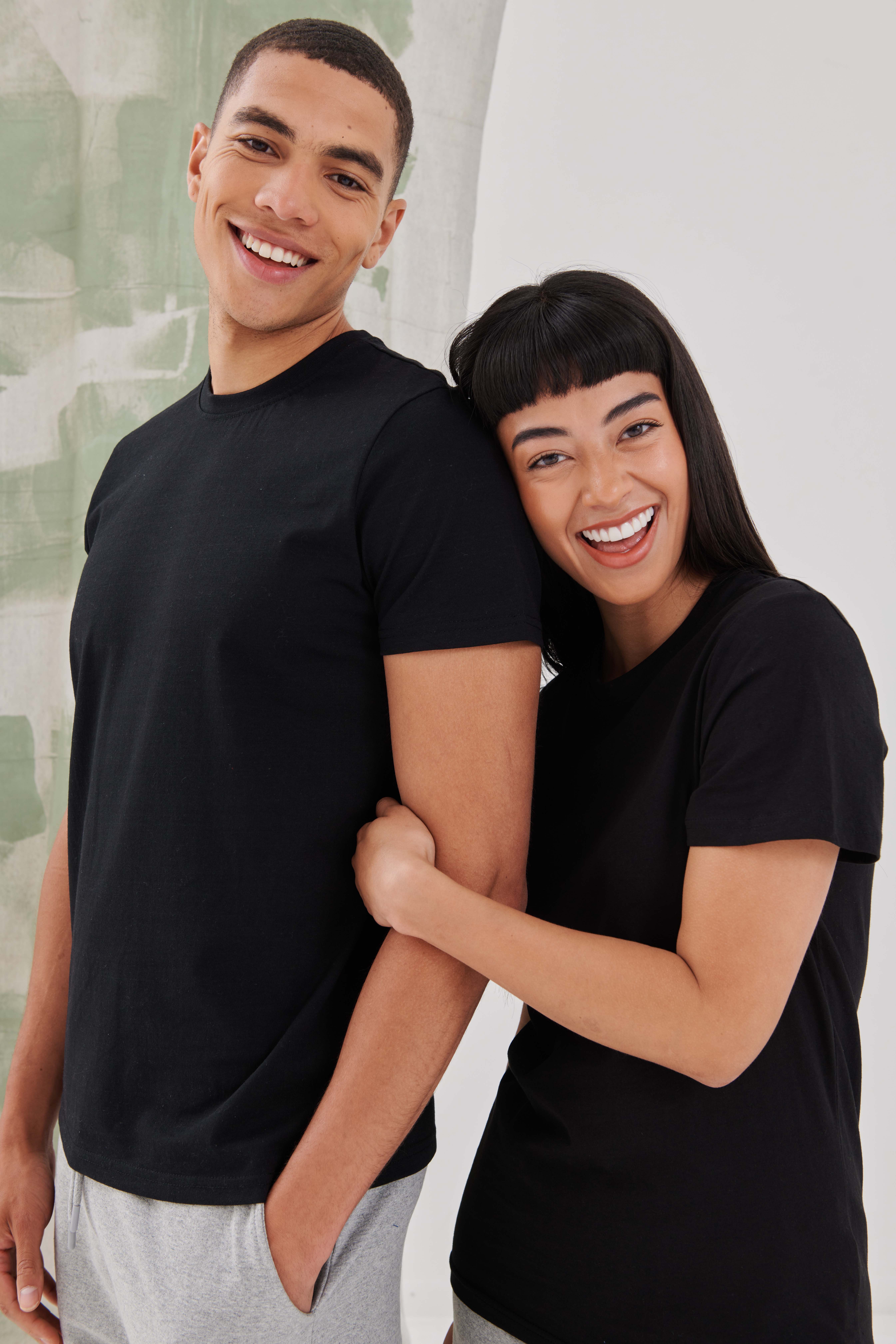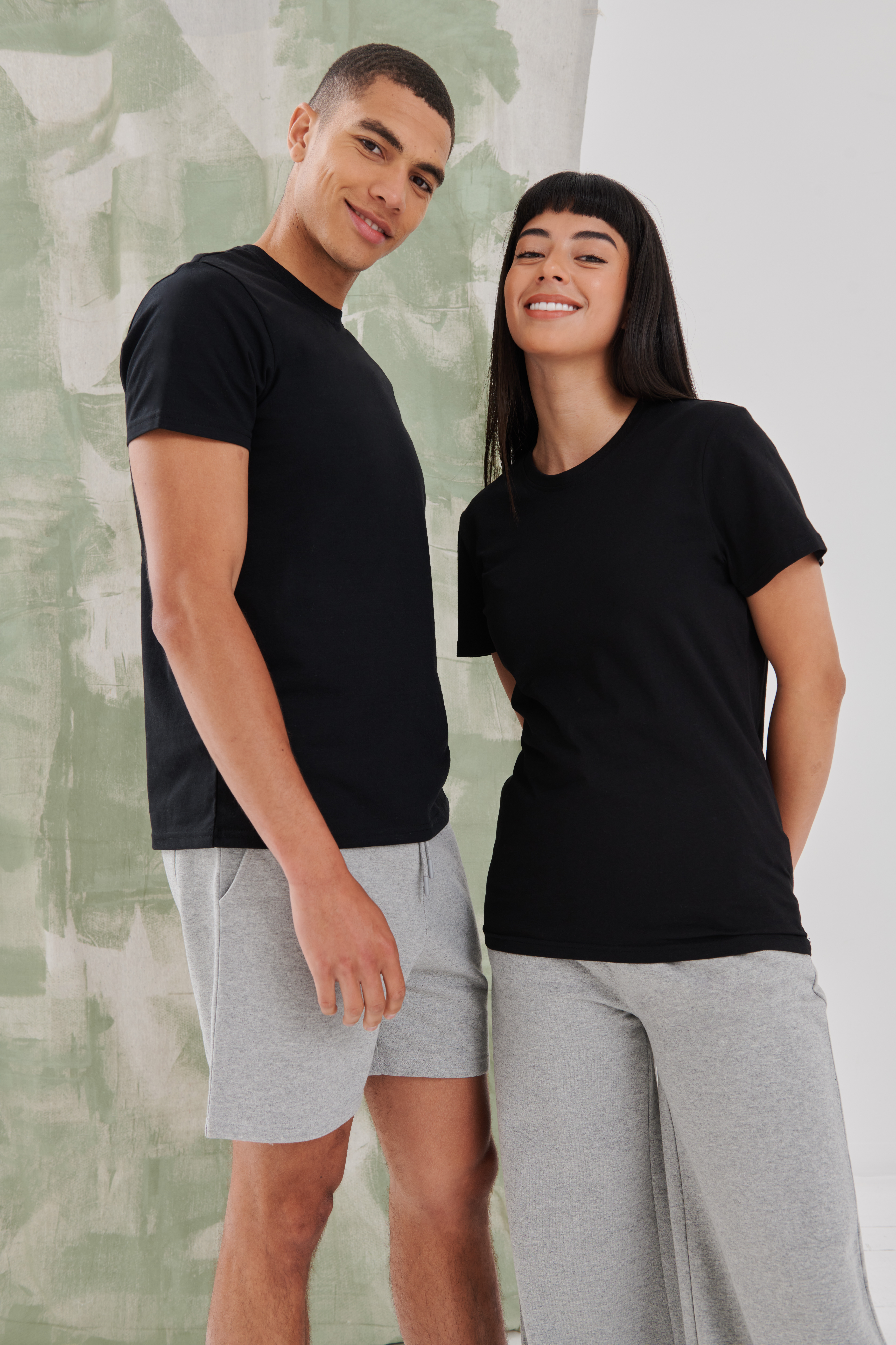 Unisex tričko volného střihu | Organická bavlna | Jednoduchý žerzej | Vsazené rukávy | Žebrovaný výstřih ke krku | Dvojité prošití na lemu a rukávech | Bez štítku | Recyklovatelné tašky s možností opětovného uzavření – vyrobeno ze 100 % recyklovaného plastu