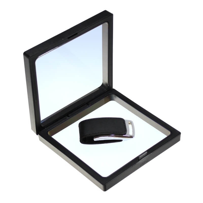 Nový univerzální způsob balení téměř pro všechny modely USB flash disků a mnoho dalších drobných předmětů. Skvělý čistý design! Elastická fólie těsně obepne vložený produkt, zvýrazní jeho tvary a dodá lesk hranám i plochám. Plastový rámeček lze rovněž potisknout firemním logem. Fólie v rámečku se po vyjmutí produktu vrátí do původního stavu, a proto lze předpokládat opakované používání našeho boxu i pro další předměty.