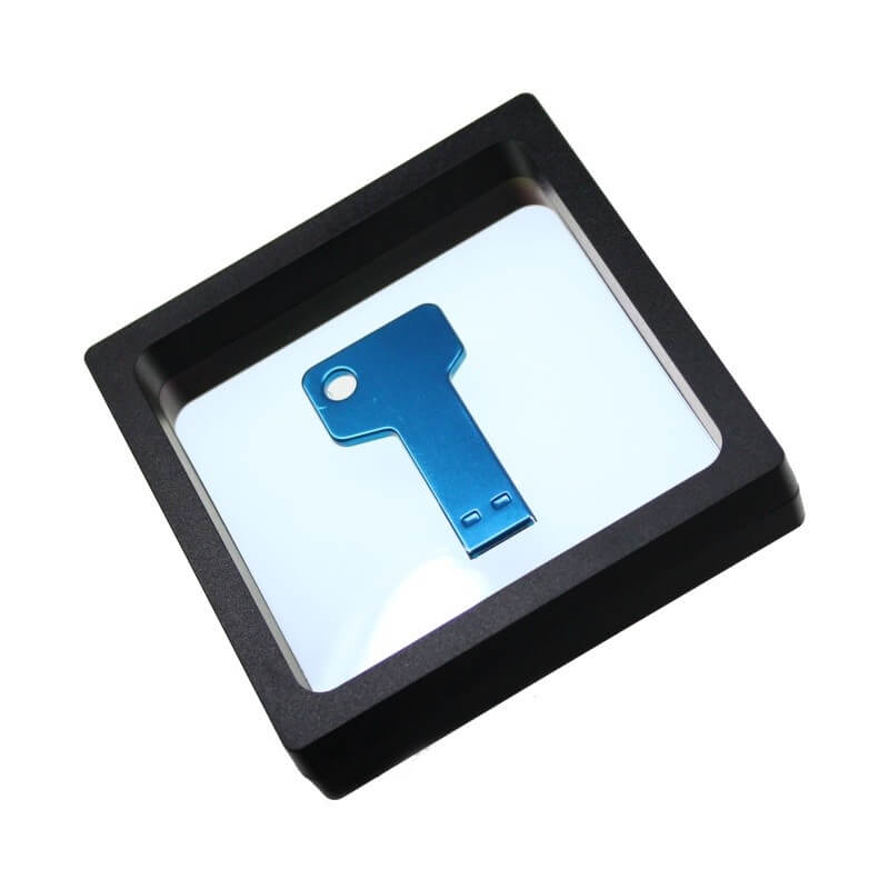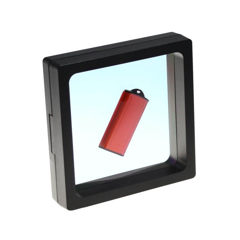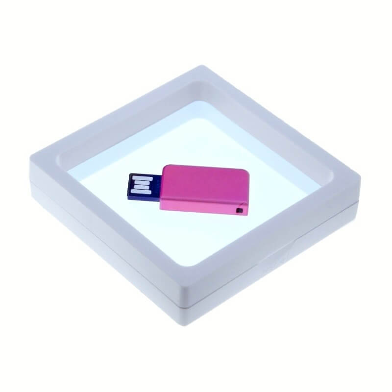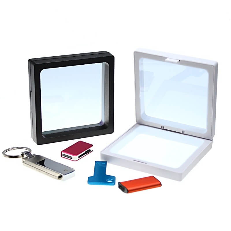 Nový univerzální způsob balení téměř pro všechny modely USB flash disků a mnoho dalších drobných předmětů. Skvělý čistý design! Elastická fólie těsně obepne vložený produkt, zvýrazní jeho tvary a dodá lesk hranám i plochám. Plastový rámeček lze rovněž potisknout firemním logem. Fólie v rámečku se po vyjmutí produktu vrátí do původního stavu, a proto lze předpokládat opakované používání našeho boxu i pro další předměty.