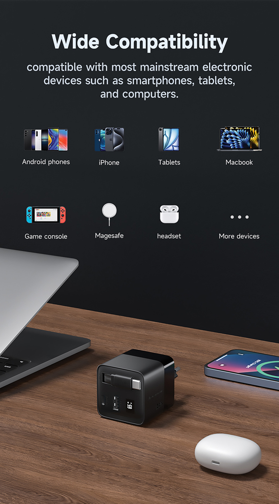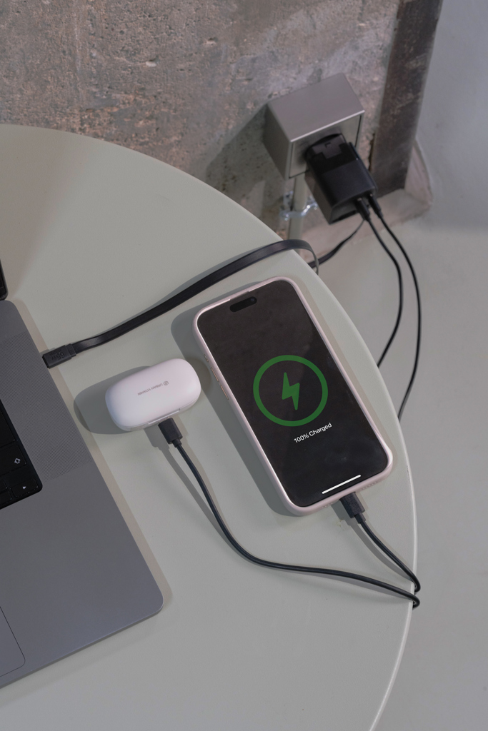 Seznamte se s nejinteligentnější 65W nabíječkou s kabelem, kterou máte vždy po ruce. Mendocino je 65W PD GaN nabíječka se zabudovaným 80 cm navíjecím USB-C kabelem, takže můžete nabíjet, aniž byste museli sahat po samostatném kabelu. Obsahuje také vyměnitelné zástrčky pro EU a Spojené království, což z ní činí ideálního společníka na cesty. GaN je nabíjecí technologie nové generace, která umožňuje kompaktnější rozměry, méně tepla a vyšší energetickou účinnost. Mendocino nabíjí všechna vaše zařízení plnou rychlostí včetně laptopů, tabletů a telefonů – a díky dalším USB-C a USB-A portům dokáže nabíjet až tři zařízení najednou. Vyrobeno z recyklovaného, ohnivzdorného PC plastu s certifikací RCS. Celkový podíl recyklovaného materiálu: 18 % na základě celkové hmotnosti produktu. Produkty Urban Vitamin neobsahují PVC a jsou baleny v obalech se sníženým obsahem plastu.