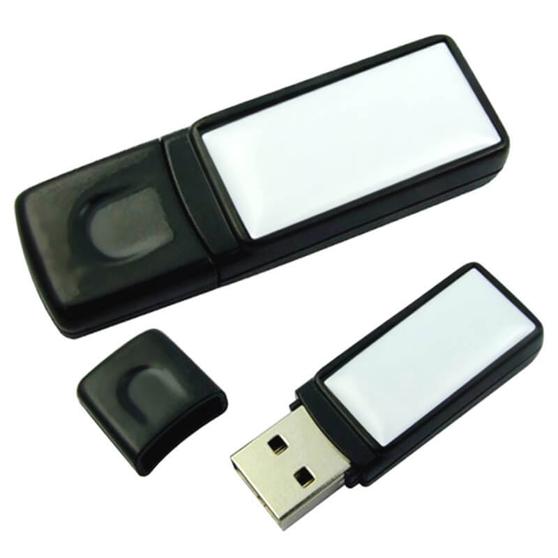 Plastový USB flash disk s logoprintem. Logoprint dodá vašemu logu 3D efekt. Možnost plnobarevného loga. Můžeme připojit kroužek, šňůrku, nebo karabinku.