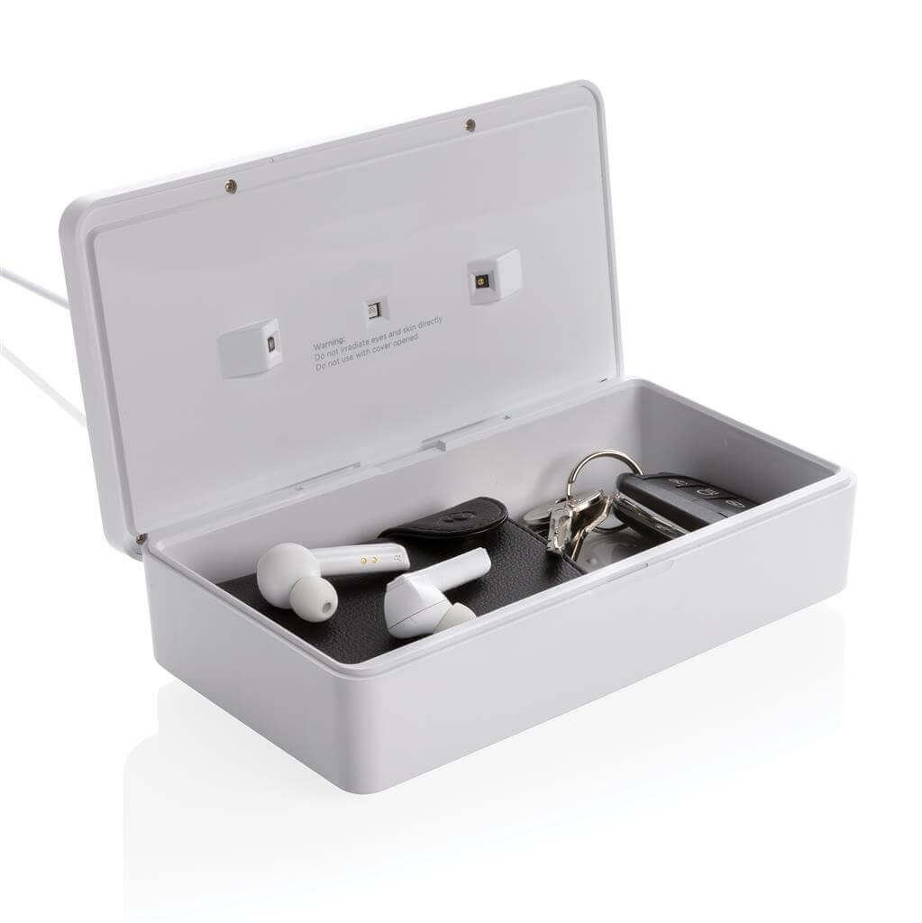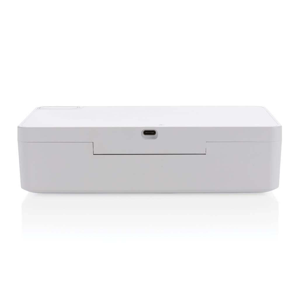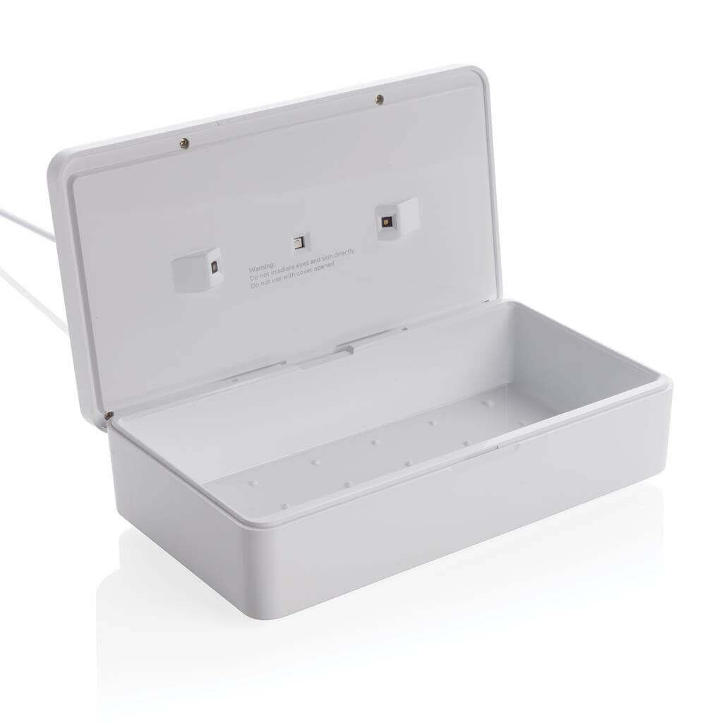 Multifunkční UV-C sterilizátor, který zabíjí až 99,9 % bakterií na vloženém předmětu. Vhodné například na telefon, sluchátka, hodinky, šperky nebo roušku. Volit lze mezi režimy rychlého čištění (90s) nebo kompletního čištění (5min). 2 UV-C LED světla, vyrobená z netoxického materiálu bez použití rtuti (mnoho dostupných variant na trhu rtuť obsahují). Navrženo tak, aby se při otevření boxu UV-C světlo automaticky zhaslo a uživatel tak nebyl vystaven jeho záření. Světlo má životnost 10 000 hodin. . Včetně 1m USB C kabelu z TPE (PVC free). Vstup: 5V/1.5A.