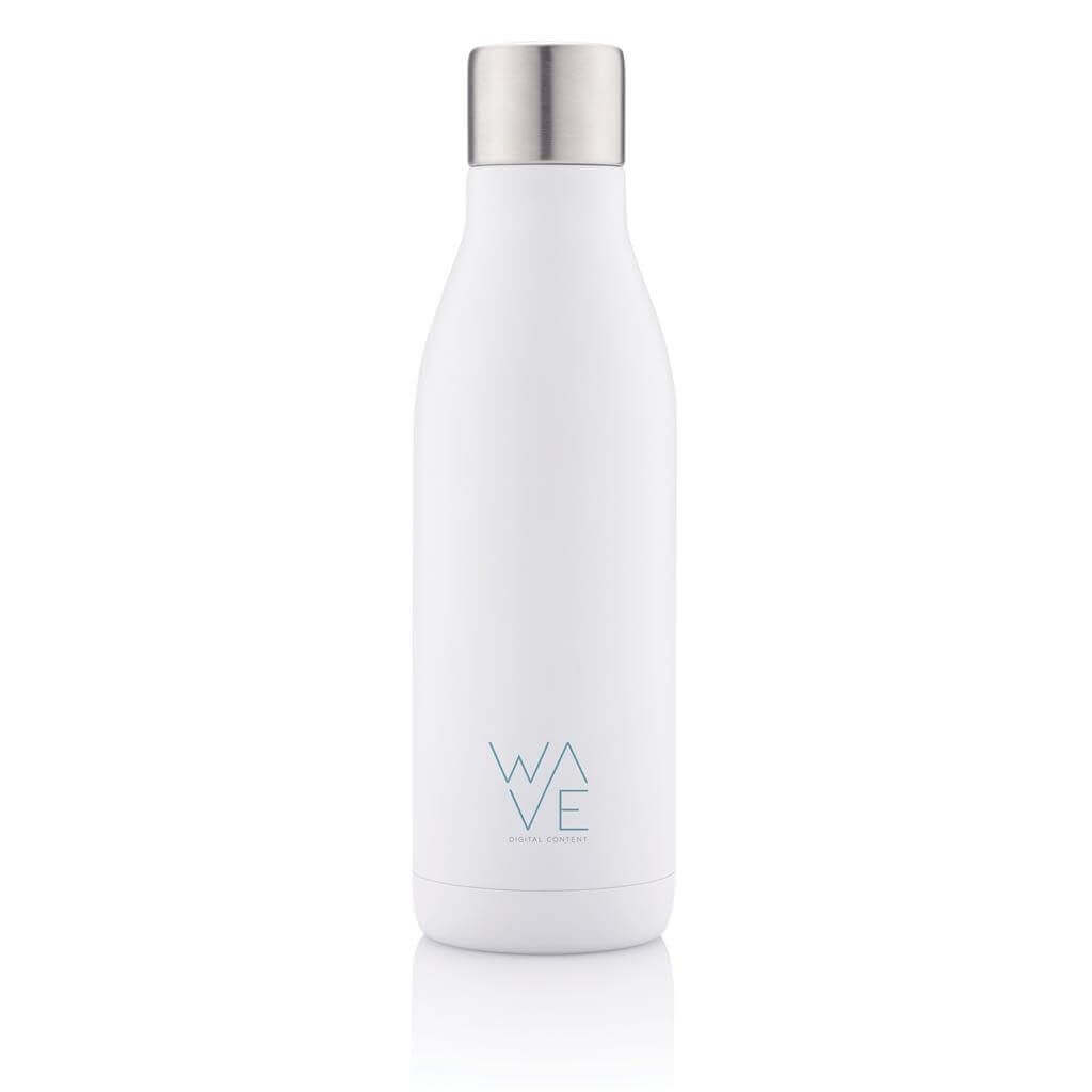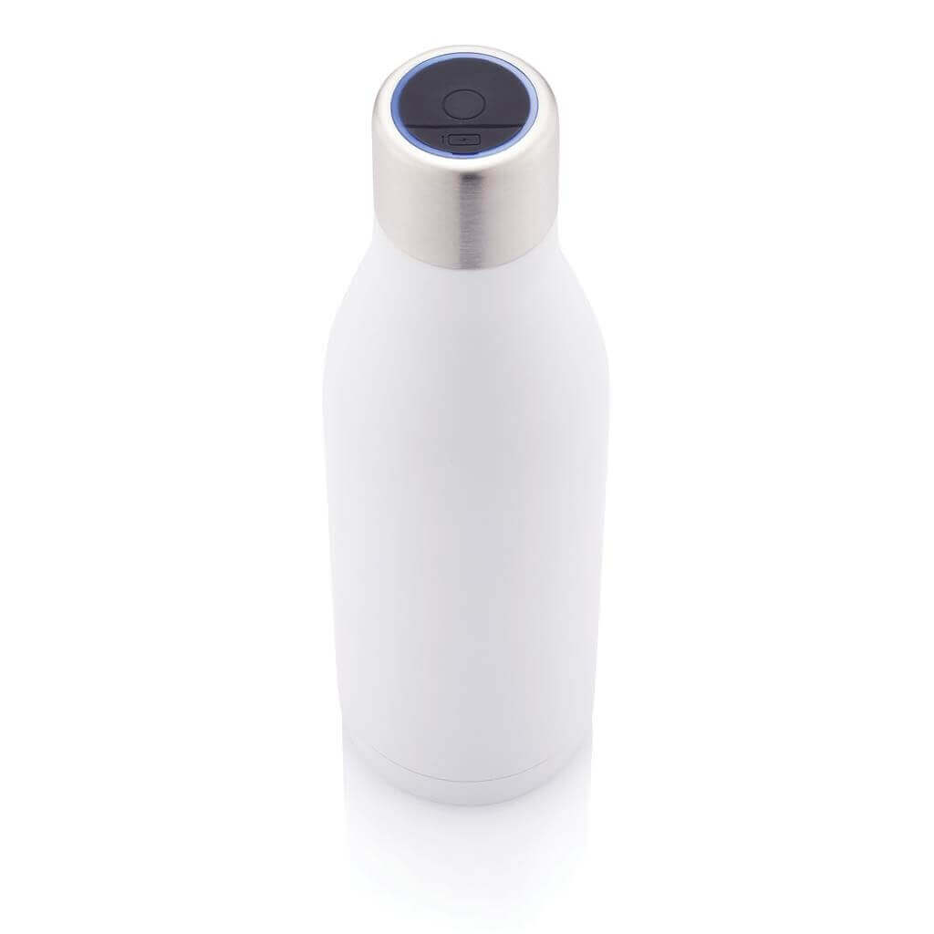 Termo láhev využívající inteligentní UV-C LED technologii, která při aktivaci do 5 minut hubí bakterie zapříčiňující nepříjemný odér a viry, a tím udržuje láhev čistou. Moderní a stylový design. Vyrobeno z nerezavějící oceli s použitím dvojité stěny, která nápoje uchová horké až 5h a studené až 15h. Opakovaně USB dobíjitelná Li-poly baterie s kapacitou 180 mAh umožňuje až 14 sterilizačních cyklů na jedno nabití. Objem 500ml. Bez BPA.
