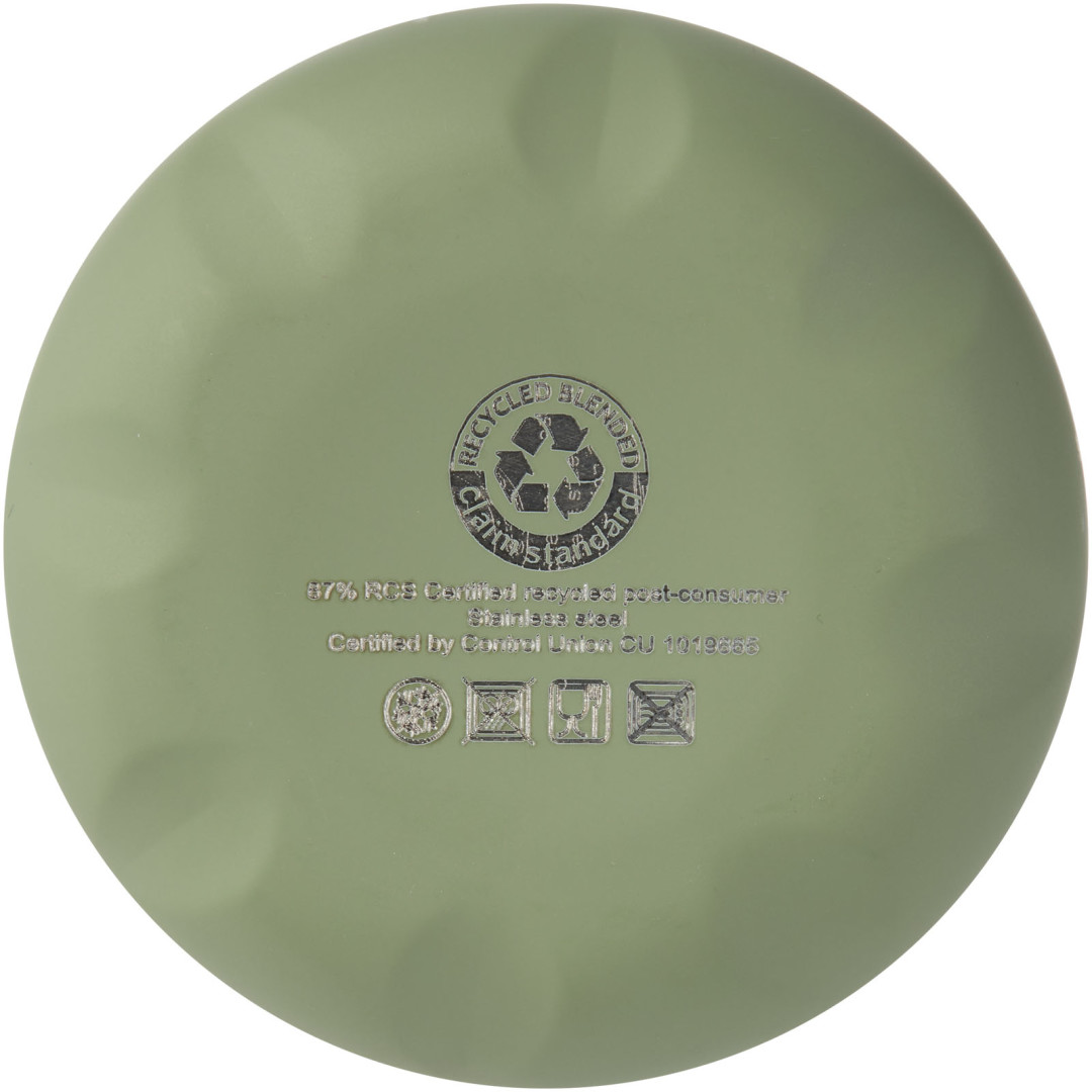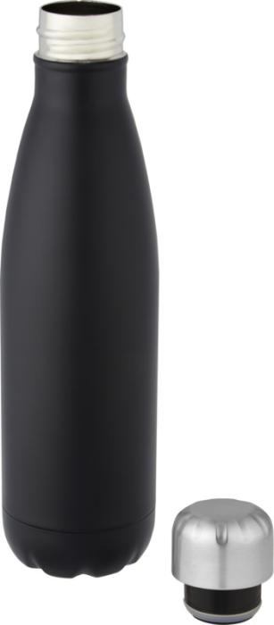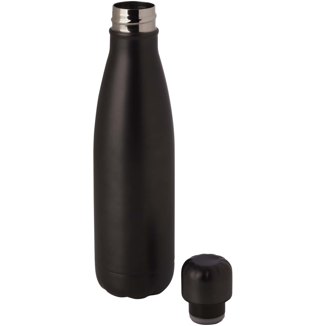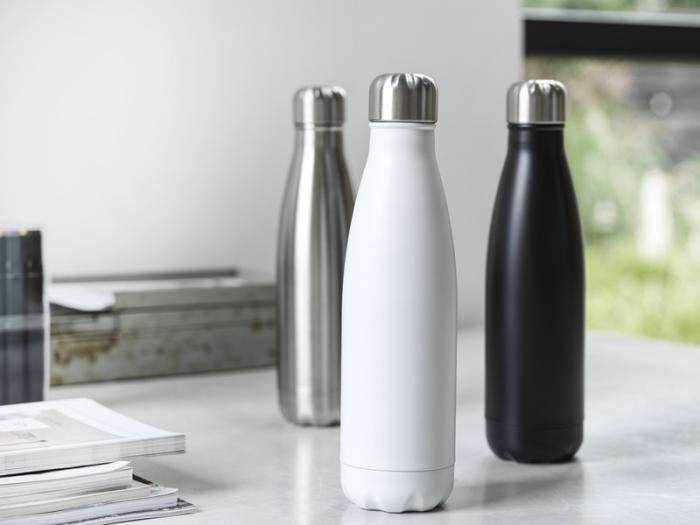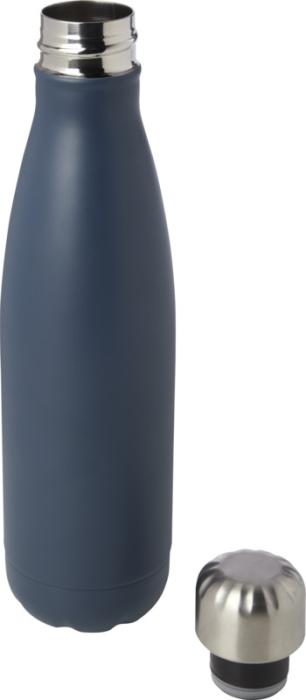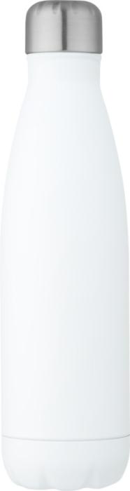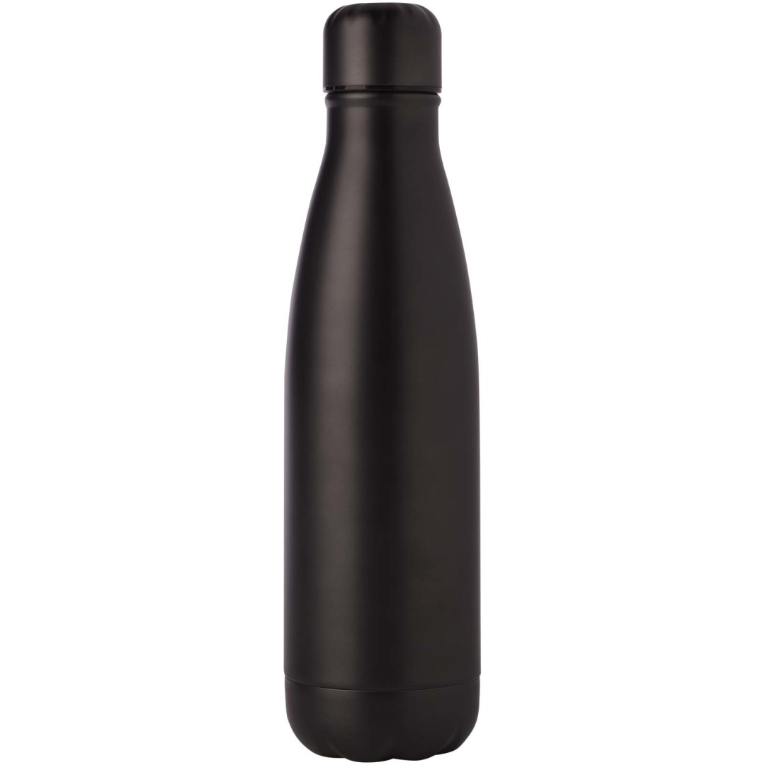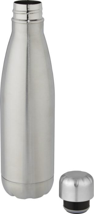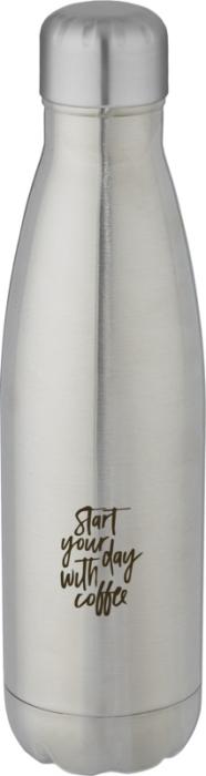 Vakuově izolovaná láhev z recyklované nerezové oceli s certifikací RCS s ikonickým designem, která udrží nápoje horké nebo studené po několik hodin. Díky základně, která se vejde do většiny držáků nápojů, je tato elegantní láhev na vodu perfektním reklamním předmětem. Testováno a schváleno podle německé legislativy pro bezpečnost potravin (LFGB), testováno na obsah ftalátů podle předpisů REACH. Objem je 500 ml. Dodává se v dárkové krabičce z recyklované lepenky.