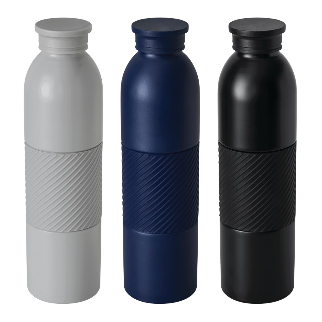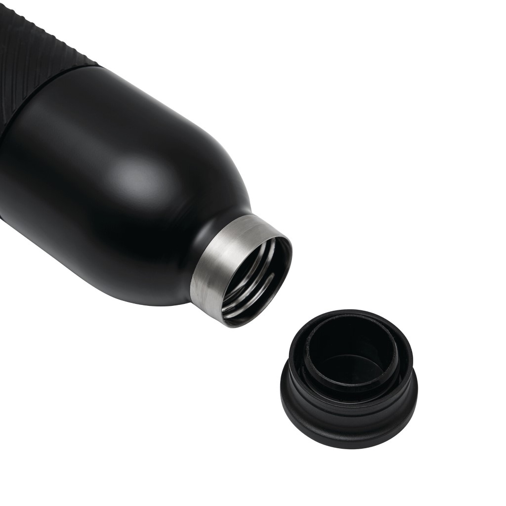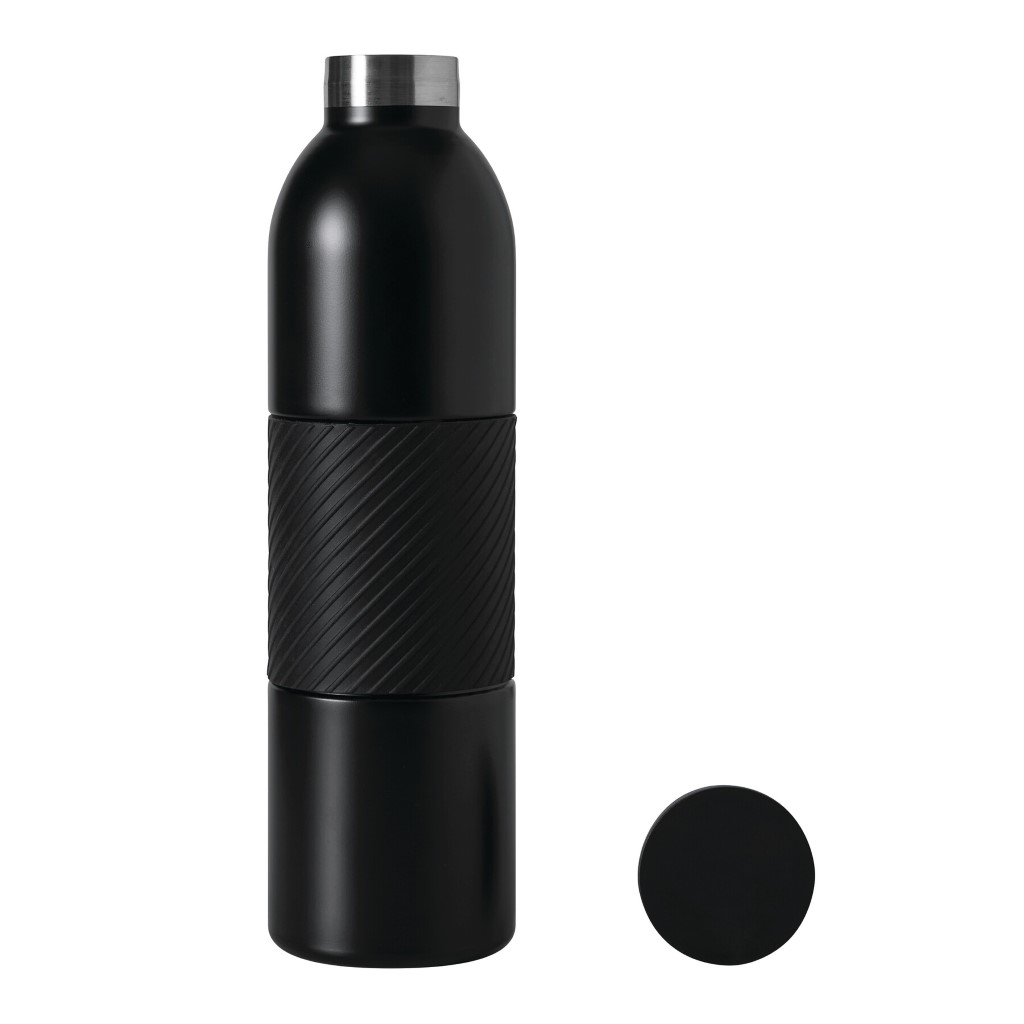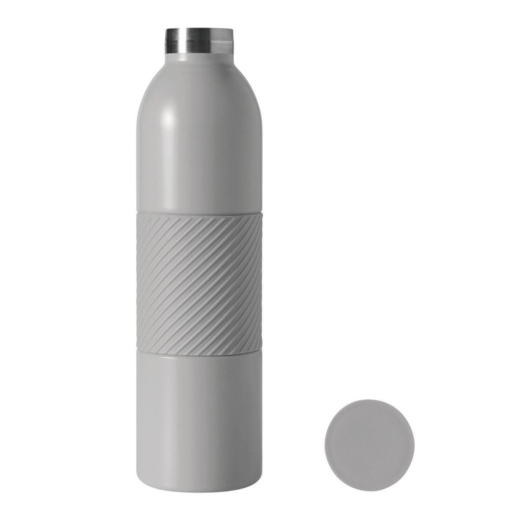 Vakuově izolovaná láhev VACUGRIP, dvoustěnná: uvnitř i vně z nerezové oceli, barevně sladěné plastové víčko s bezpečným šroubovacím uzávěrem a silikonovým pouzdrem pro optimální úchop, objem cca 600 ml, udrží teplo cca 8 hodin a studenou až 12 hodin.