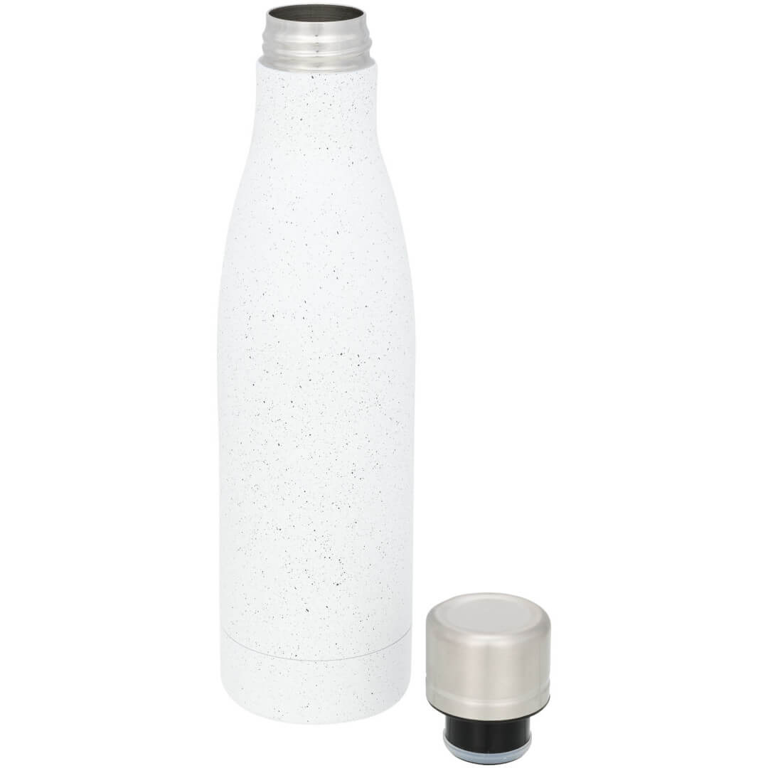 Vasa tečkovaná měděná vakuová izolační láhev. Udržte Vaše nápoje horké po 12 hodin, nebo studené po 48 hodin s Vasa tečkovanou termoskou s měděnou vakuovou izolací. Dvojstěnná láhev vyrobená z nerezavějící oceli třídy 18/8 s vakuovou izolací a měděnými vnitřními stěnami zaručí, že váš nápoj zůstane horký nebo ledově studený podle vašich potřeb. Láhev má trendy tečkovaný povrch. Objem je 500 ml. Prezentováno v dárkové krabici Avenue. Z nerezové oceli.
