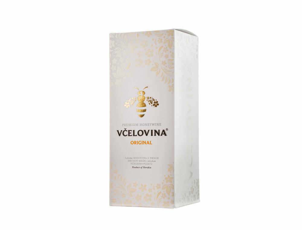 Exkluzivní balení medoviny Včelovina Original v bílé keramické láhvi s prémiovou krabičkou. Medovina je vyrobena podle tradiční receptury z nejkvalitnějších slovenských medů. Jemná chuť a jedinečná vůně jsou výsledkem prokvašených druhů medu a bylin, které tvoří tuto lahodnou medovinu. Alk. 13 % obj. Objem: 500 ml. Hmotnost: 1 300 g