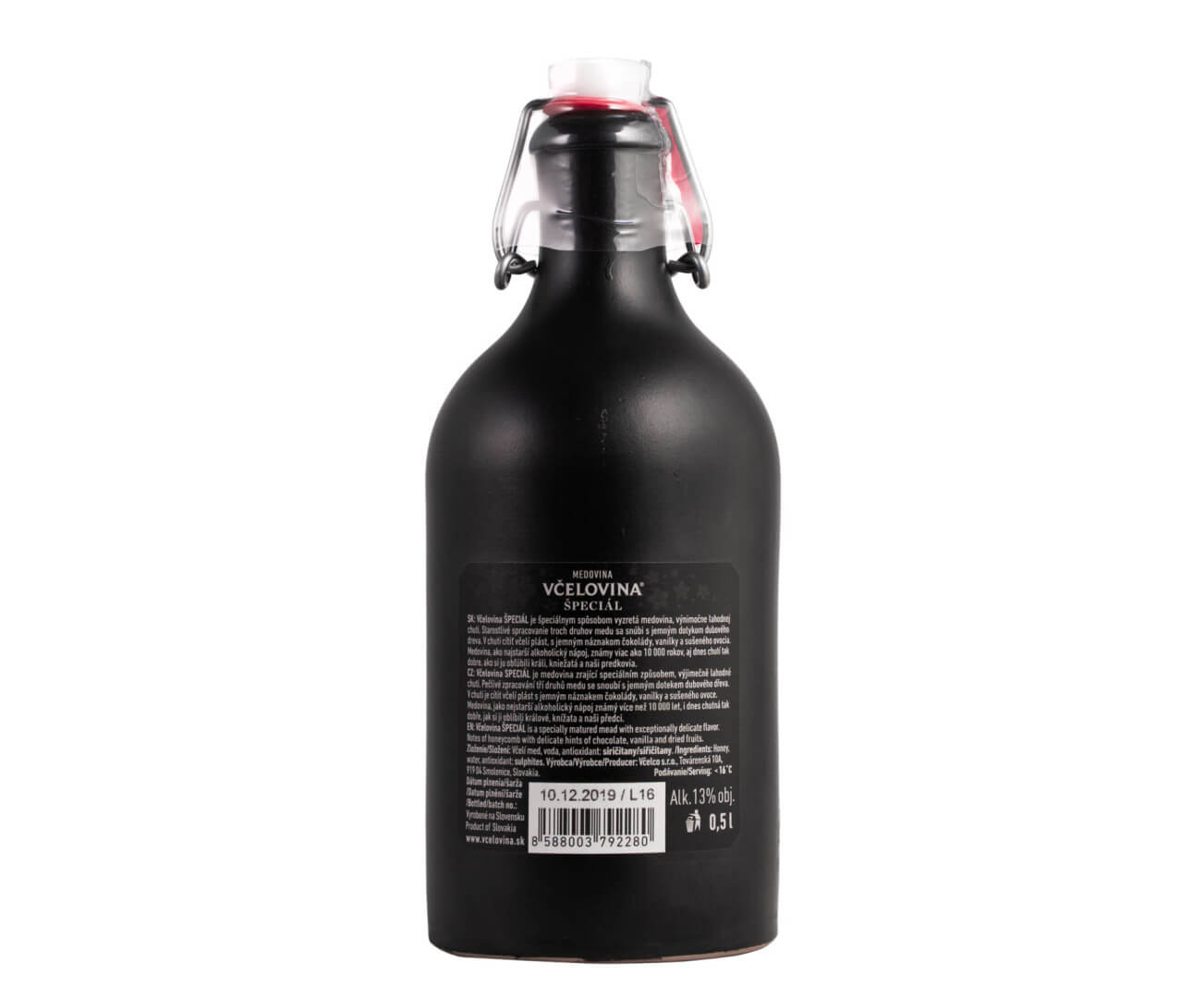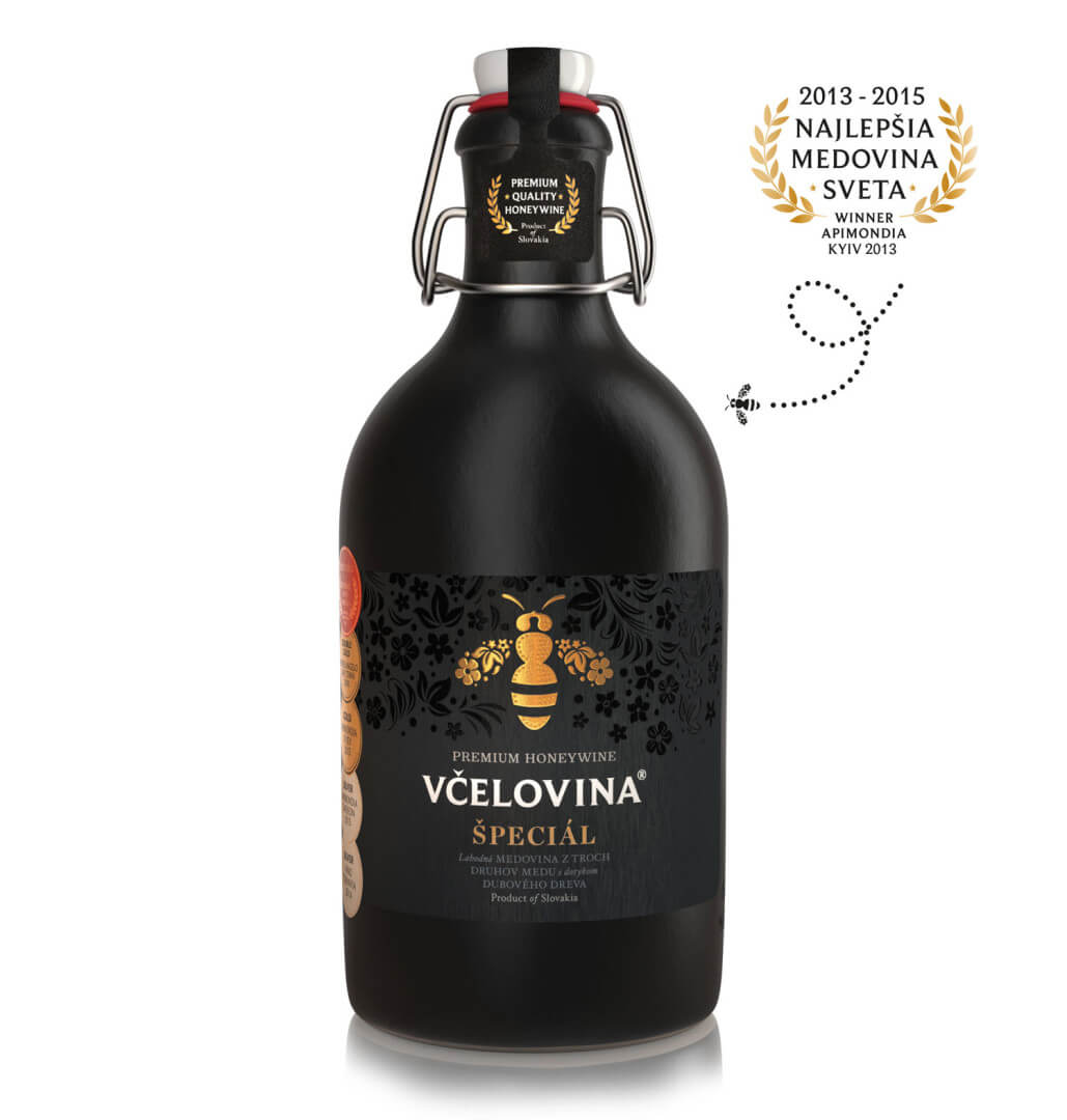Exkluzivní balení speciální medoviny Včelovina Speciál v elegantní černé keramické láhvi s prémiovou krabičkou. Tato medovina je zrána speciální metodou a nabízí výjimečně lahodnou chuť. Spojení tří druhů medu dozrává s jemným dotekem dubového dřeva. V chuti se objevuje včelí plástev spolu s jemnými tóny čokolády, vanilky a sušeného ovoce. Medovina, jako nejstarší známý alkoholický nápoj s více než 10 000letou tradicí, si stále zachovává oblibu králů, knížat i našich předků. Alk. 13 % obj. Objem: 500 ml. Váha: 1300 g