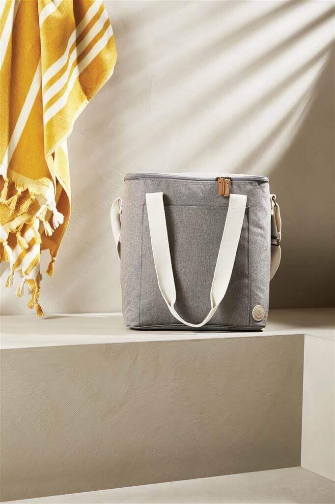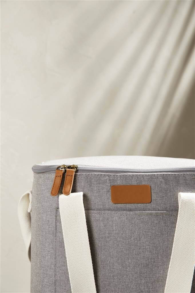 S touto módní chladicí taškou bude víkendový výlet rozhodně snadnější. Navíc je praktická a snadno se čistí. Chladicí taška je vyrobena z melanžové tkaniny doplněné o PU detaily, díky nimž je stejně módní jako běžná taška. Vyrobena z 50 % z polyesteru z recyklovaných PET lahví. Na přední straně tašky je kapsa, kam si můžete uložit nezbytnosti. Můžete ji nosit v ruce nebo přes rameno.
