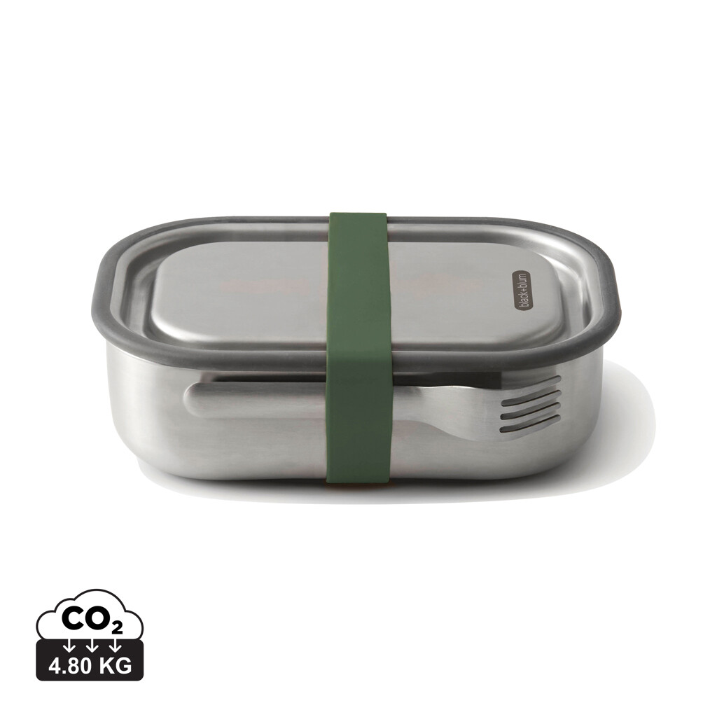 Plně nepropustná dóza na potraviny z nerezové oceli. Multifunkční design 3 v 1, který umožňuje přepravu oběda, přípravu pokrmů v troubě a dokonce i skladování uvařených jídel v mrazáku. Je vyrobena z odolné nerezové oceli a je ideální pro stylové přenášení vašich kulinářských výtvorů. Silikonový ventil vytváří bezpečný vakuově uzavřený uzávěr, posuvná přepážka umožňuje snadné oddělení obsahu a pro větší pohodlí je přidána vidlička a držák. Dóza i vidlička jsou vhodné pro mytí v myčce nádobí. Víko a poutko jsou určeny pouze pro ruční mytí.